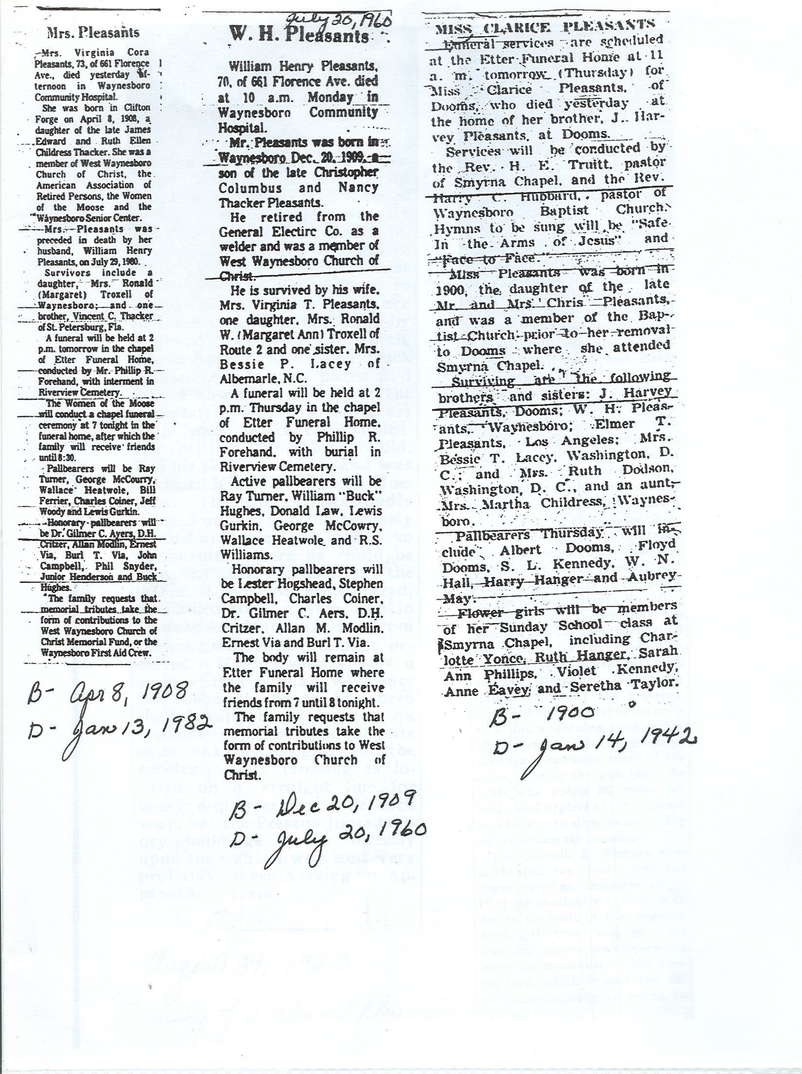 477. Obituary from Waynesboro, VA Newspaper, Dorothy Virginia Monroe Childress.