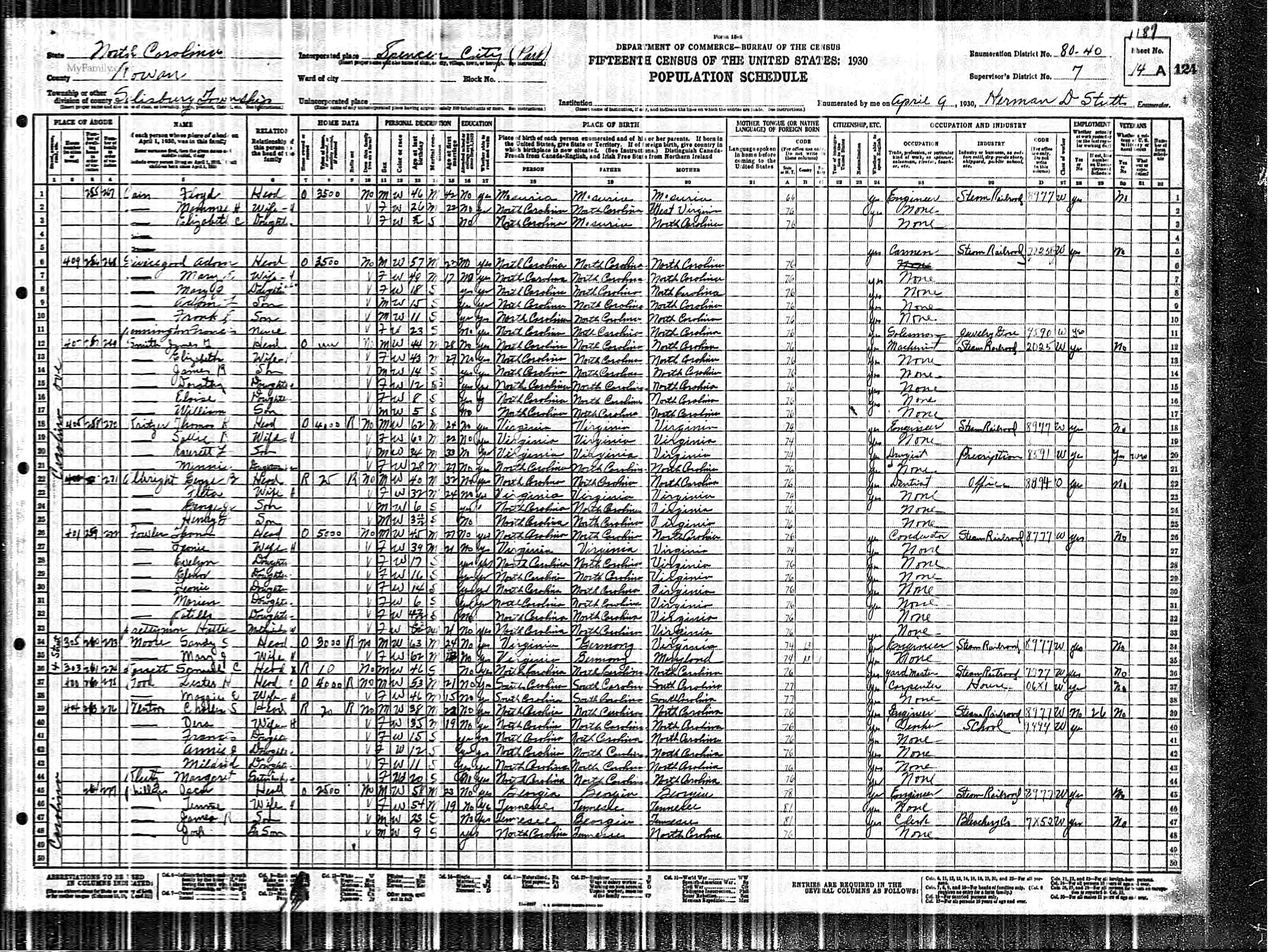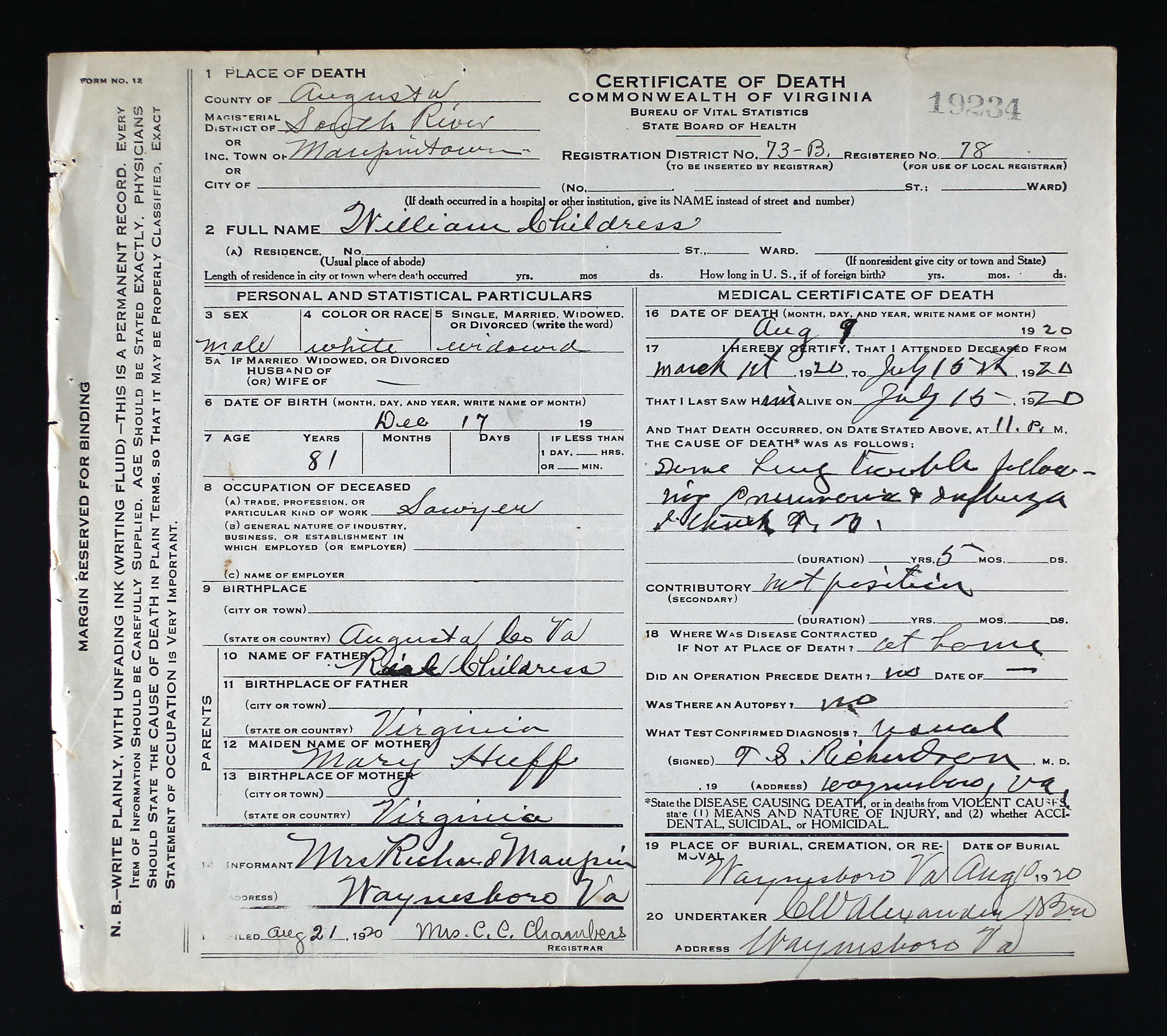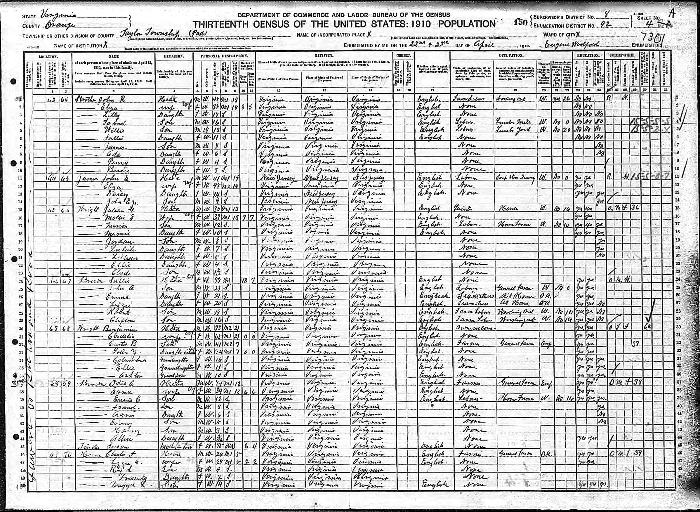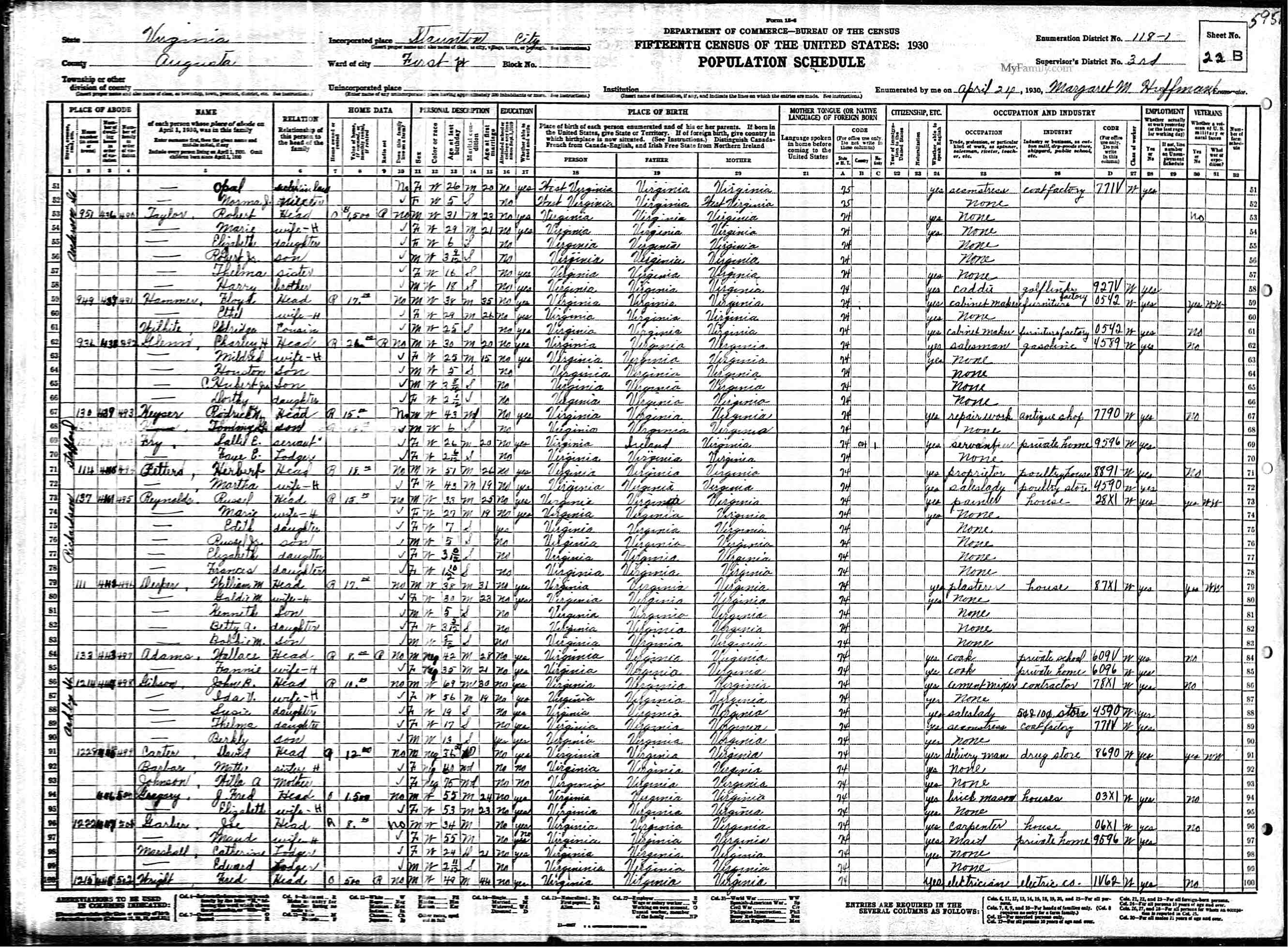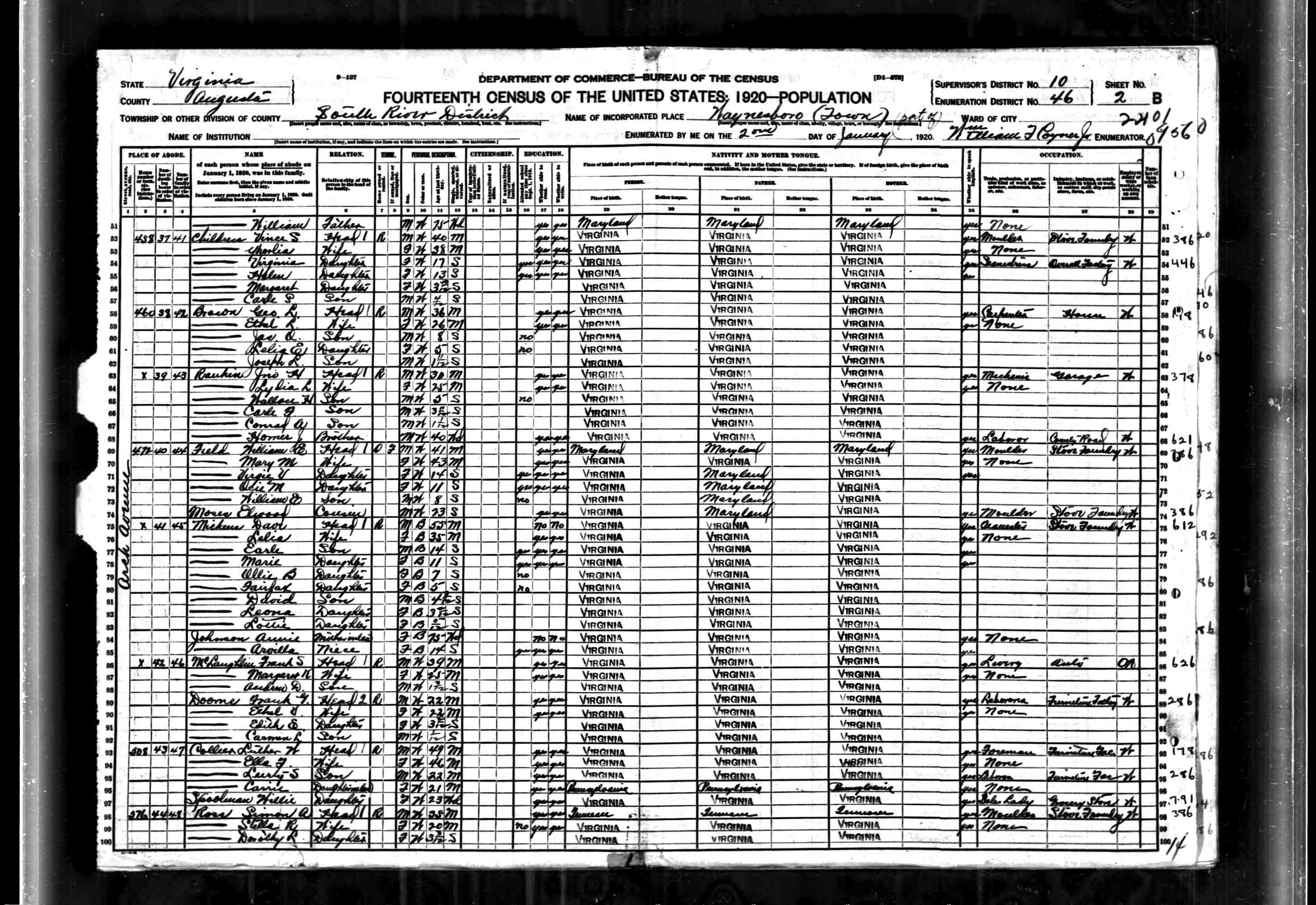 433. 1920 Virginia Census, Augusta, South River, ED 46, Sht 18A.