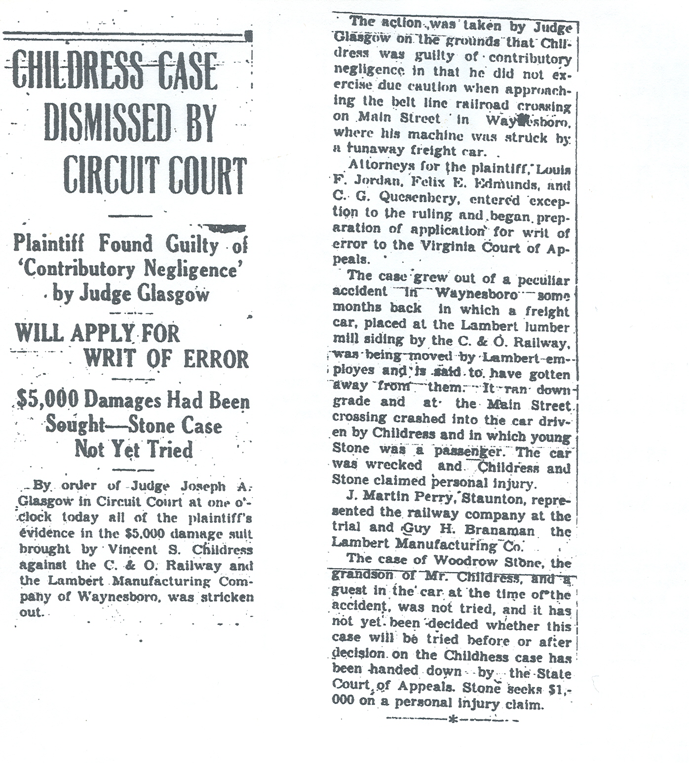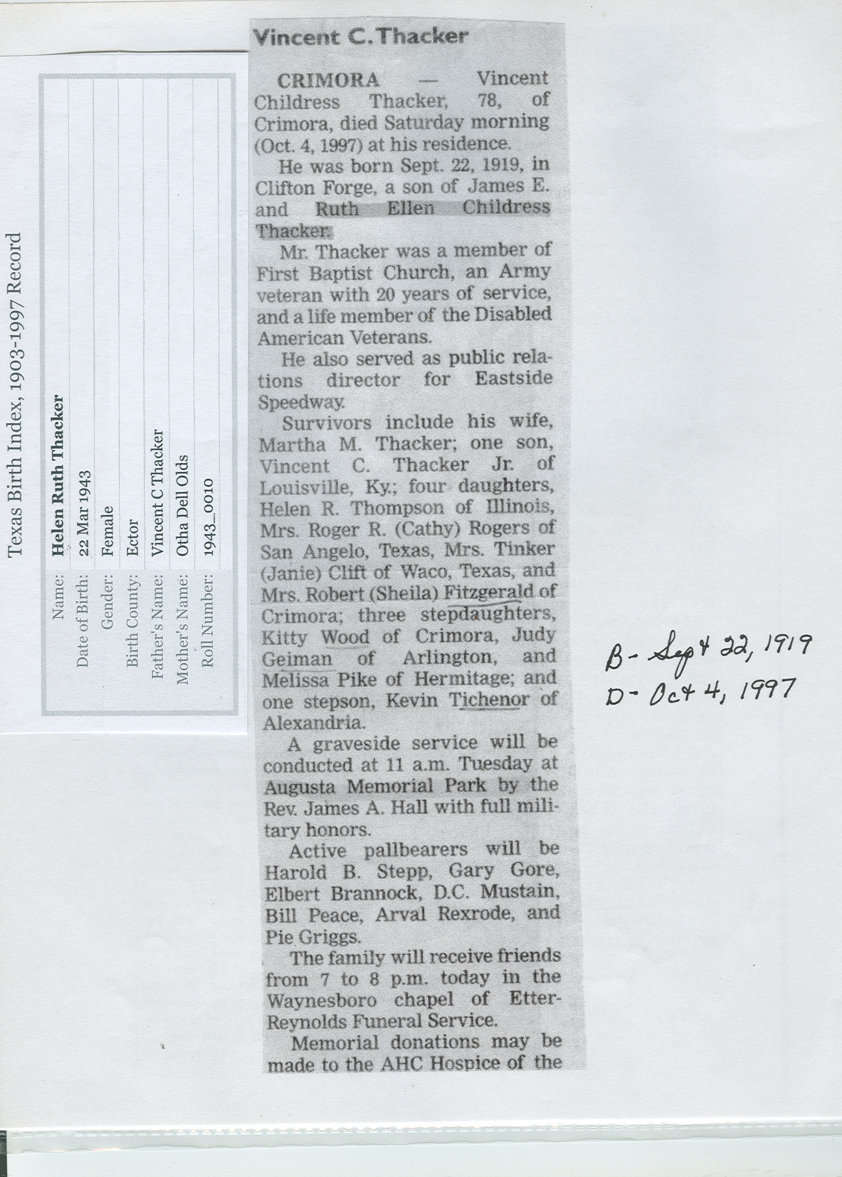 443. Obituary from Waynesboro, VA Newspaper, Harold "Buddy" Childress.