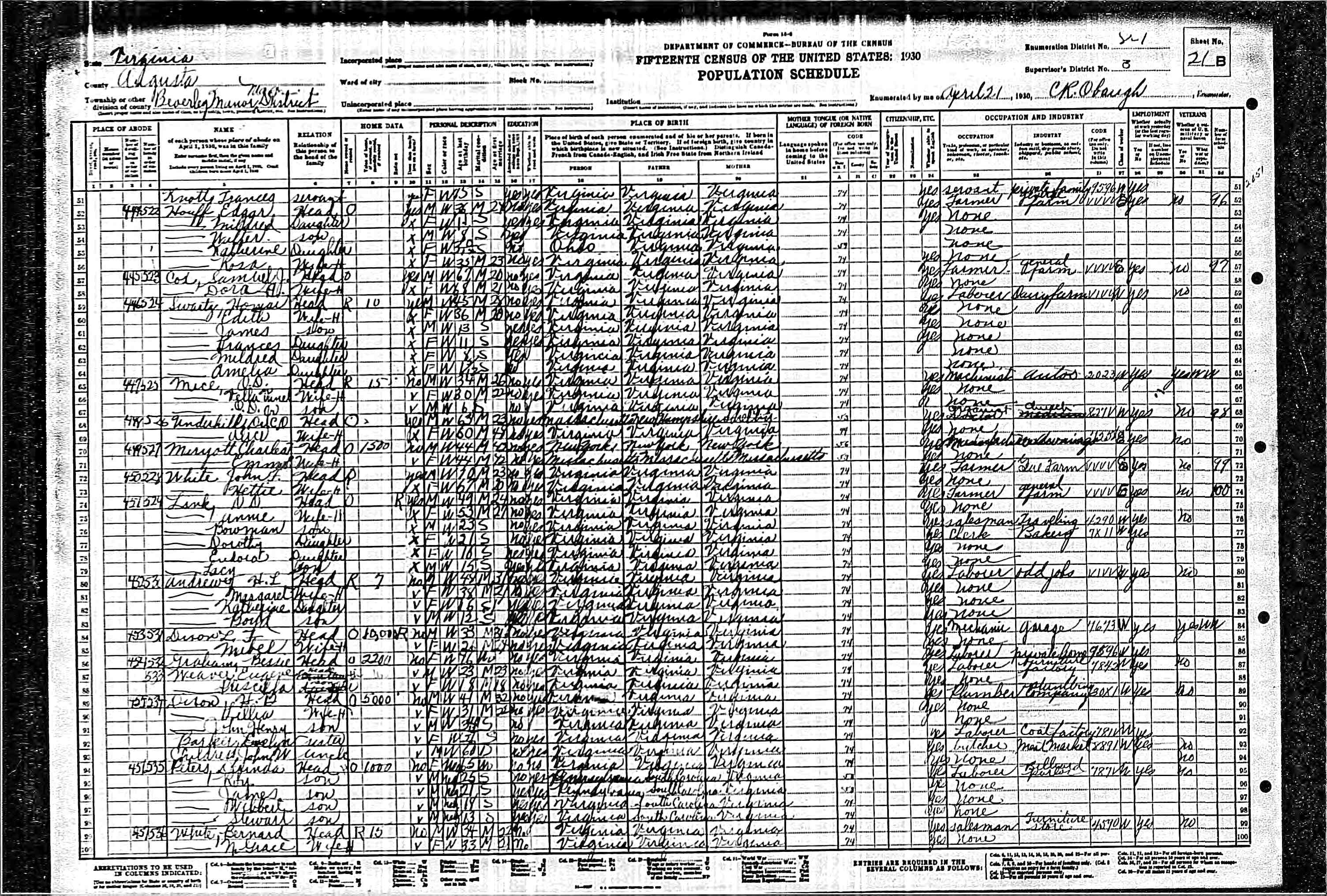 458. 1940 Virginia Census, Albemarle, Rivanna, ED 2-6, Sht 11B, Image 22 Roll T627.