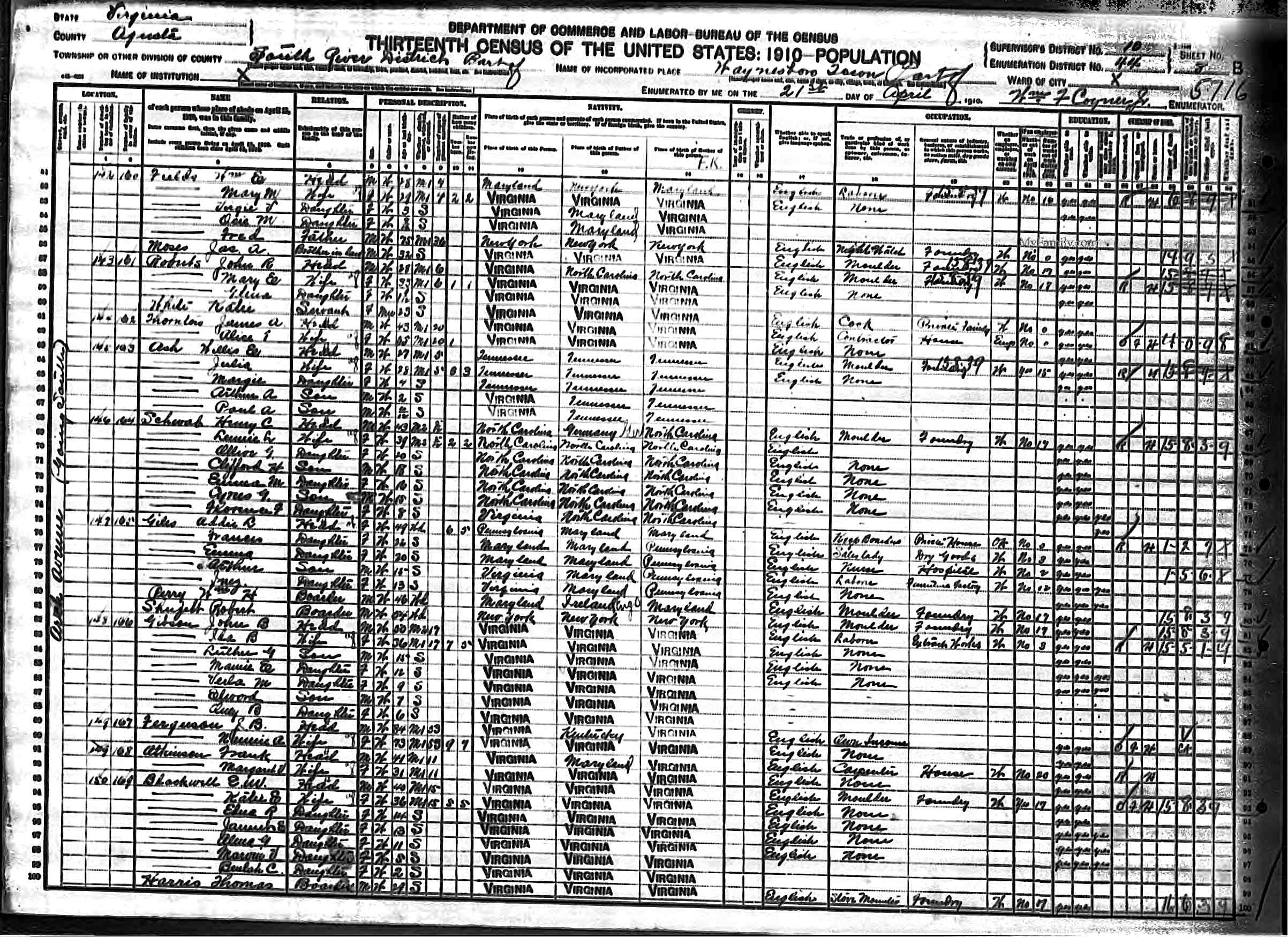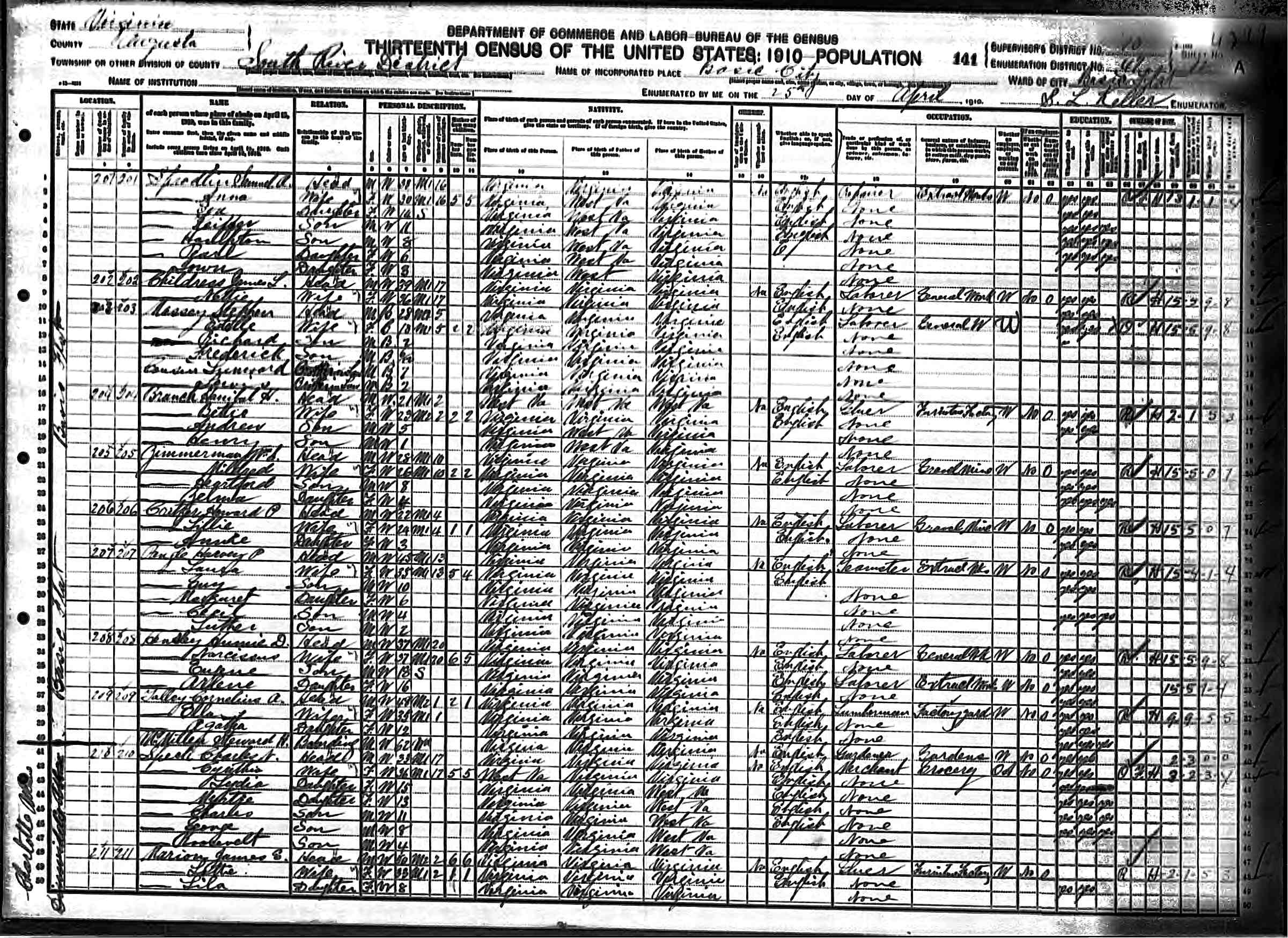 431. 1900 Virginia Census, Augusta, Crimora, ED 26, Sht 14B.