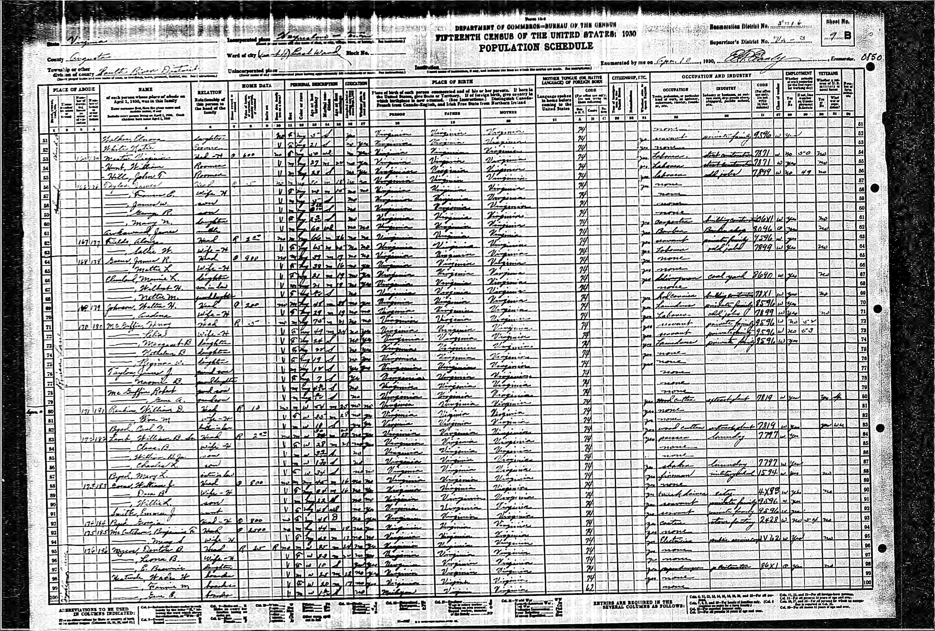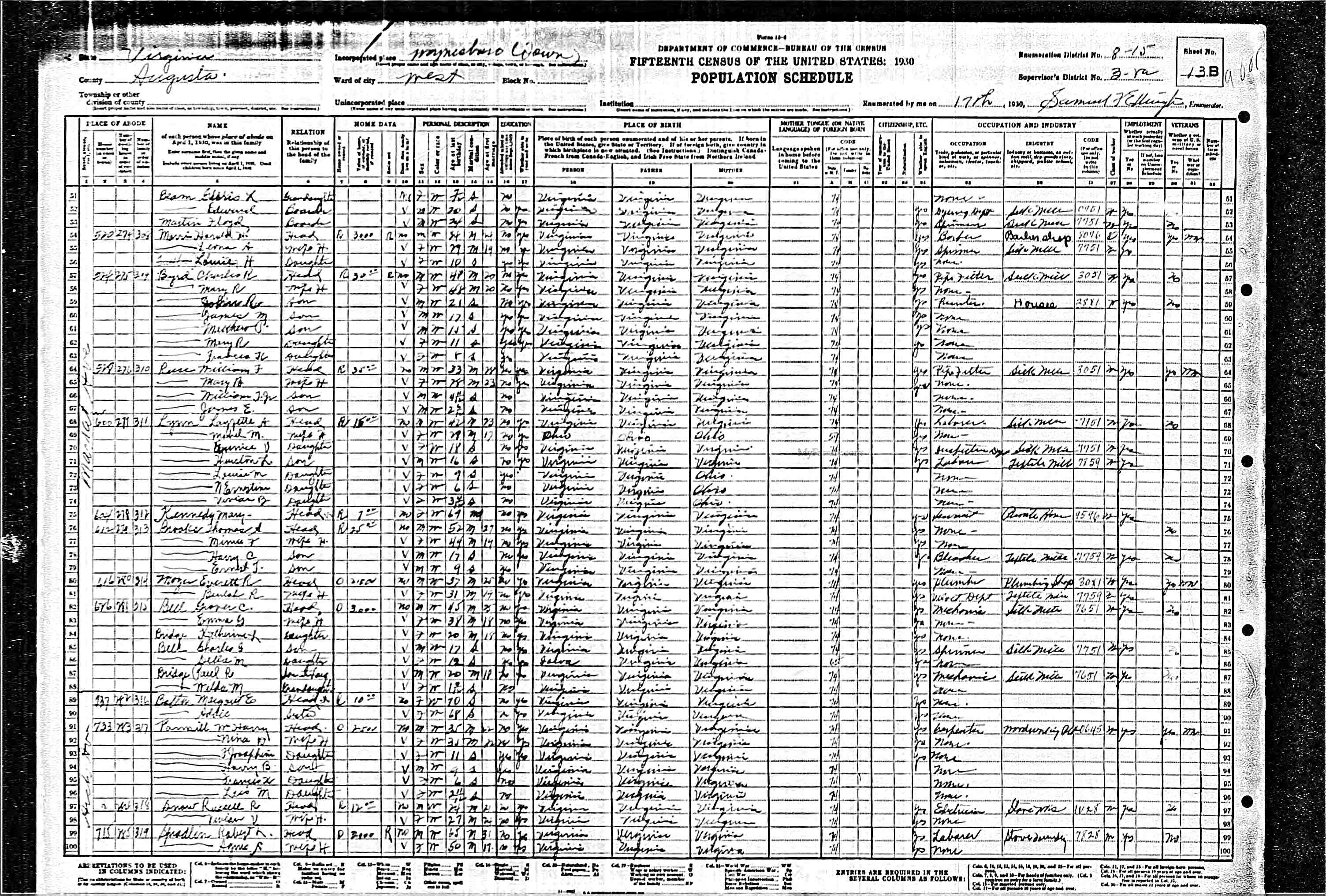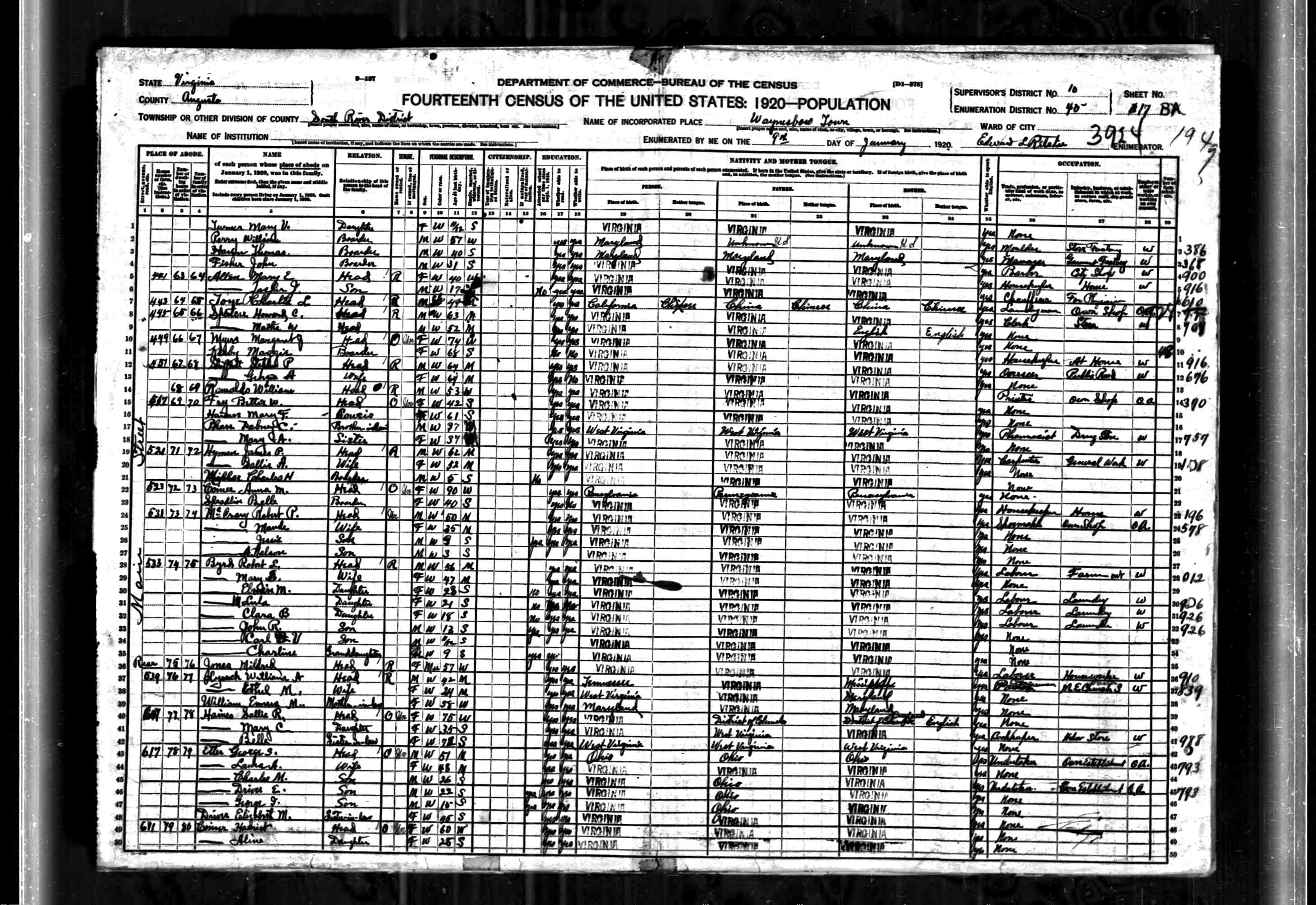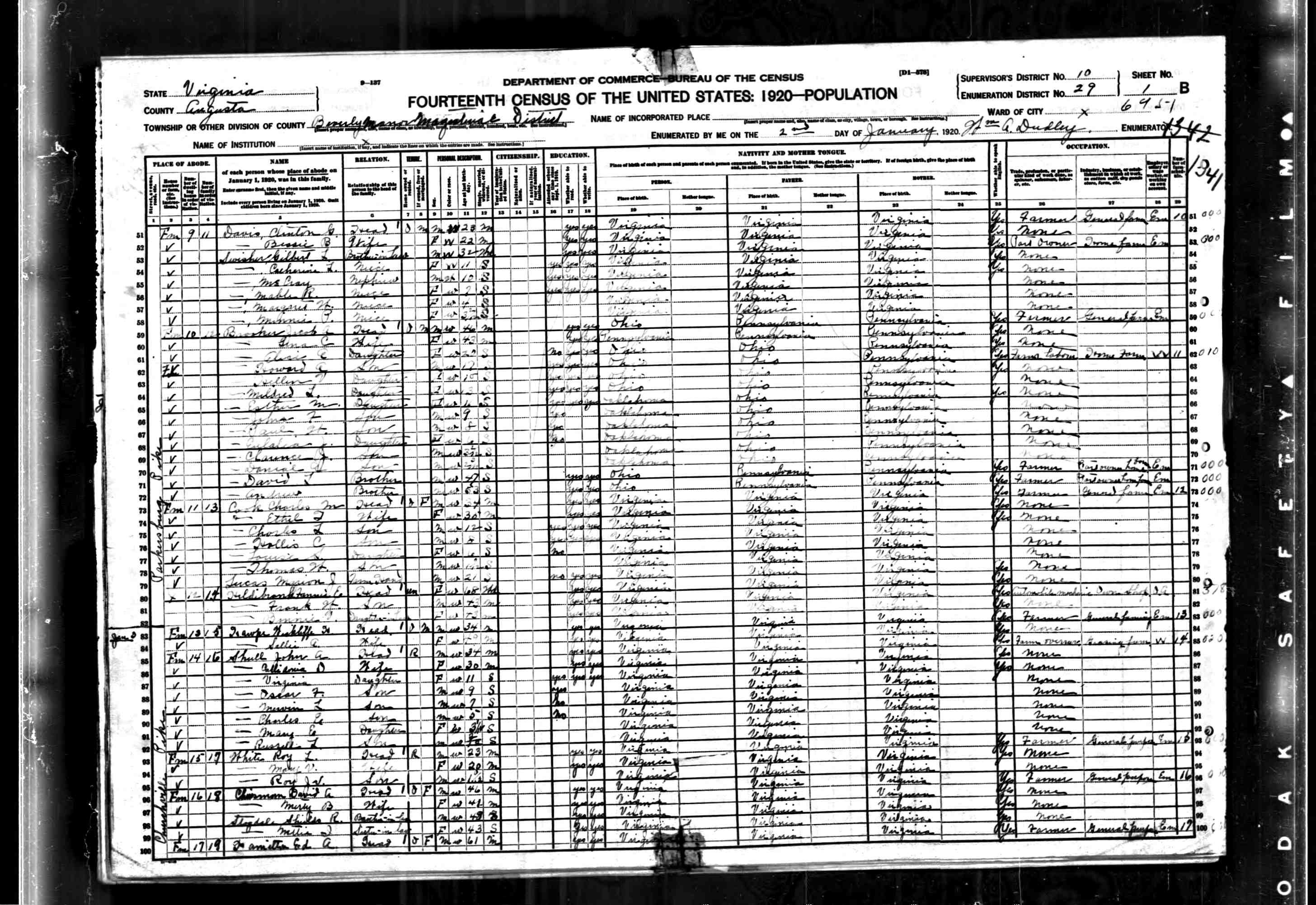 449. 1920 Virginia Census, Augusta, Beverly Manor, ED 29, Sht 1B.