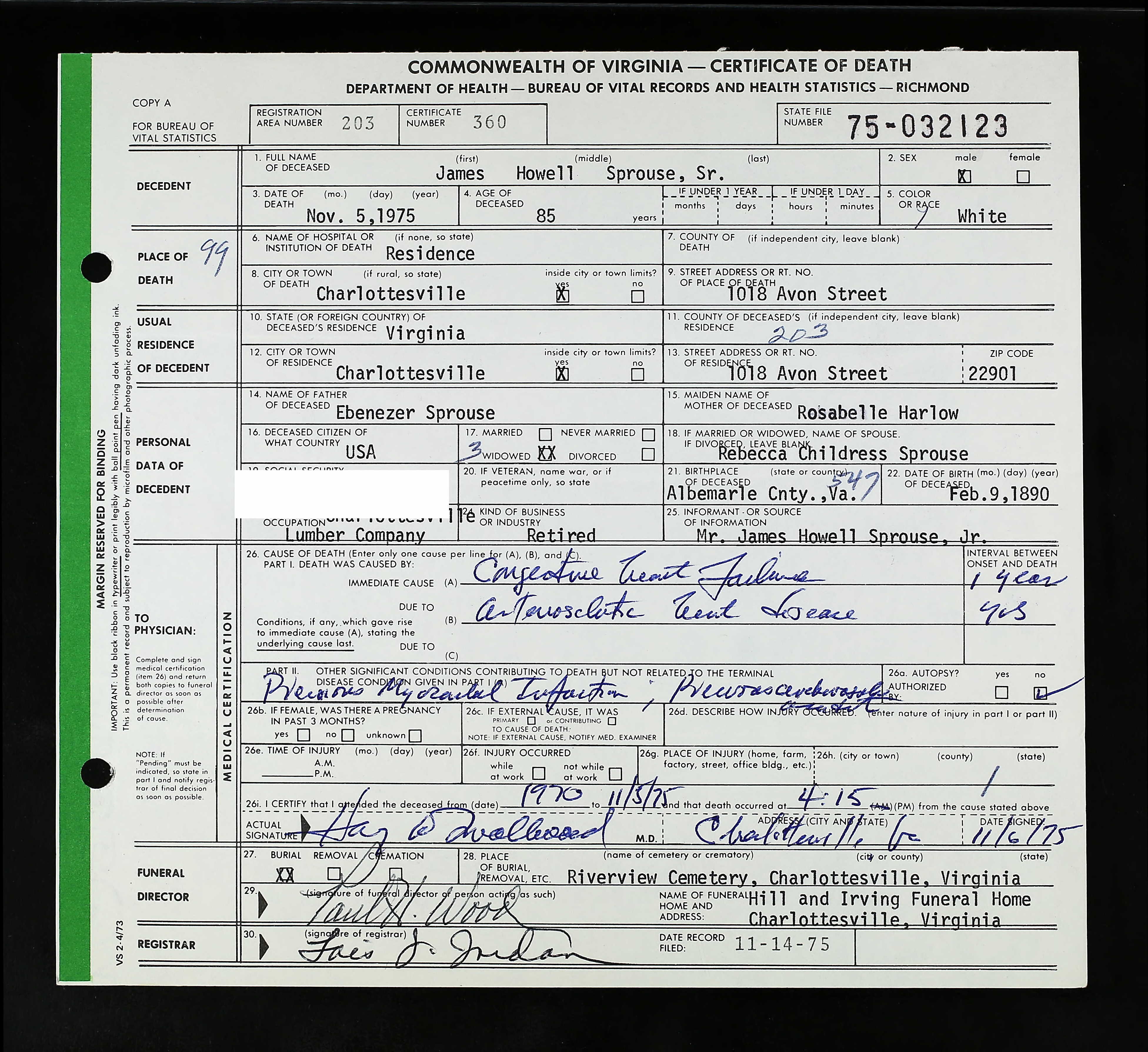 461. Social Security Death Index, D. Cary Jackson. 223-34-9509.