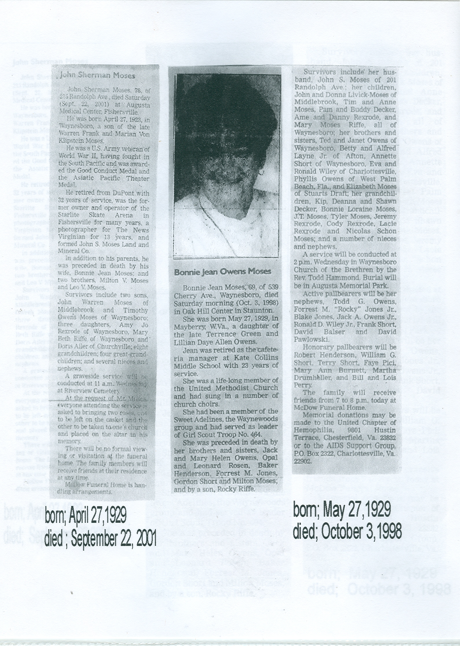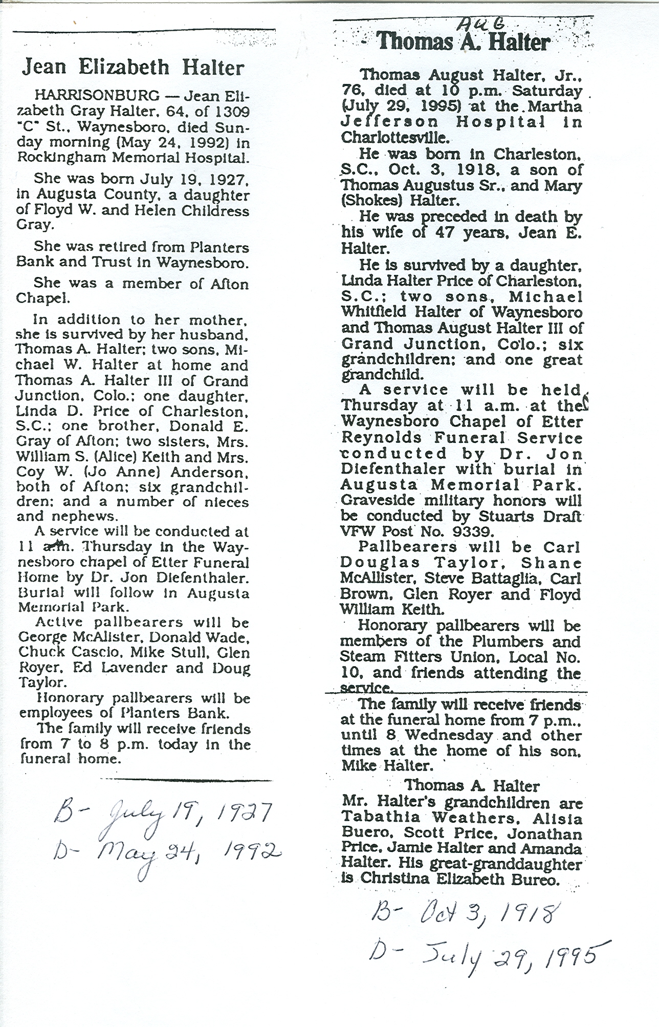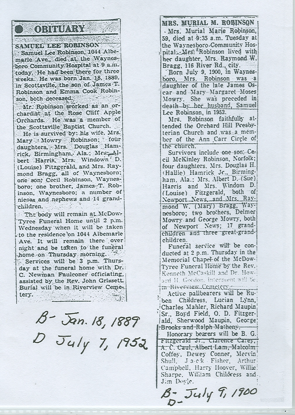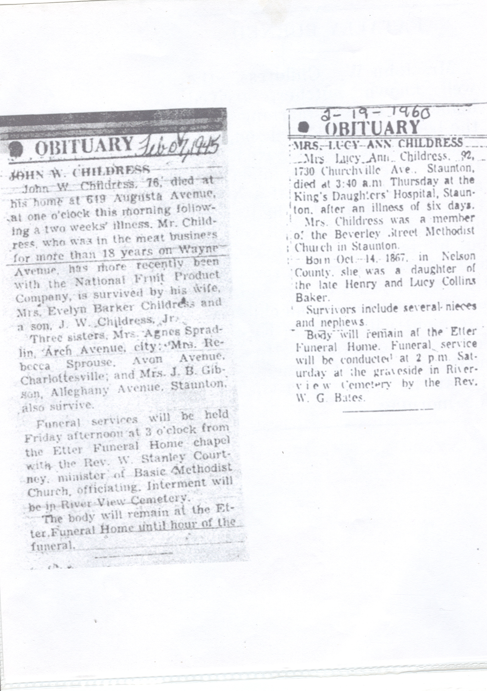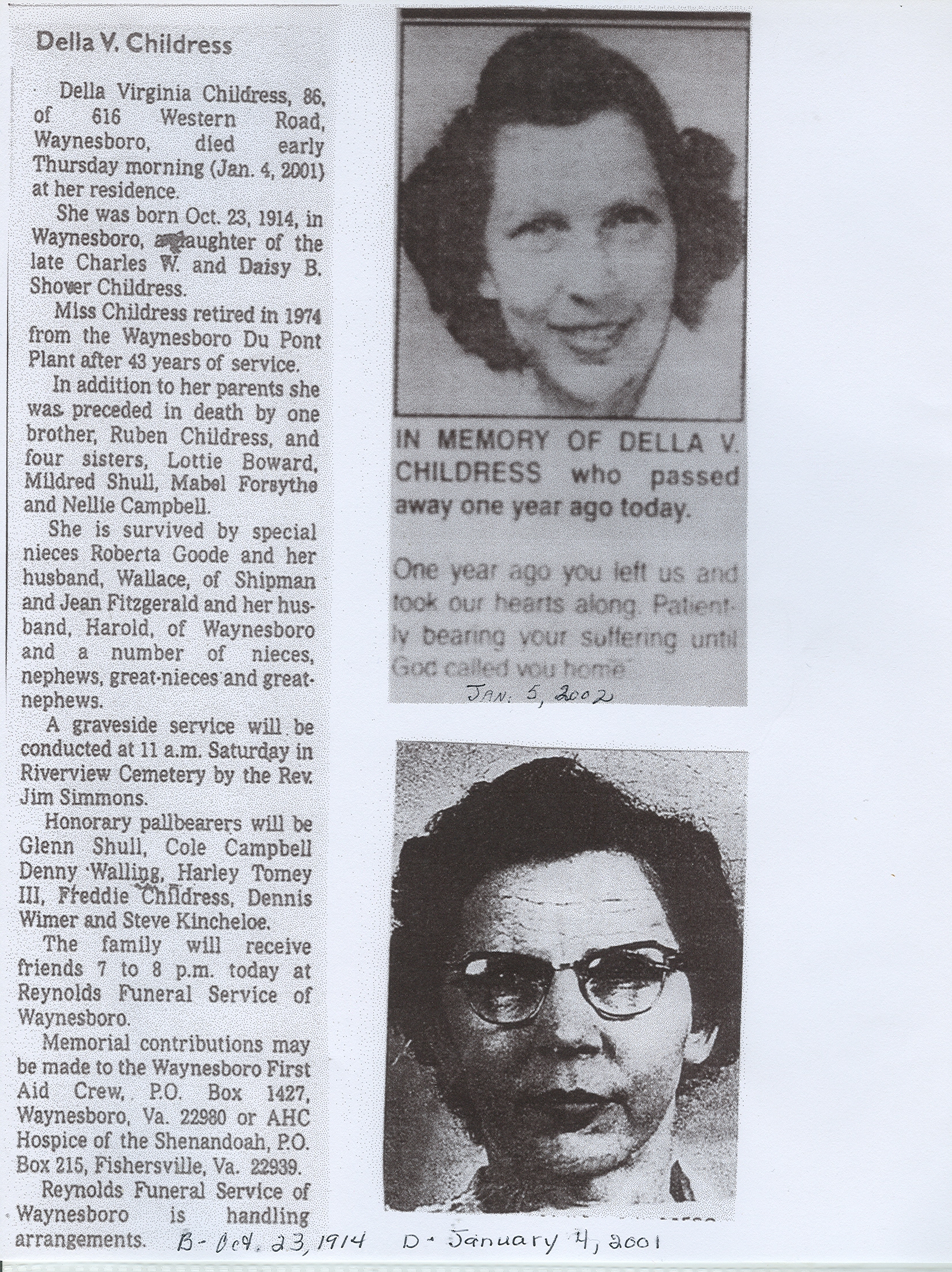 477. Obituary from Waynesboro, VA Newspaper, Dorothy Virginia Monroe Childress.