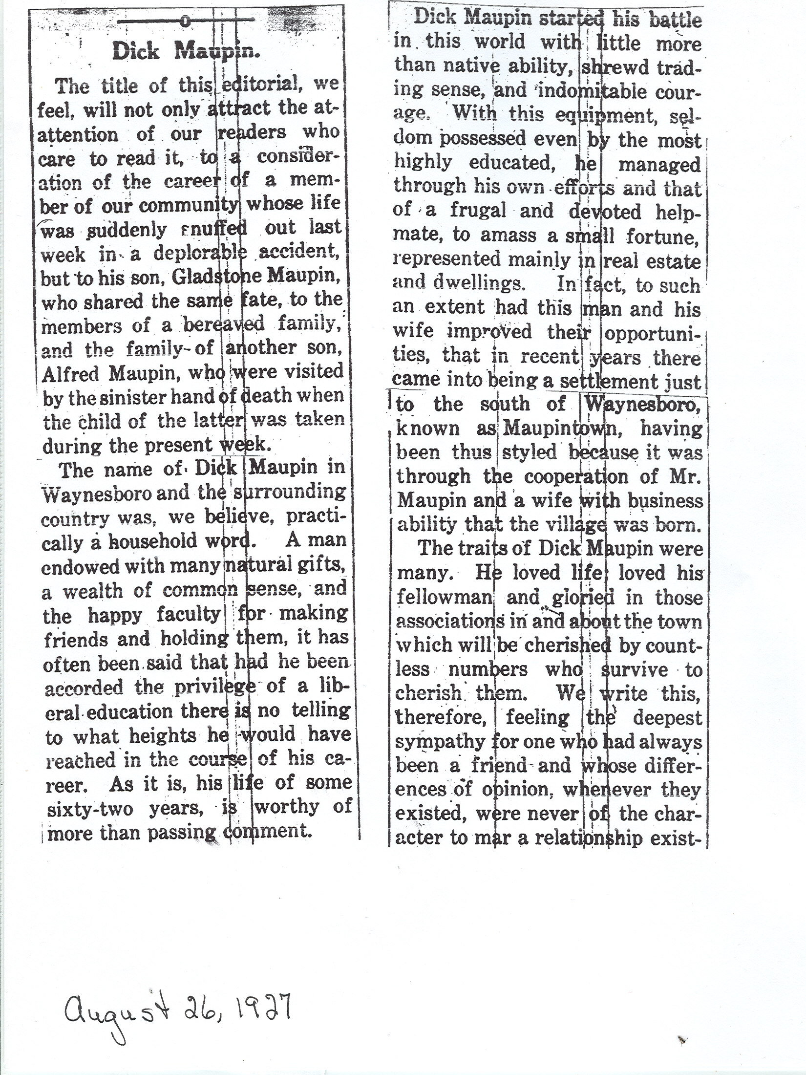 436. Obituary from Waynesboro, VA Newspaper, Lelia Thornton Maupin.
