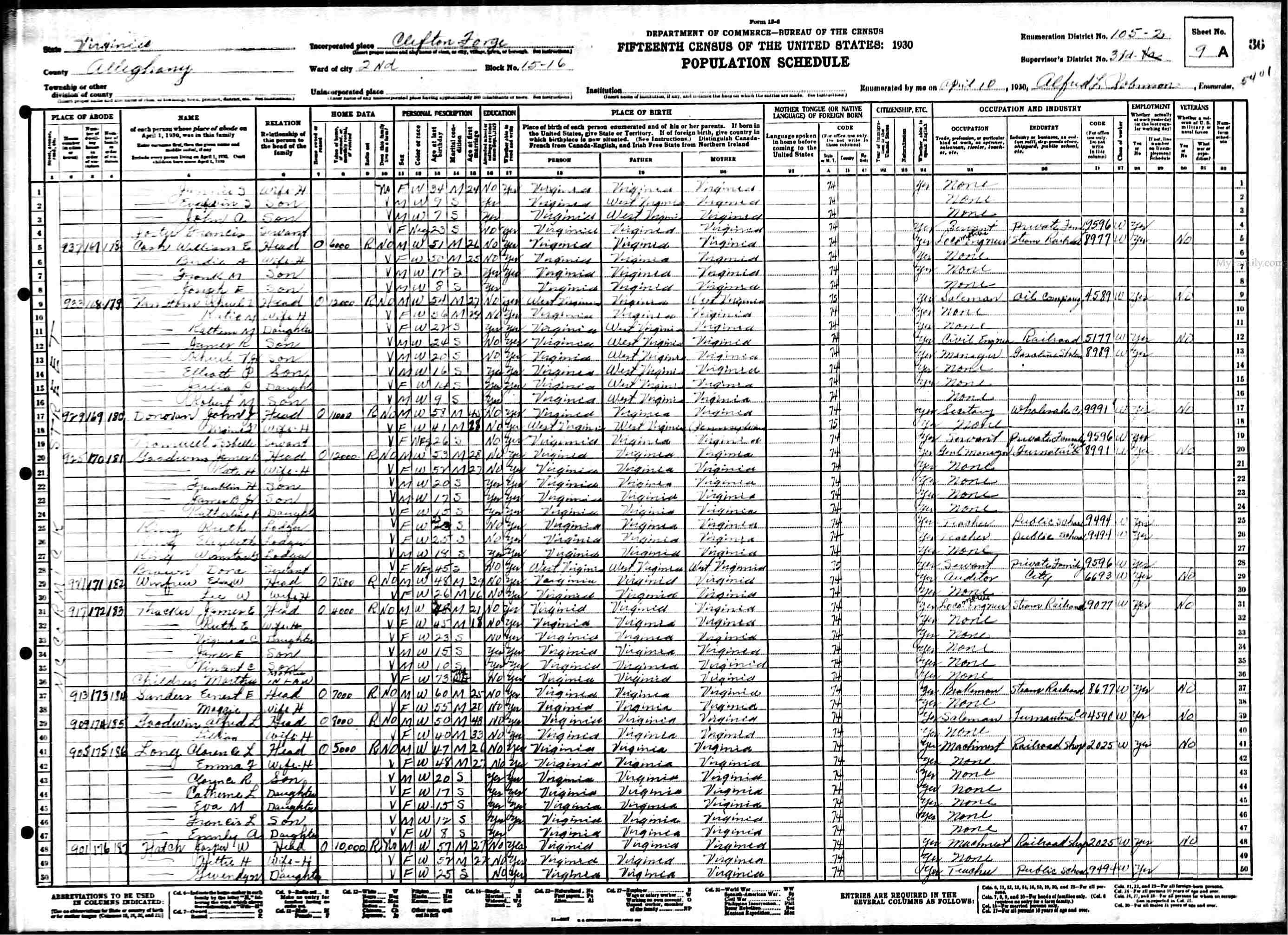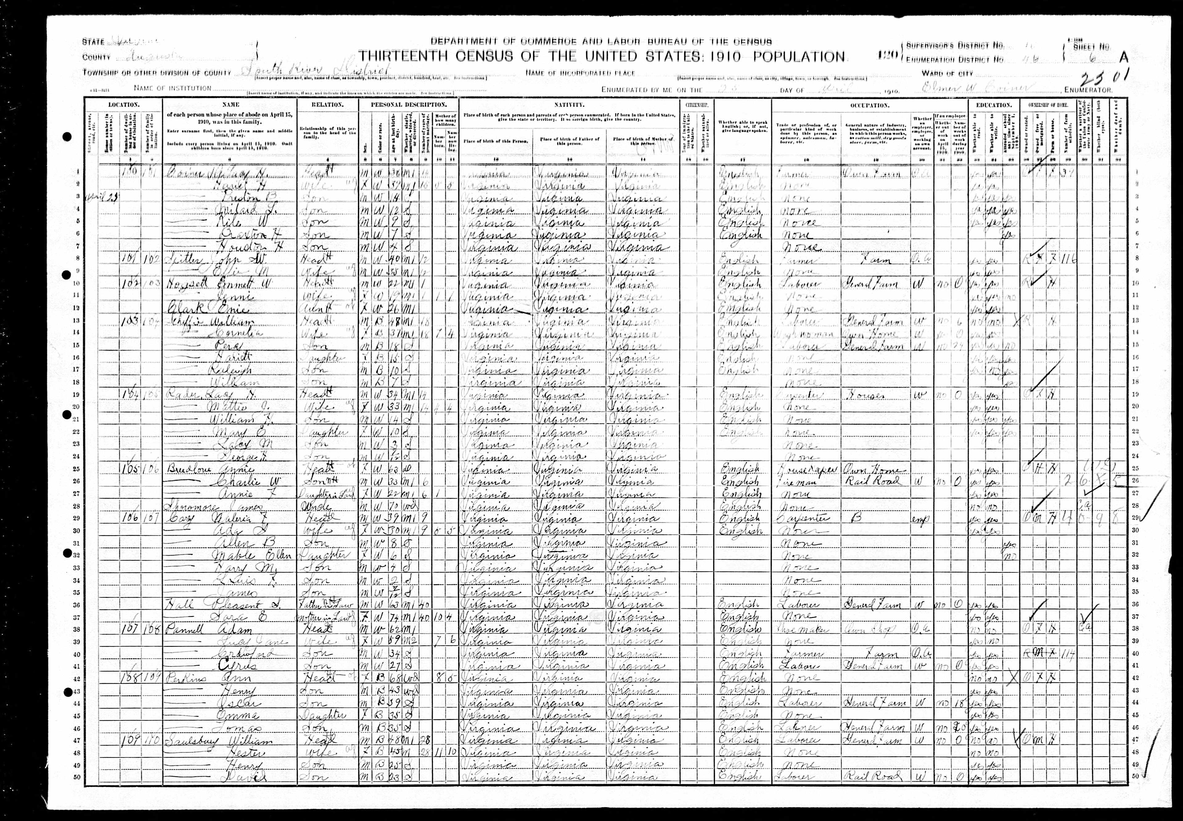 463. 1940 Virginia Census, Albemarle, Rivanna, ED 2-8, Sht 5B, Image 10 Roll T627.