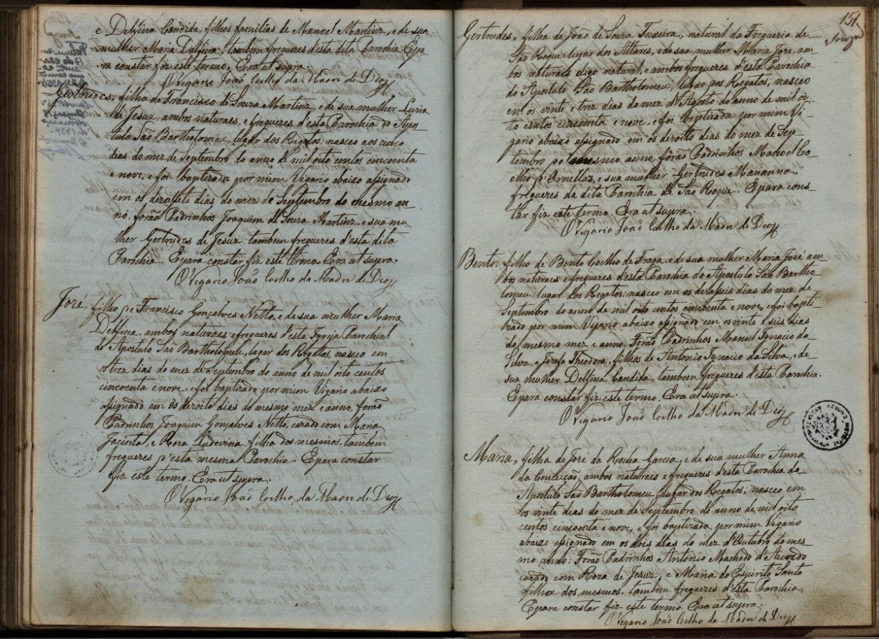 9. Sao Bartolomeu Parish Register, 1841-1860.