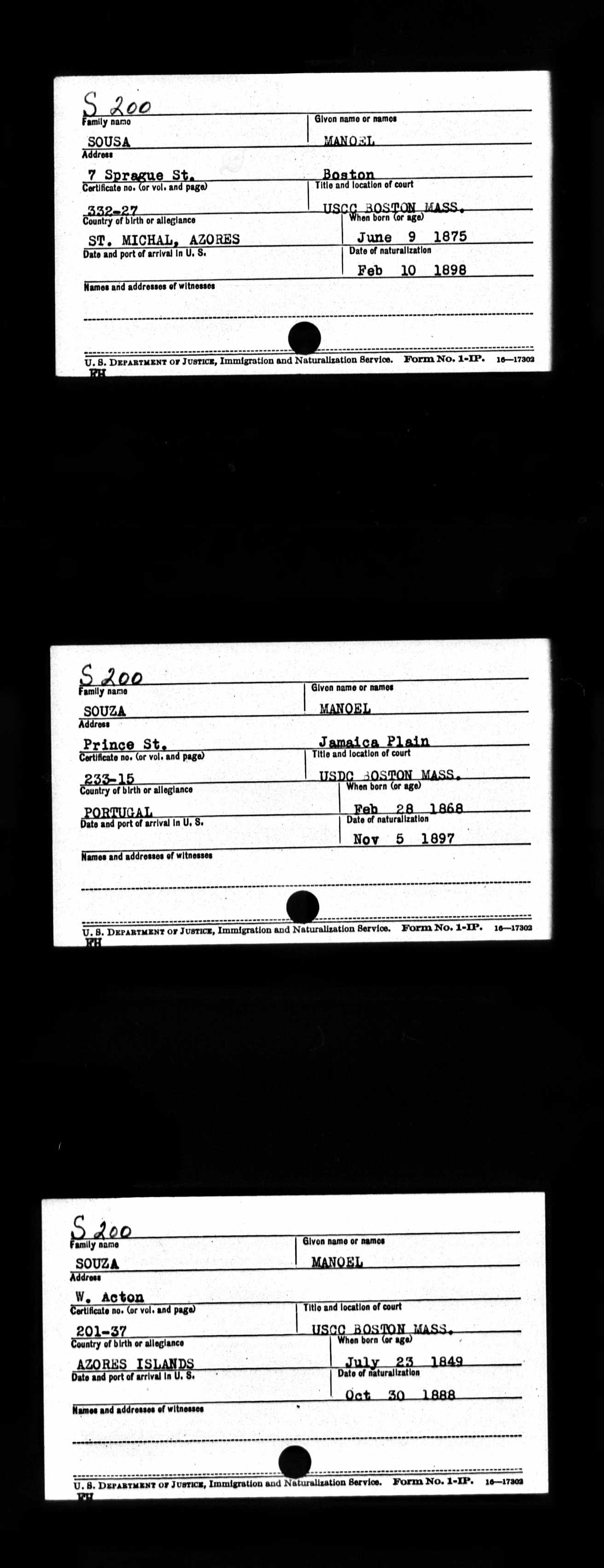 Groom's Father's Name:John Soza