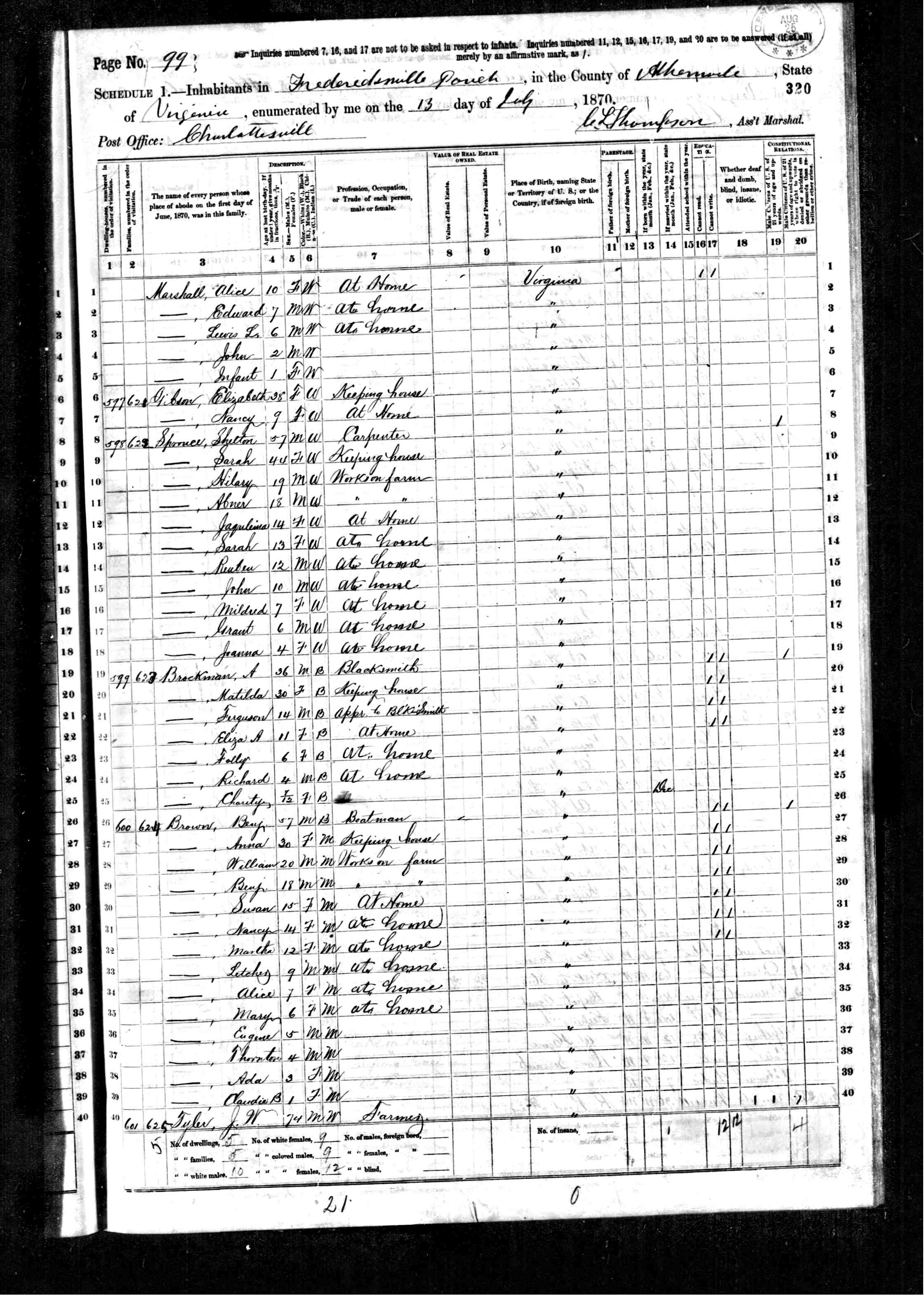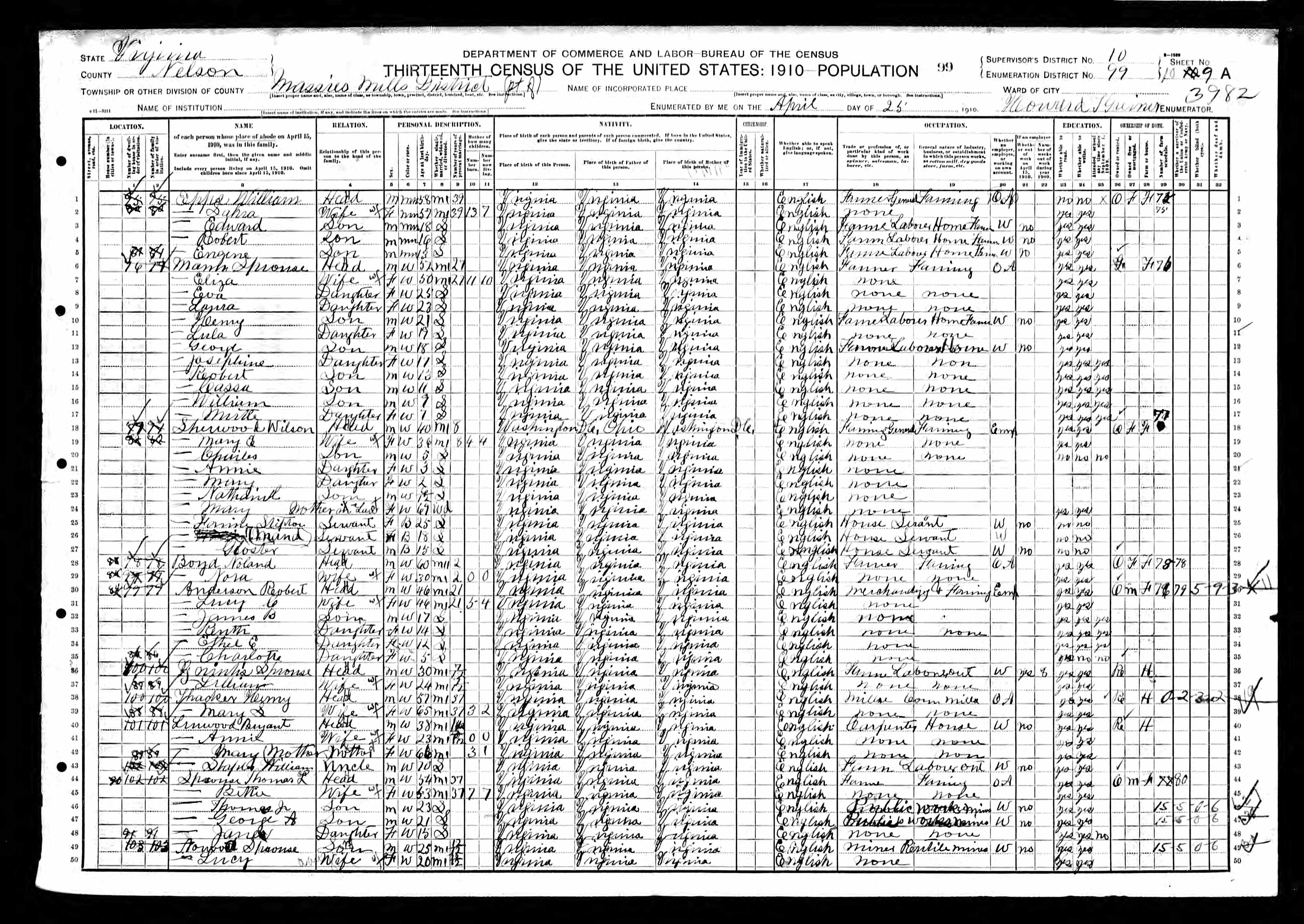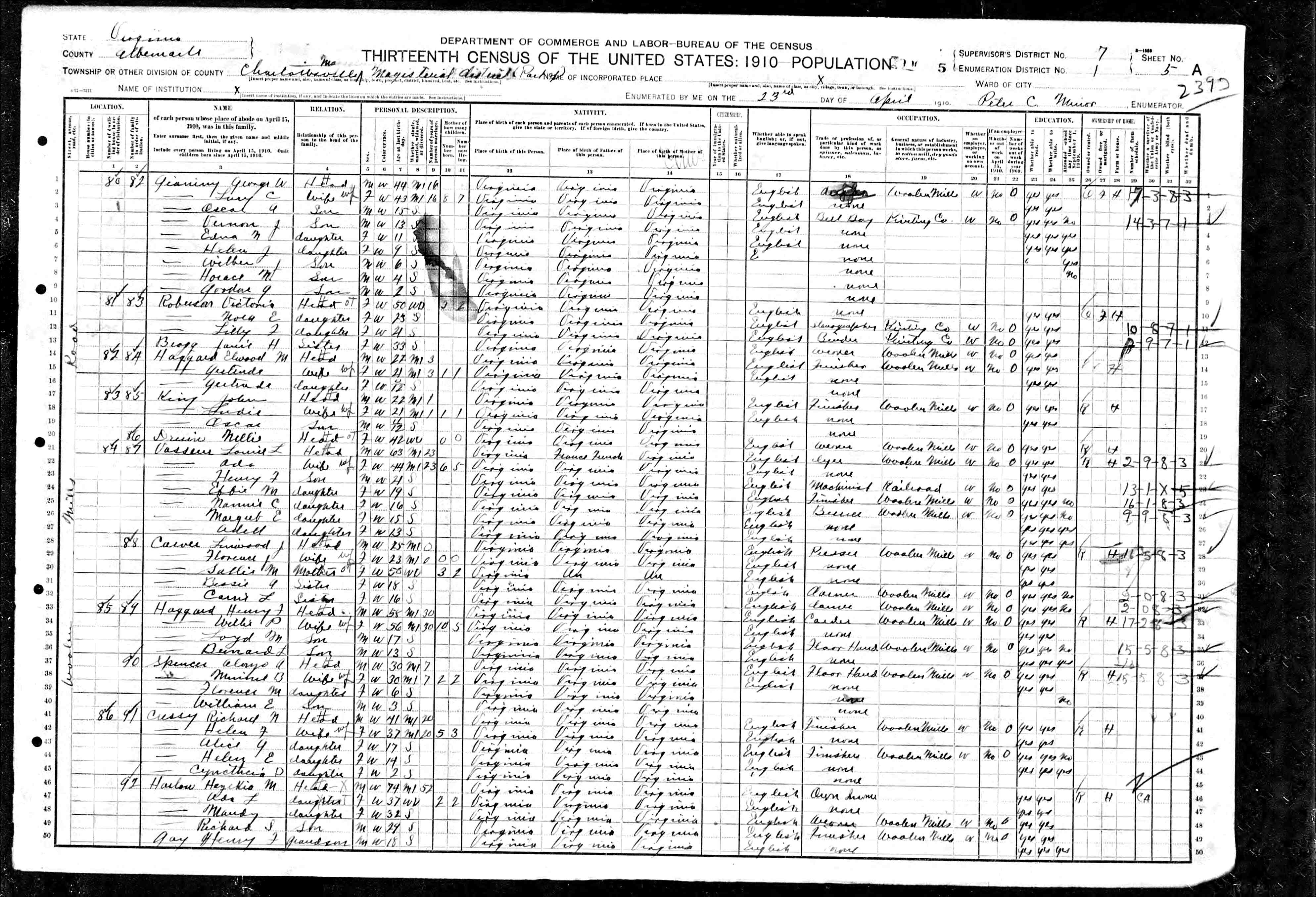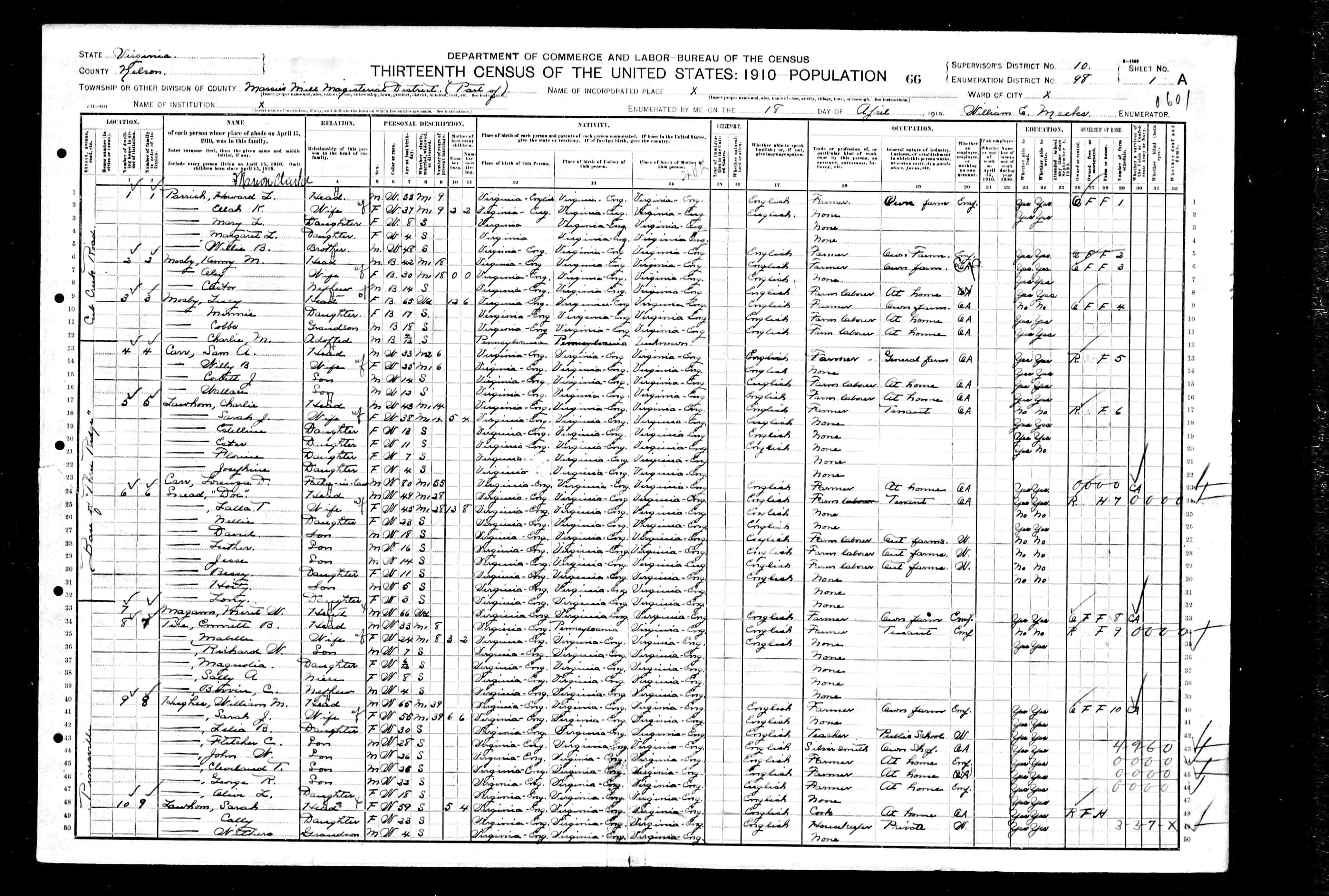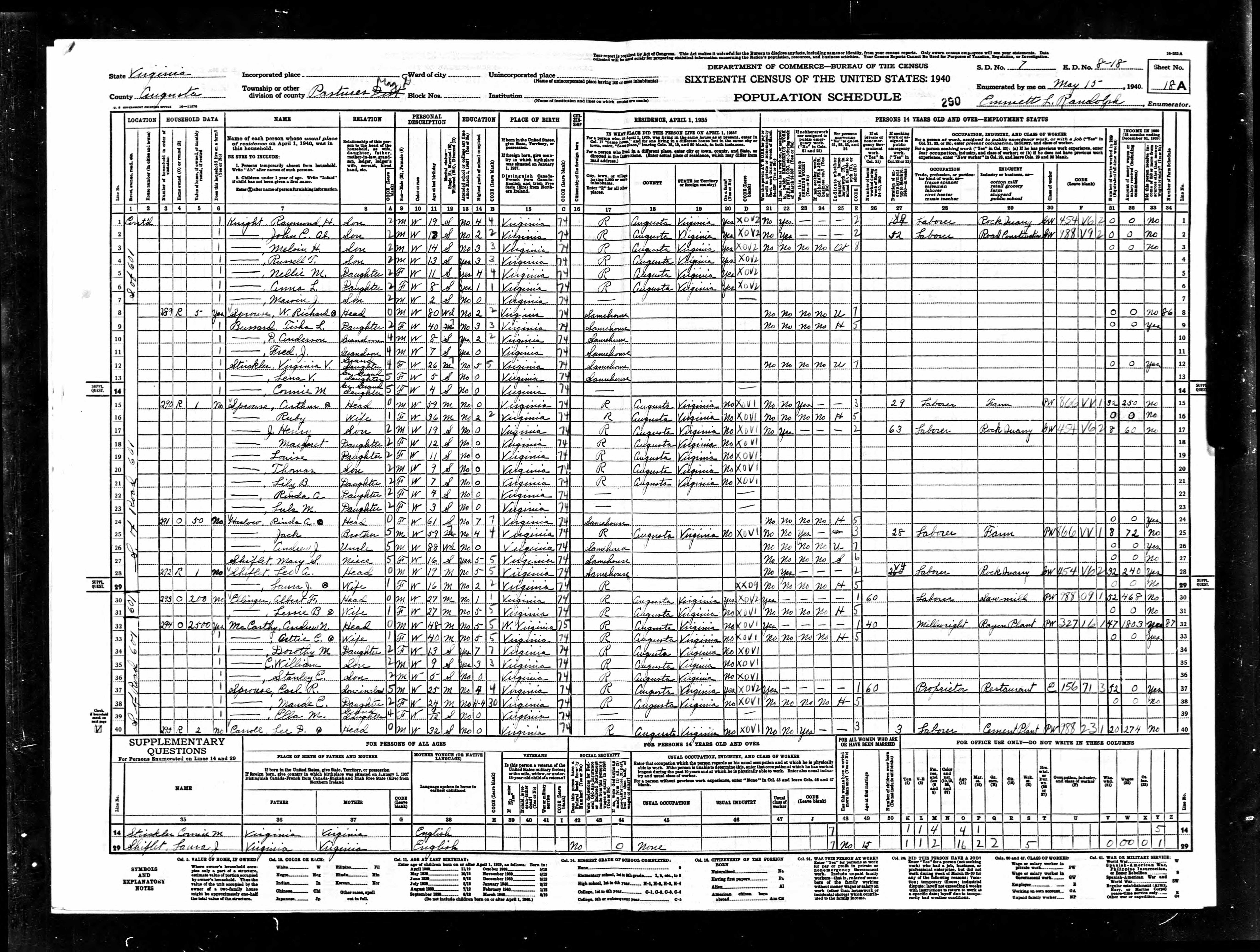 1079. 1940 Virginia Census, Albemarle, Rivanna, ED 2-8, Sht 5B, Image 10 Roll T627.