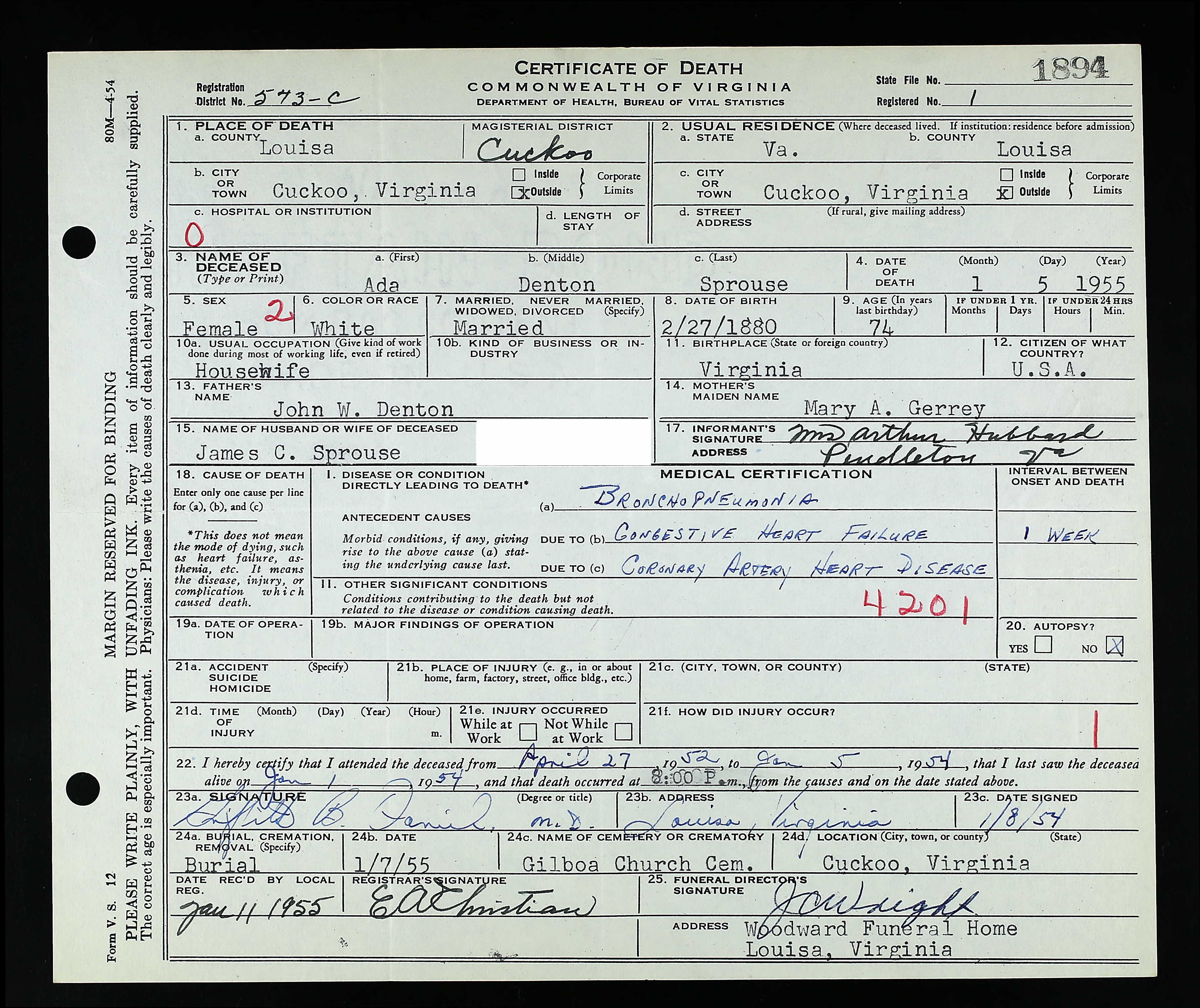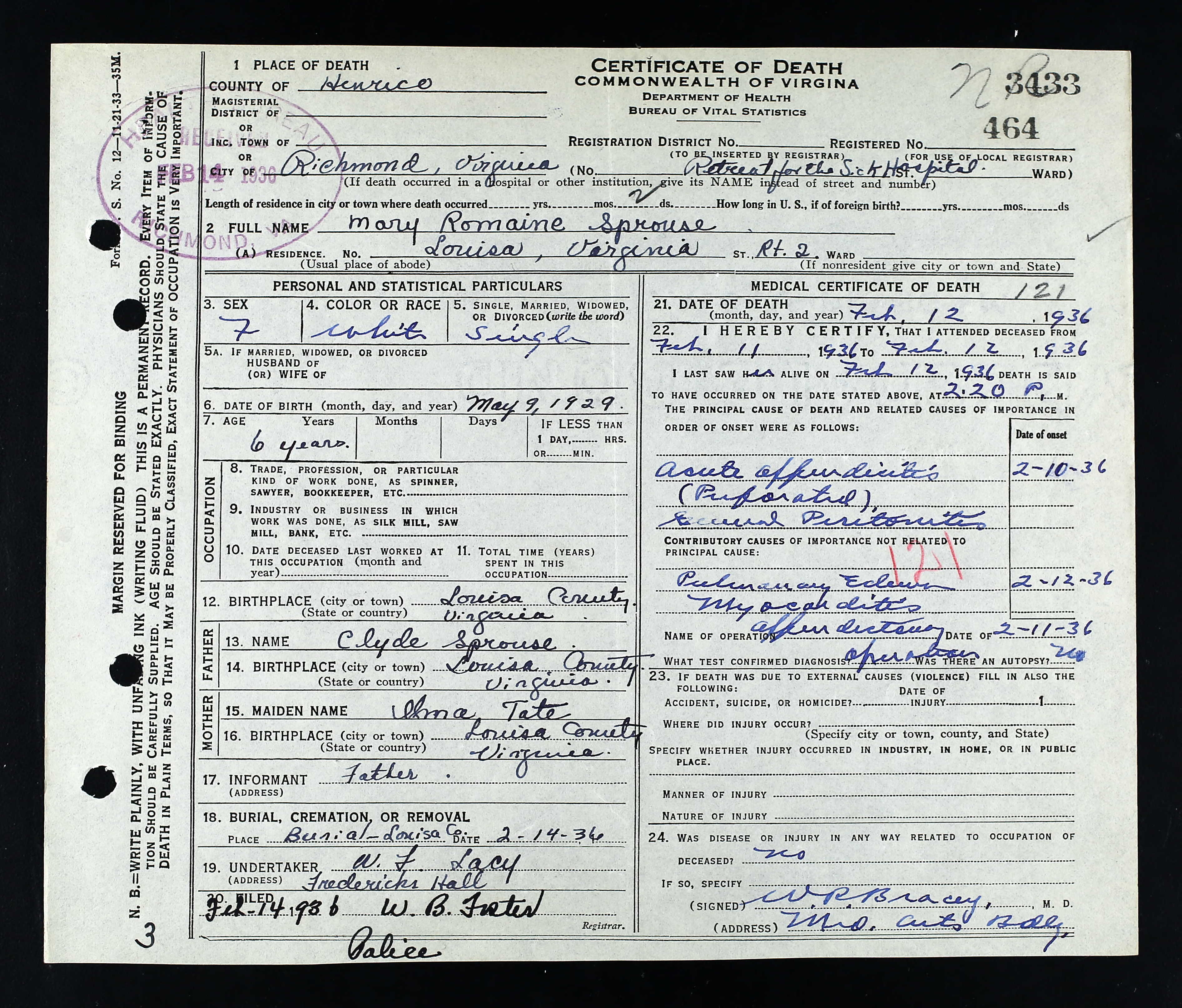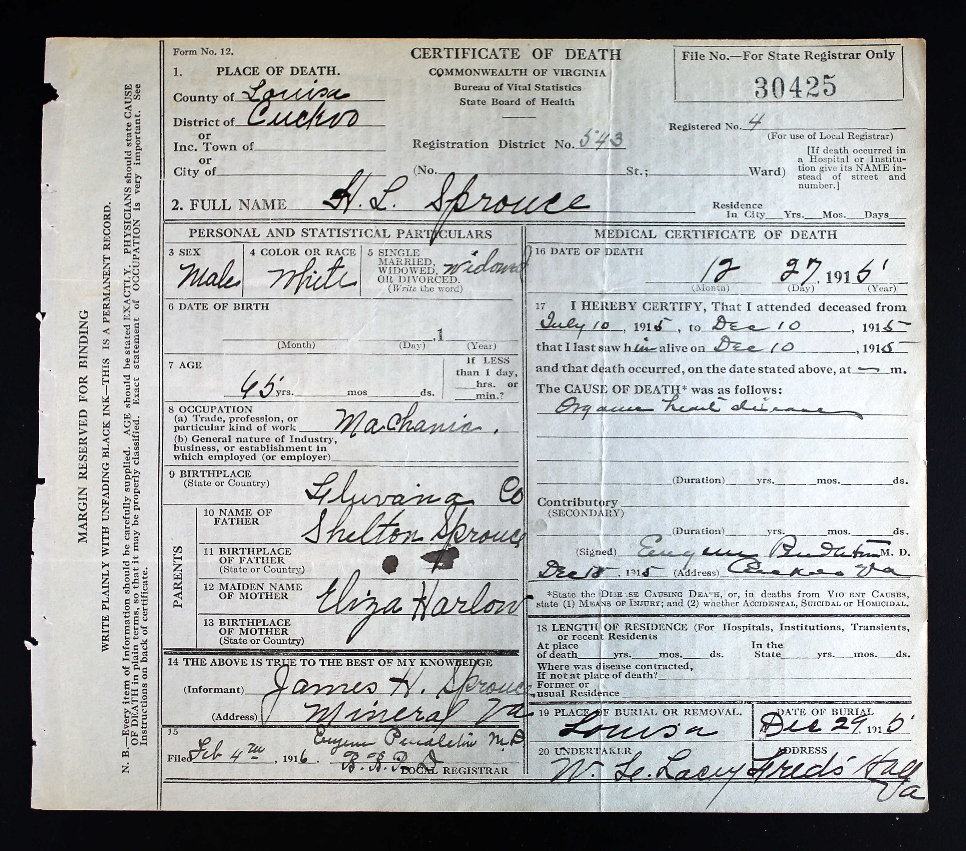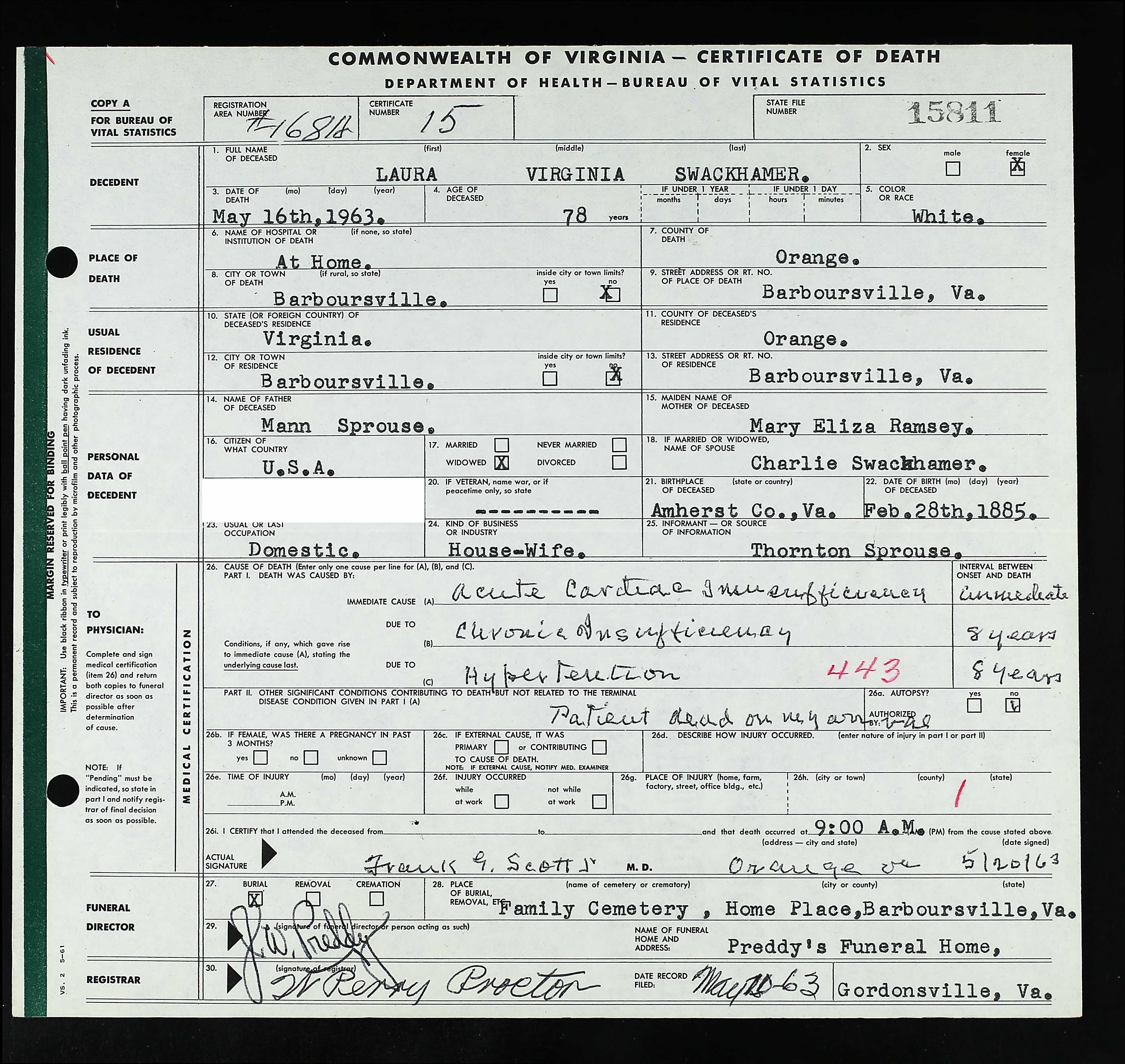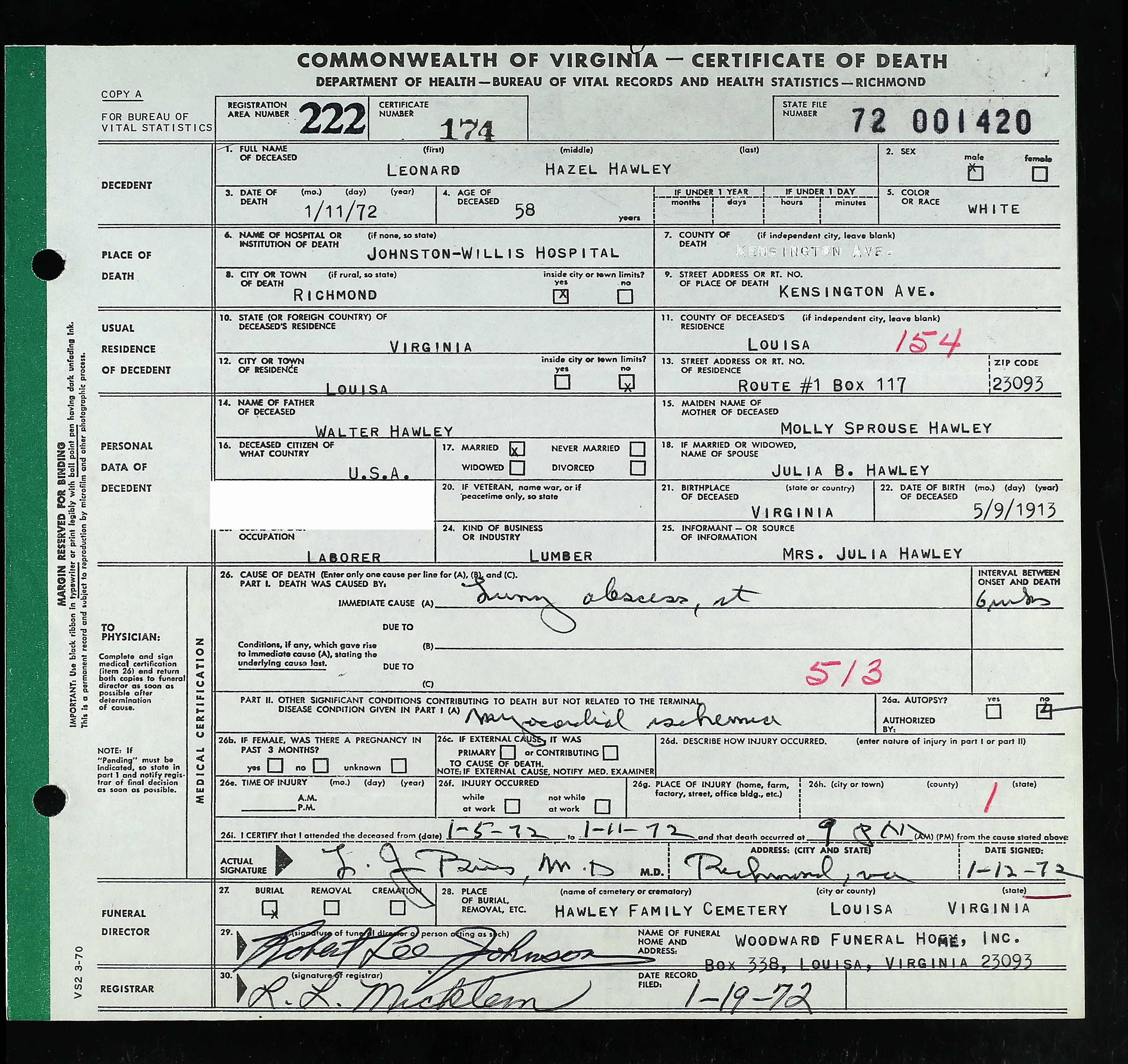 death place: Louisa, Louisa, Virginia