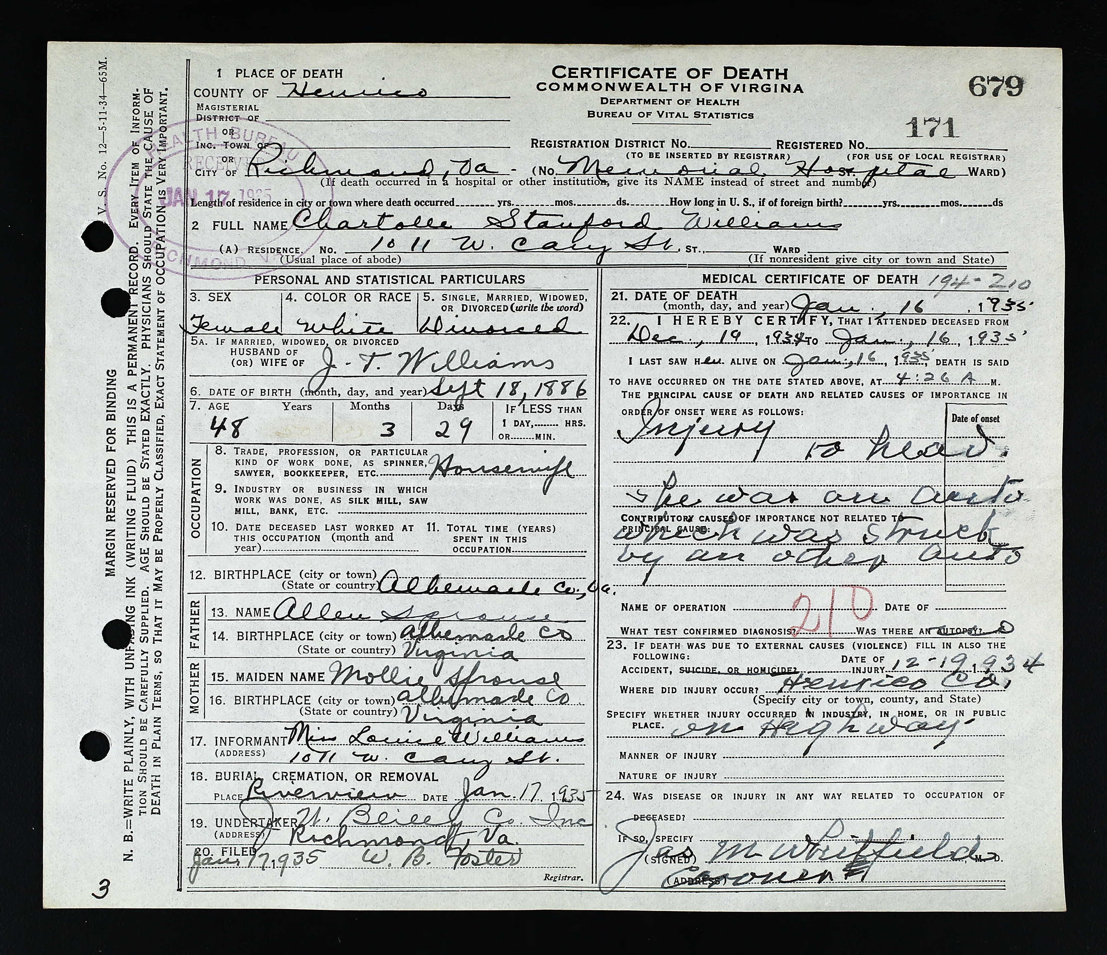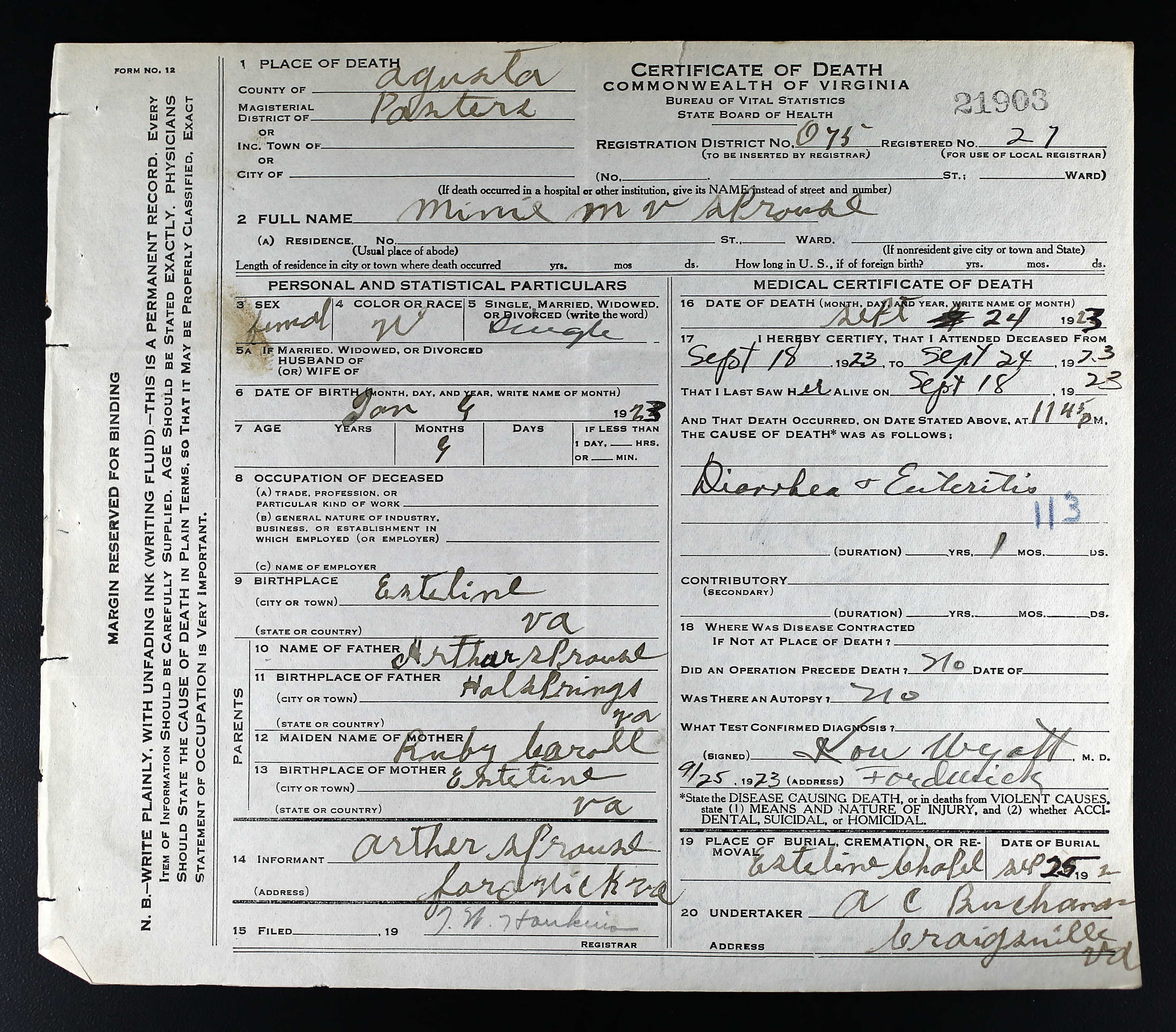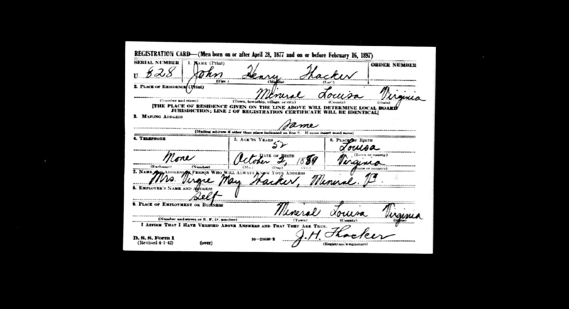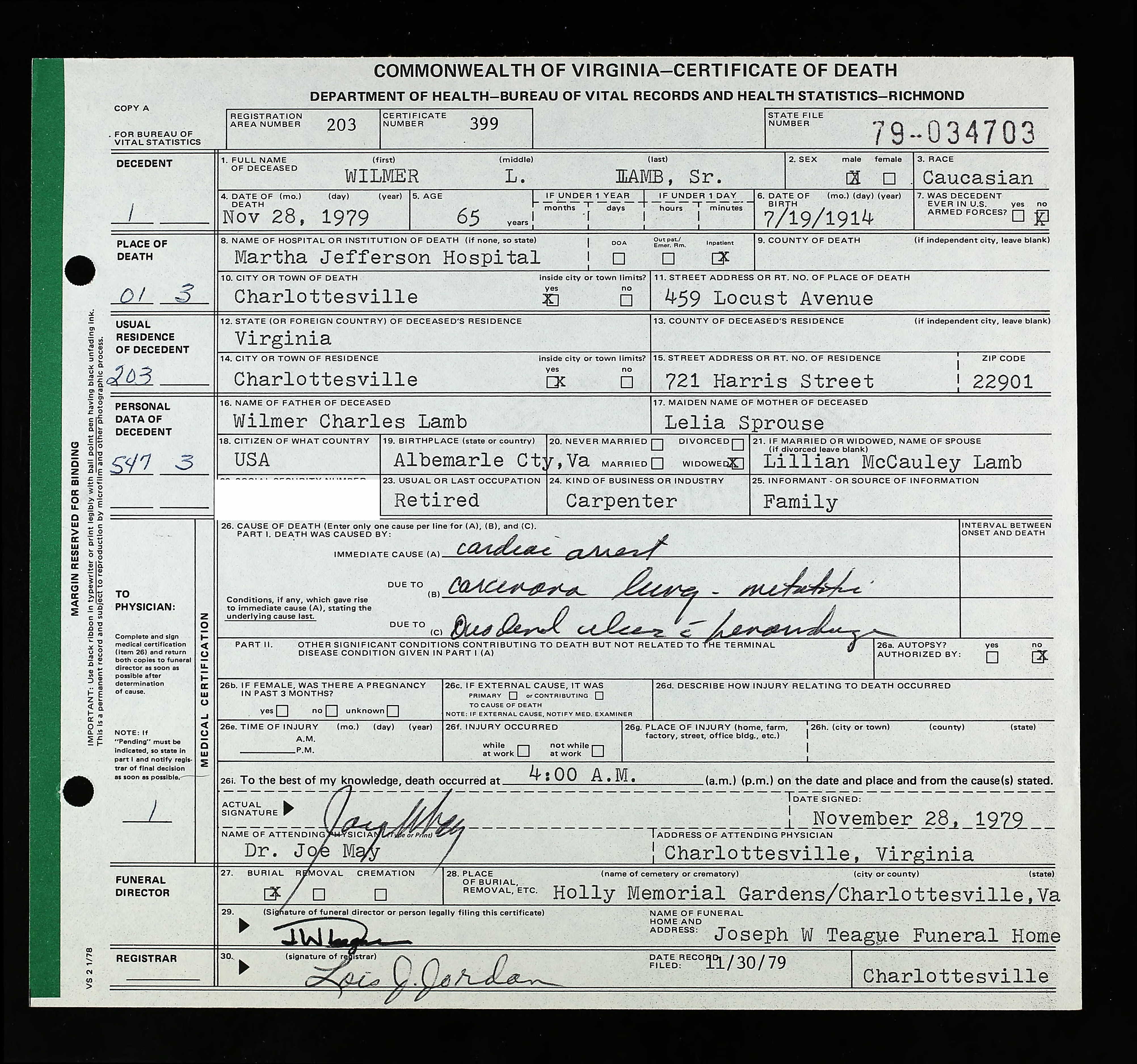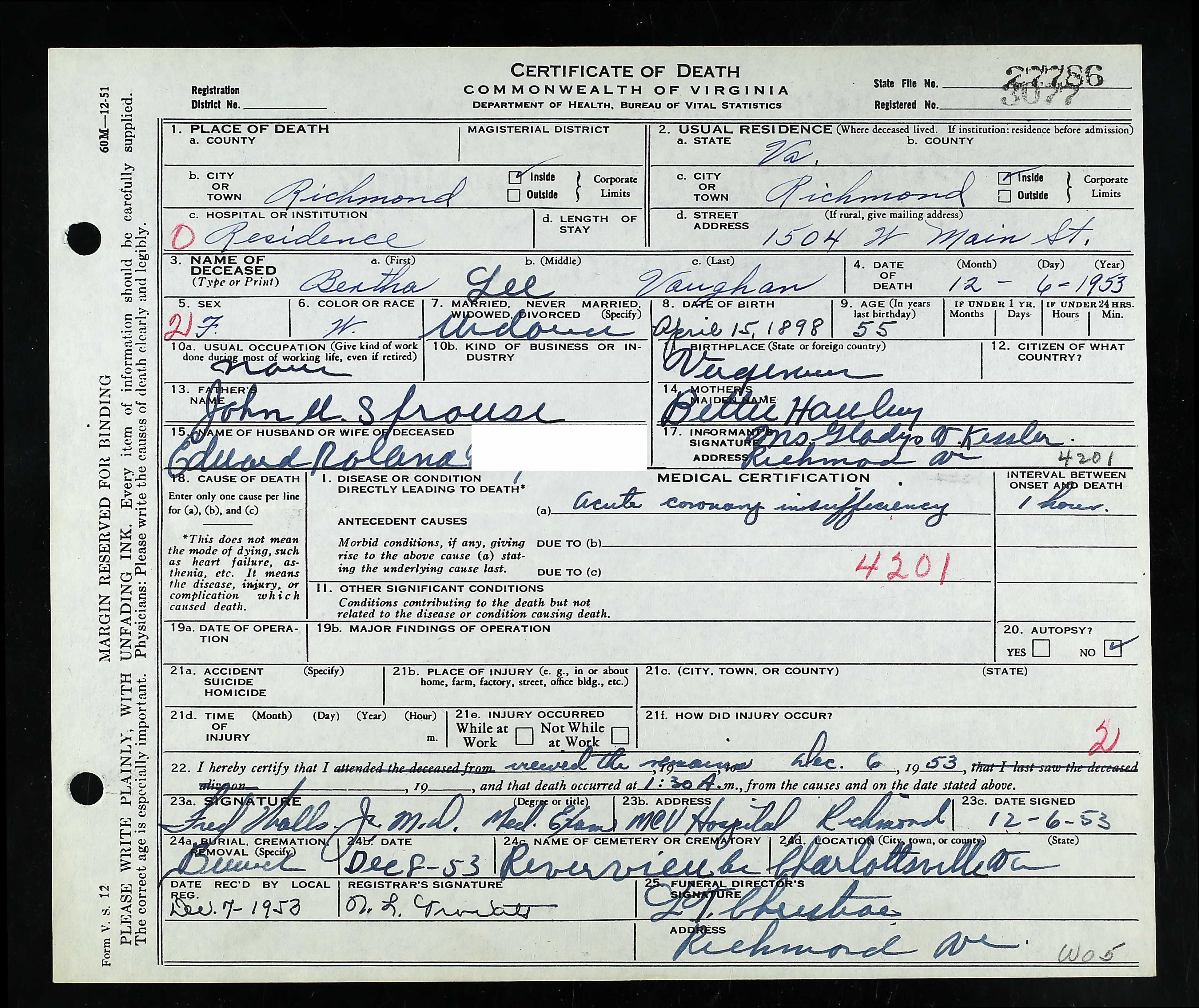 death place: Louisa, Louisa, Virginia