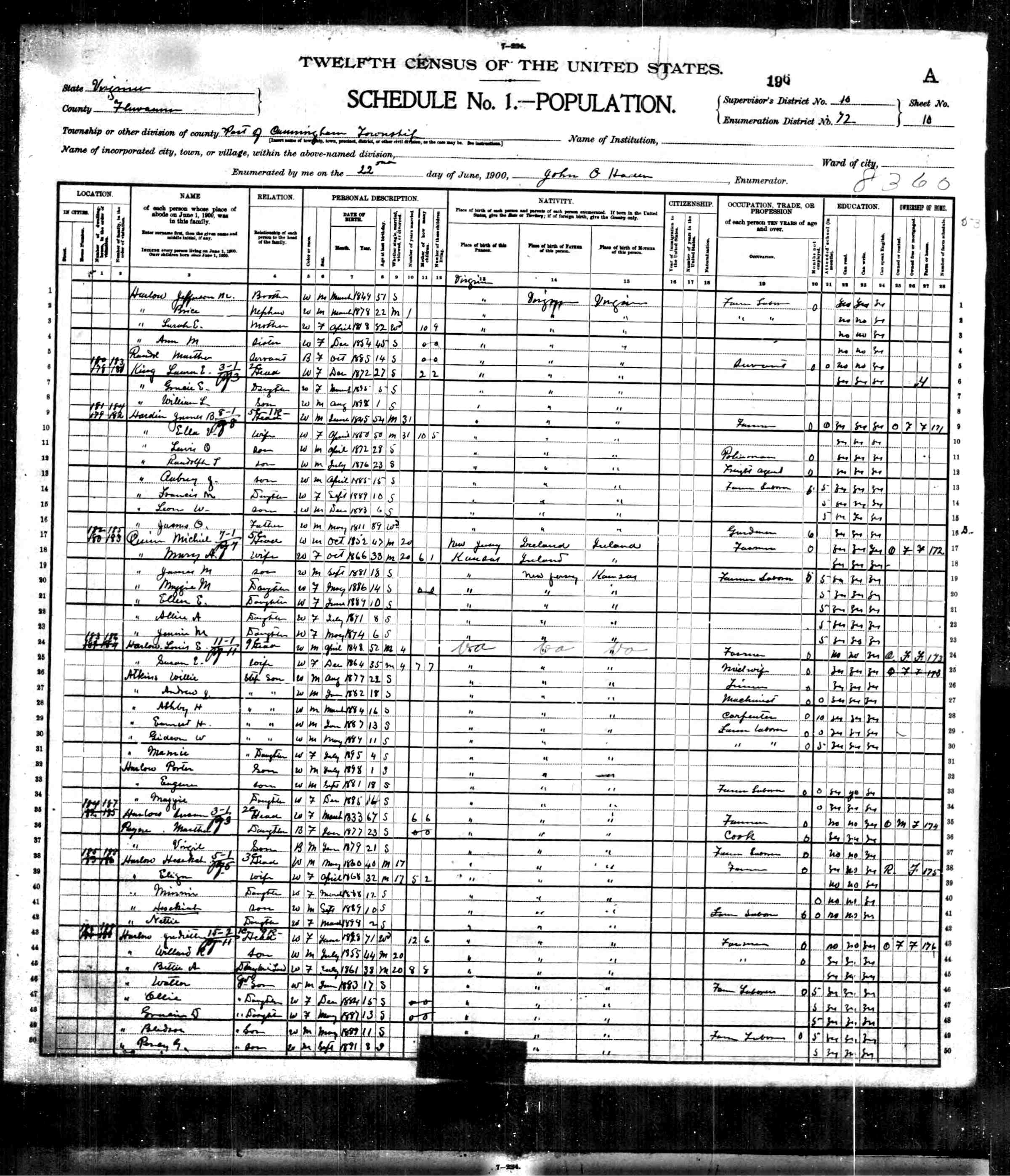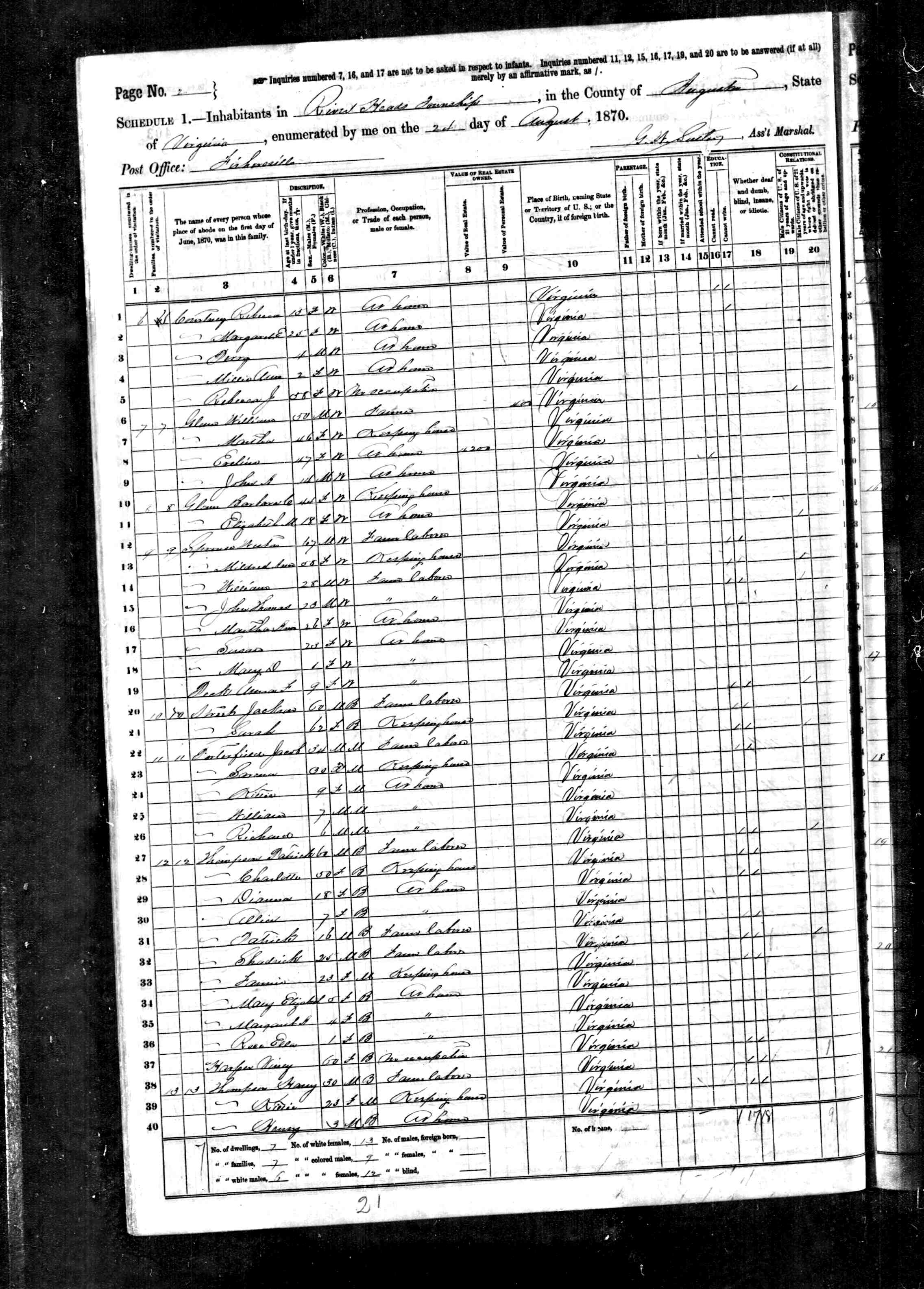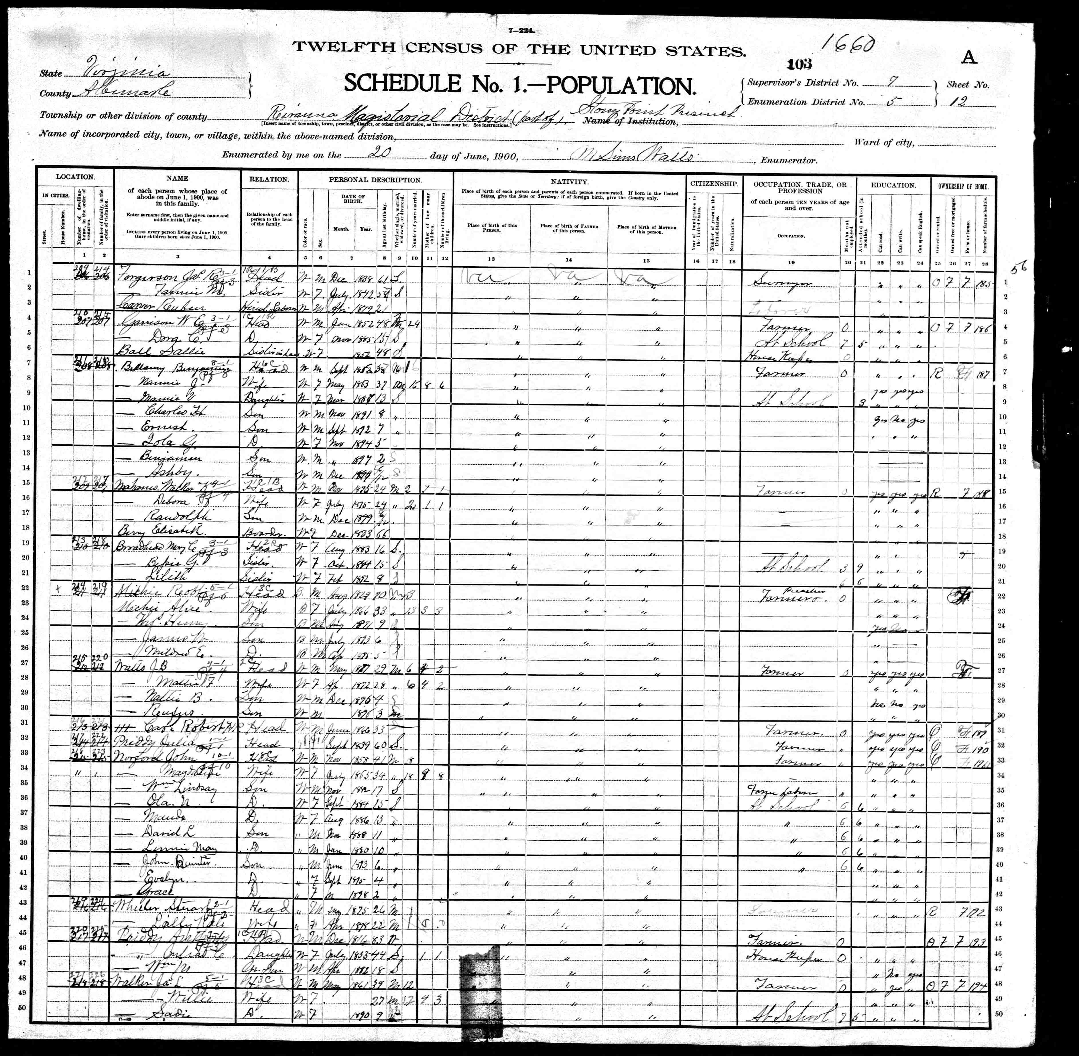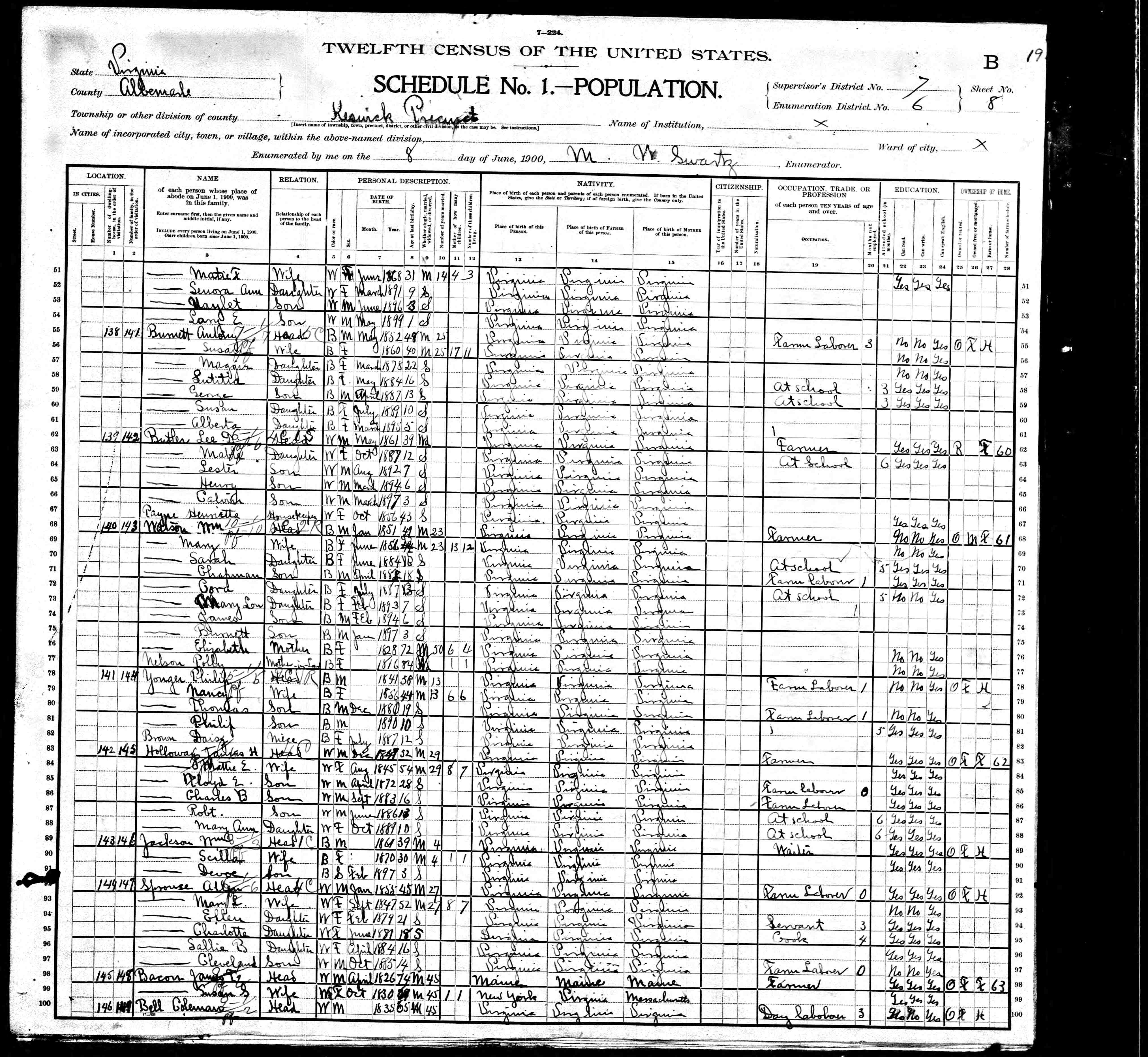 1074. 1940 Virginia Census, Albemarle, Rivanna, ED 2-6, Sht 11B, Image 22 Roll T627.
