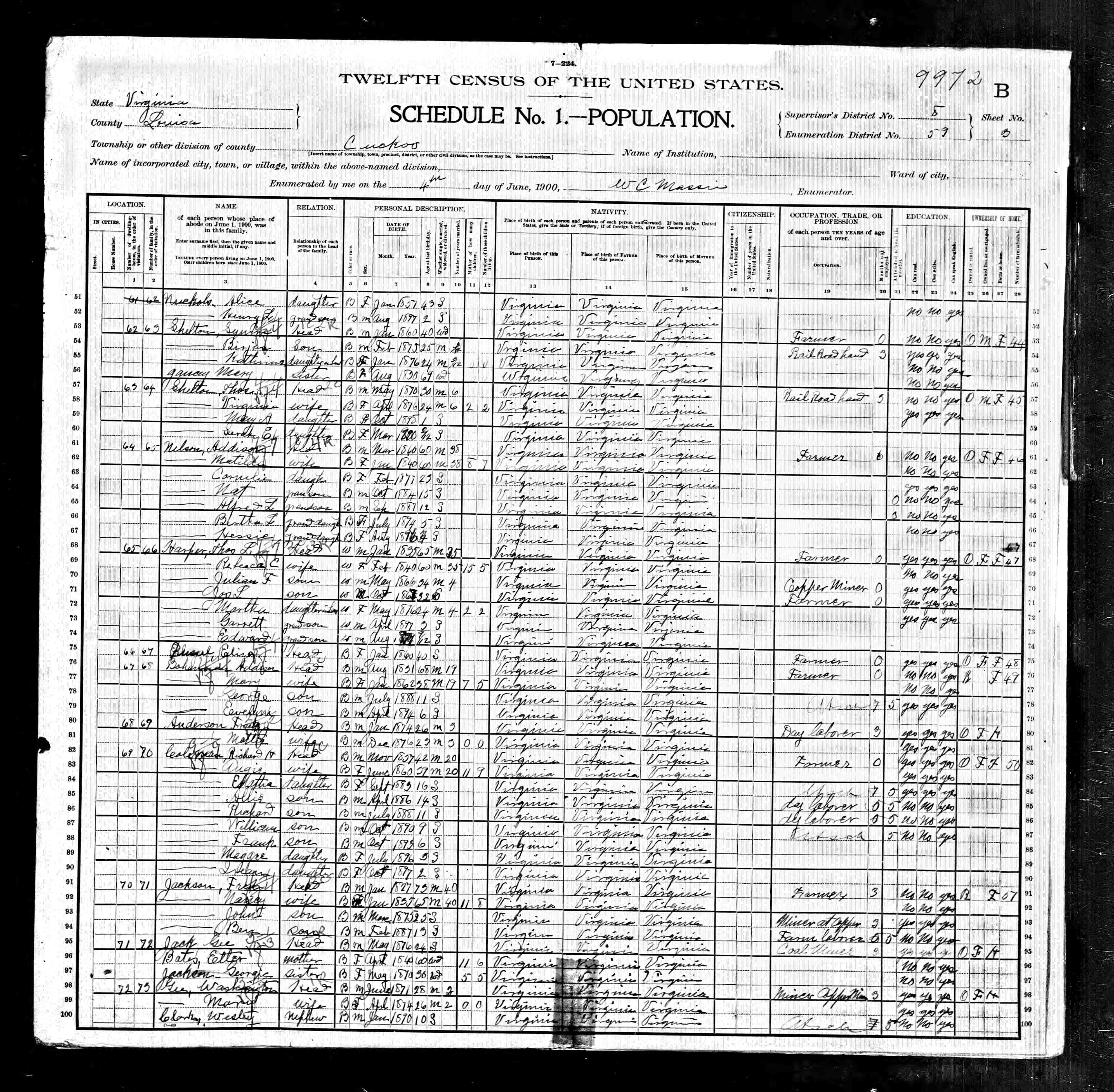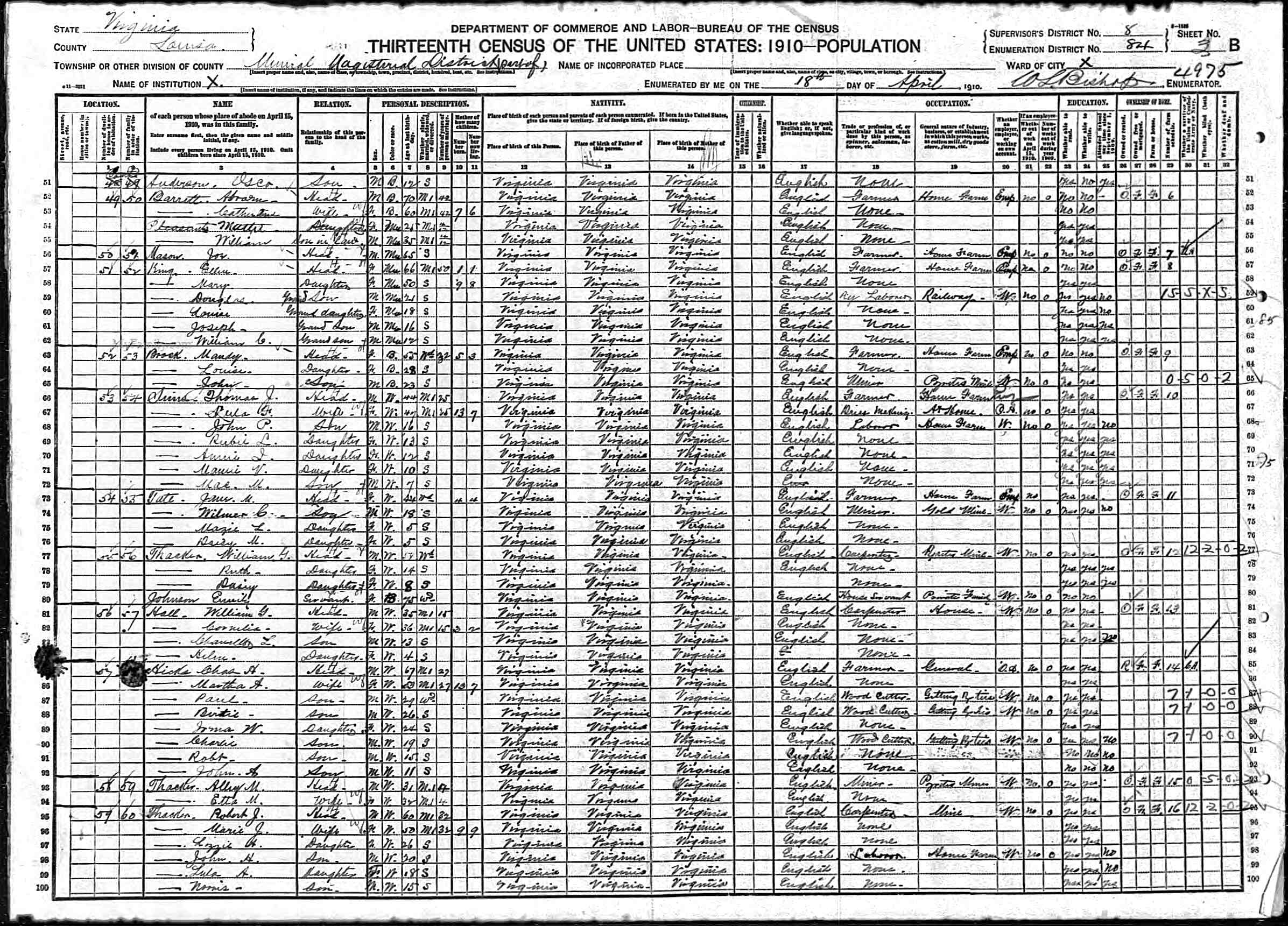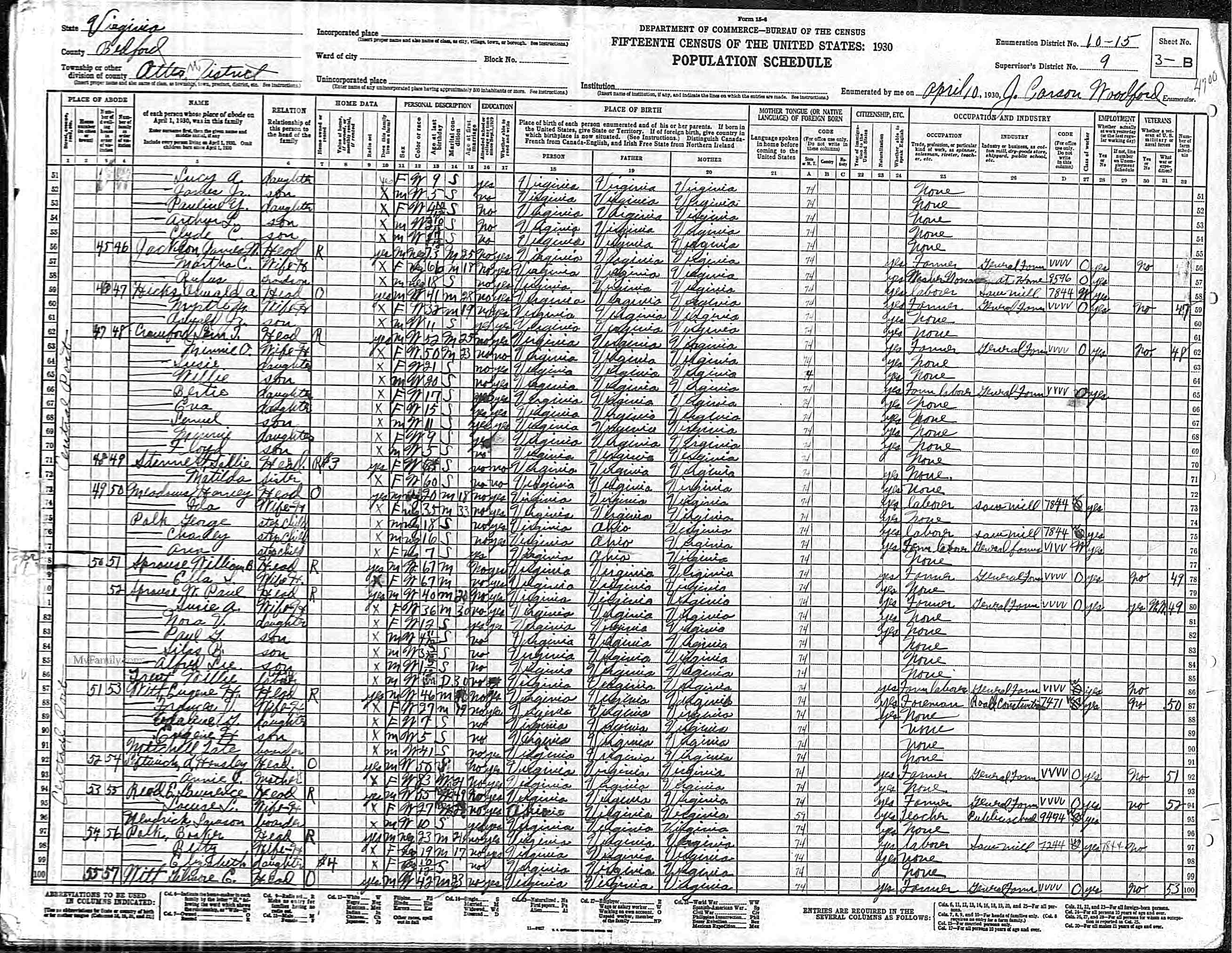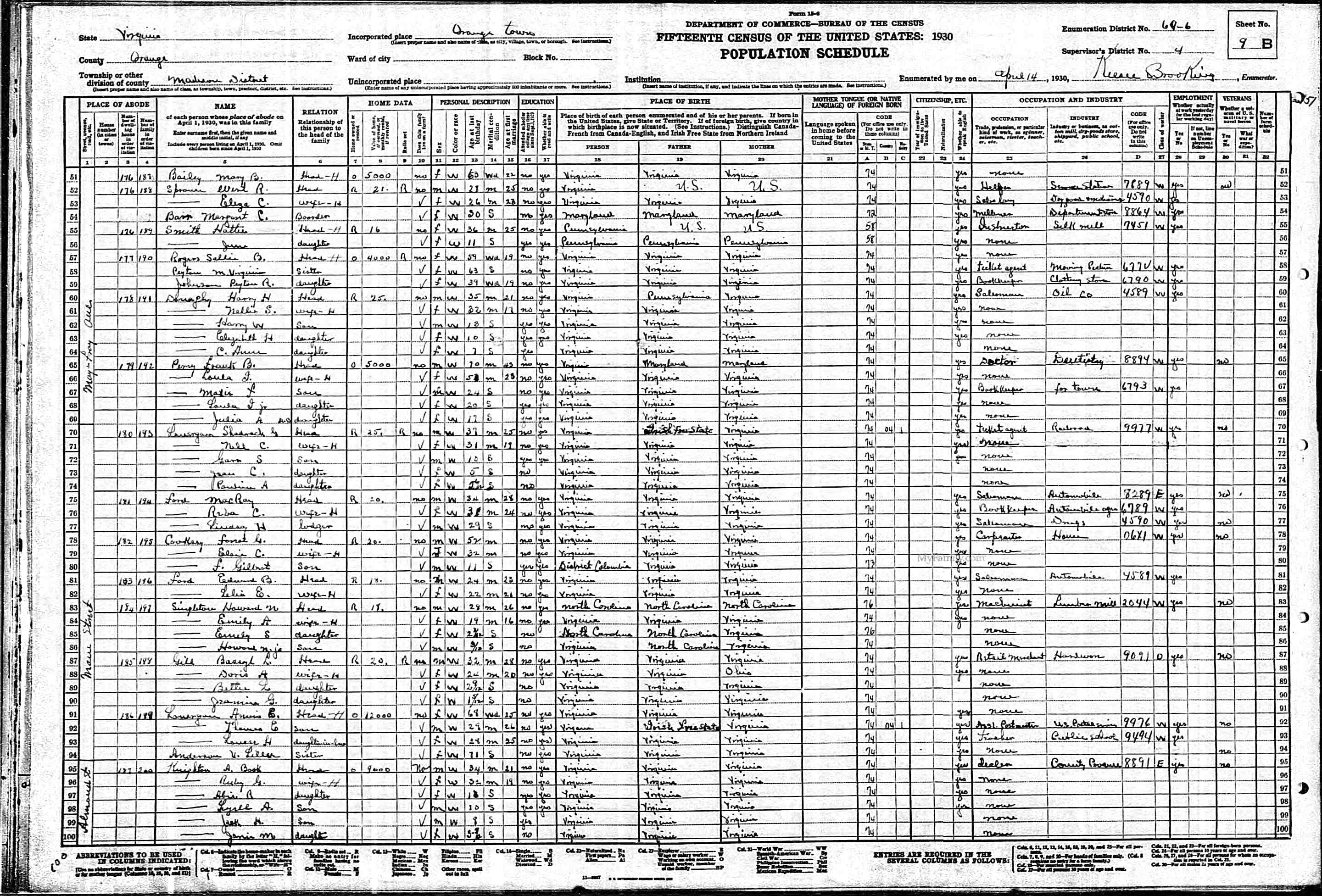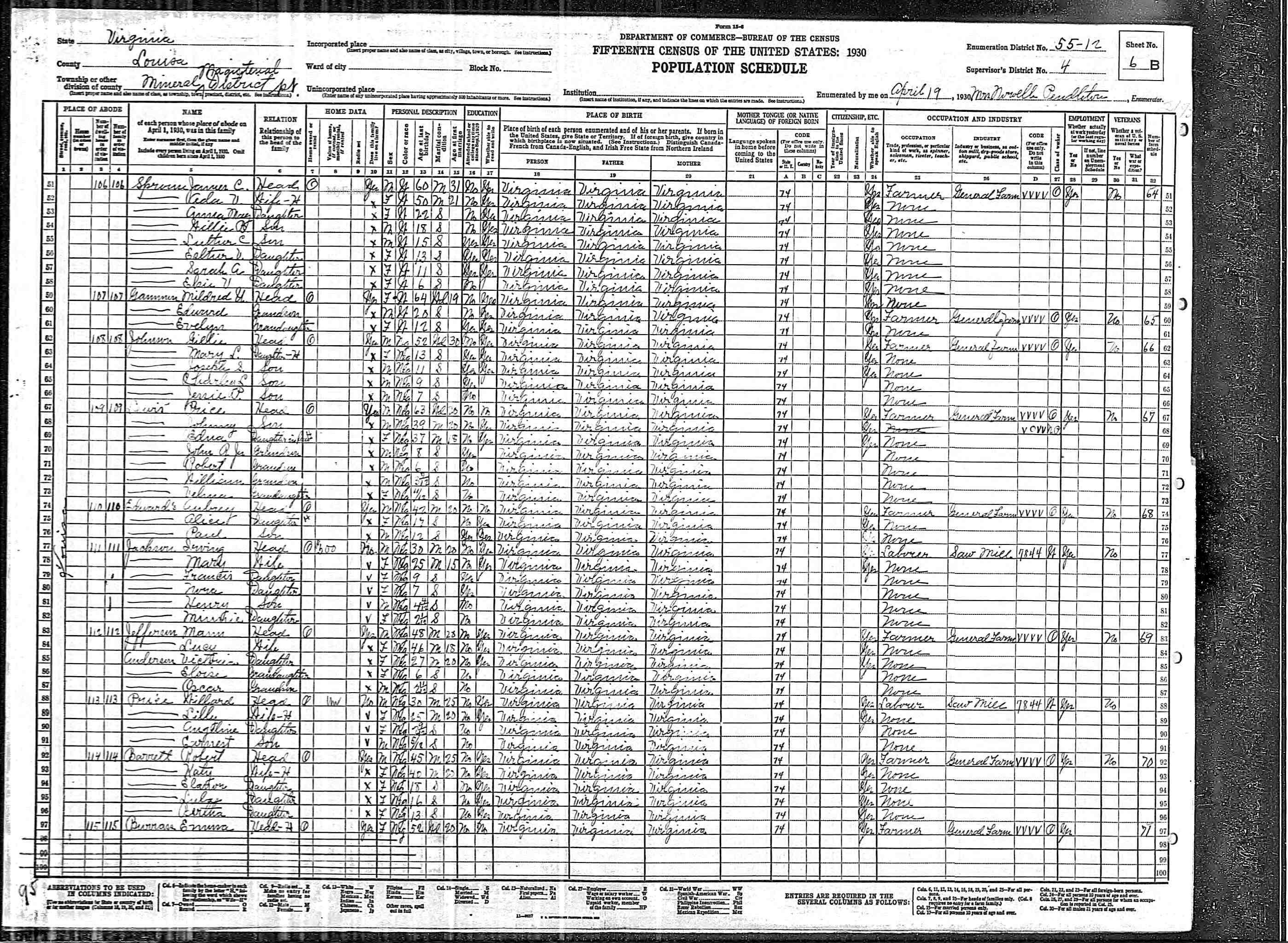 1064. 1930 Virginia Census, Goochland, Byrd, ED 1, Sht 9A, Image 17 Roll T626_2445, p. 9A, ED 1, Image 18.