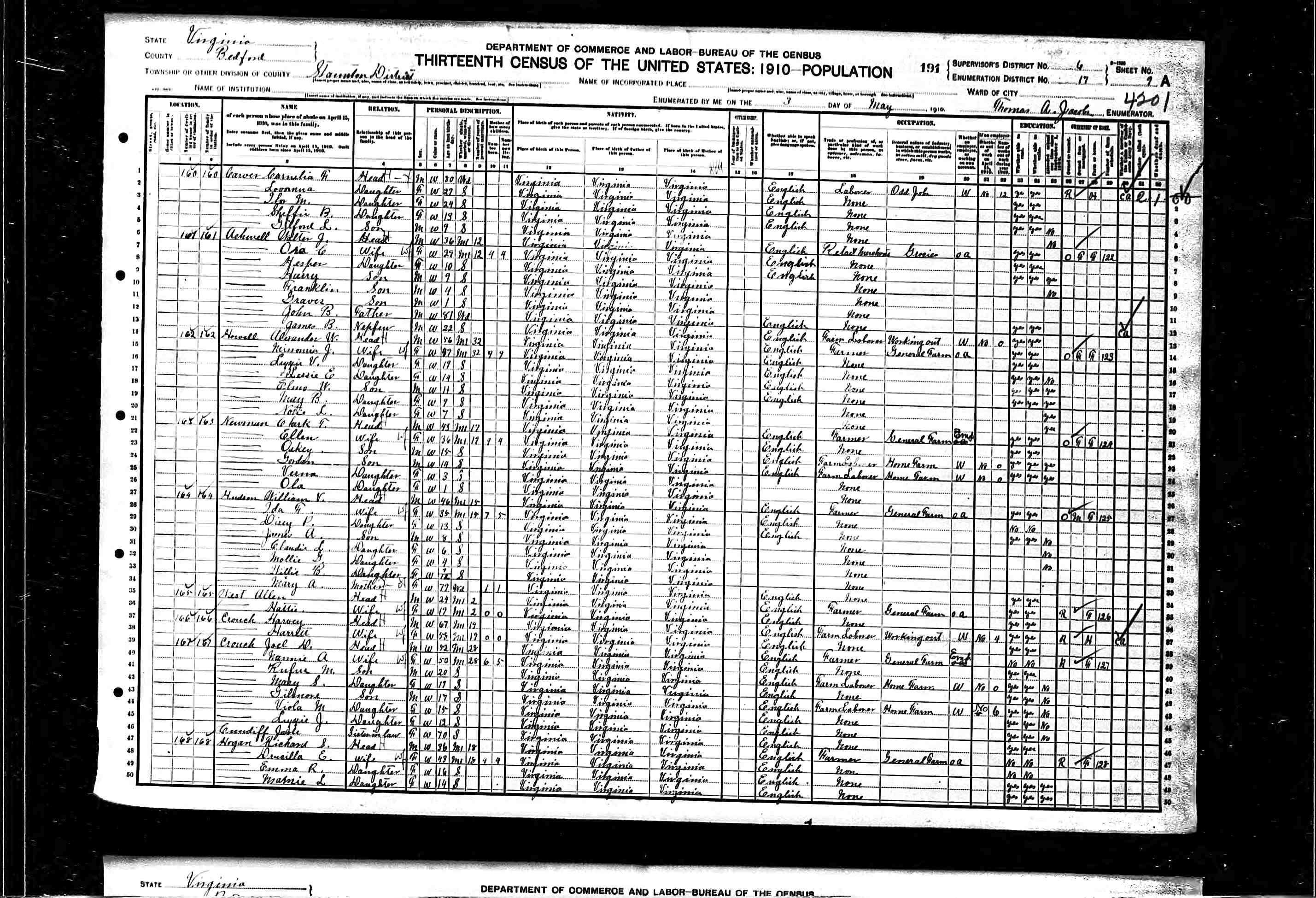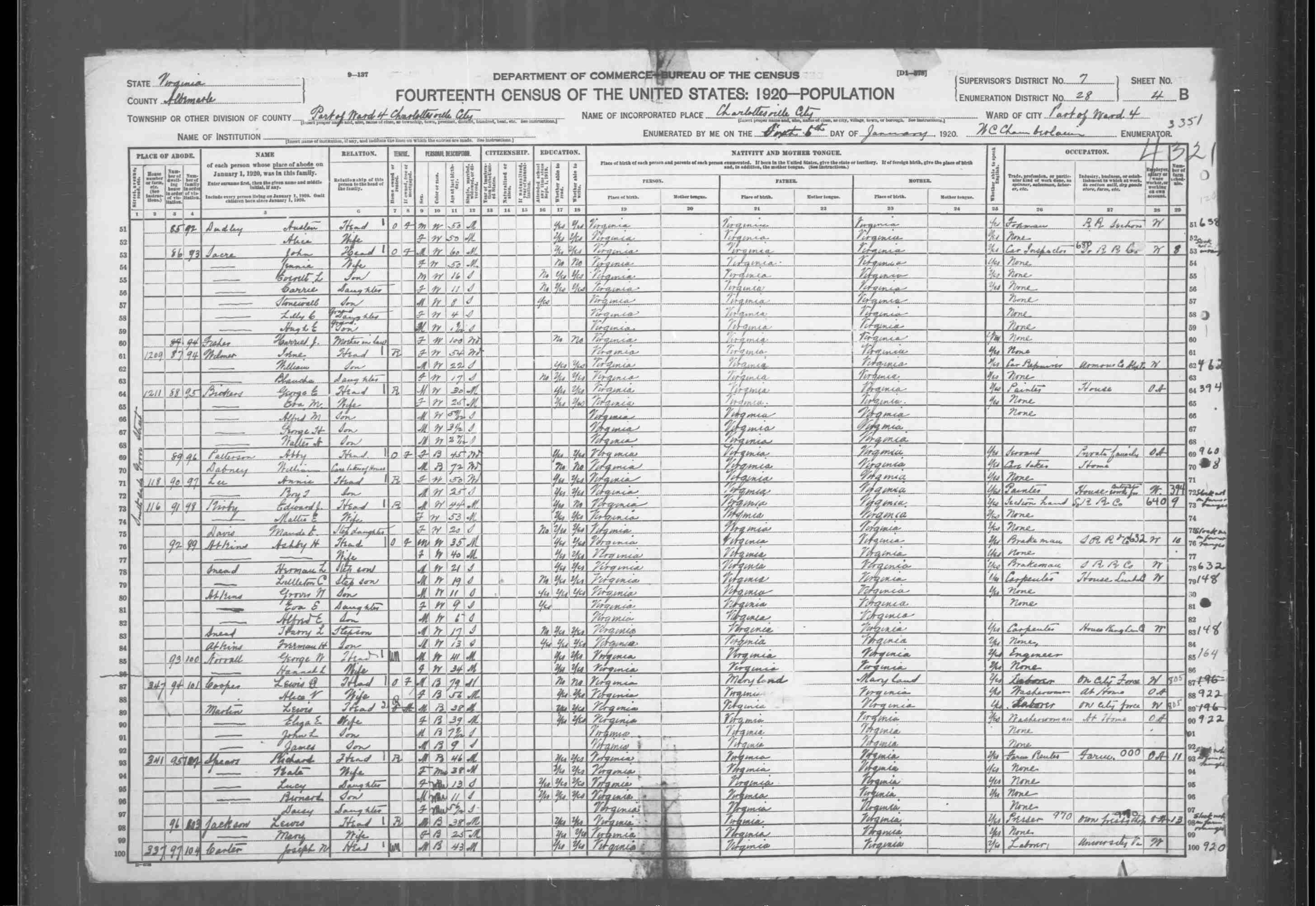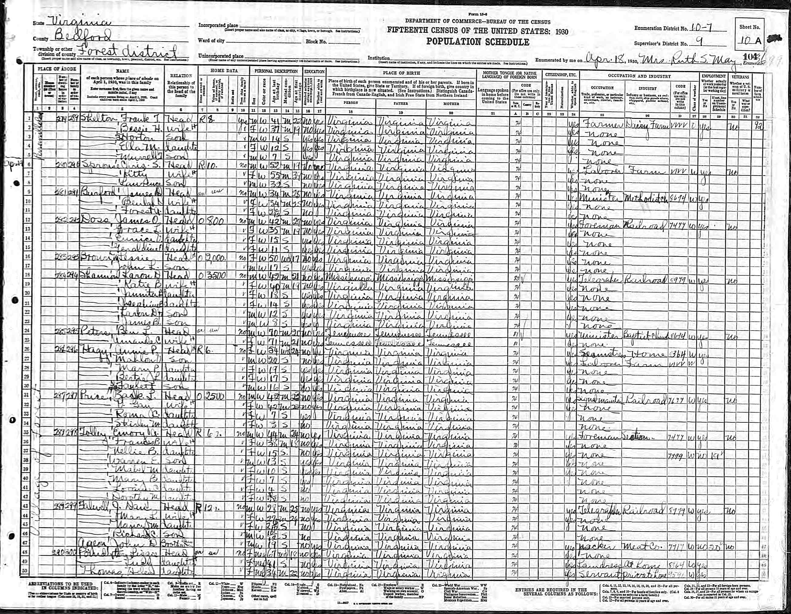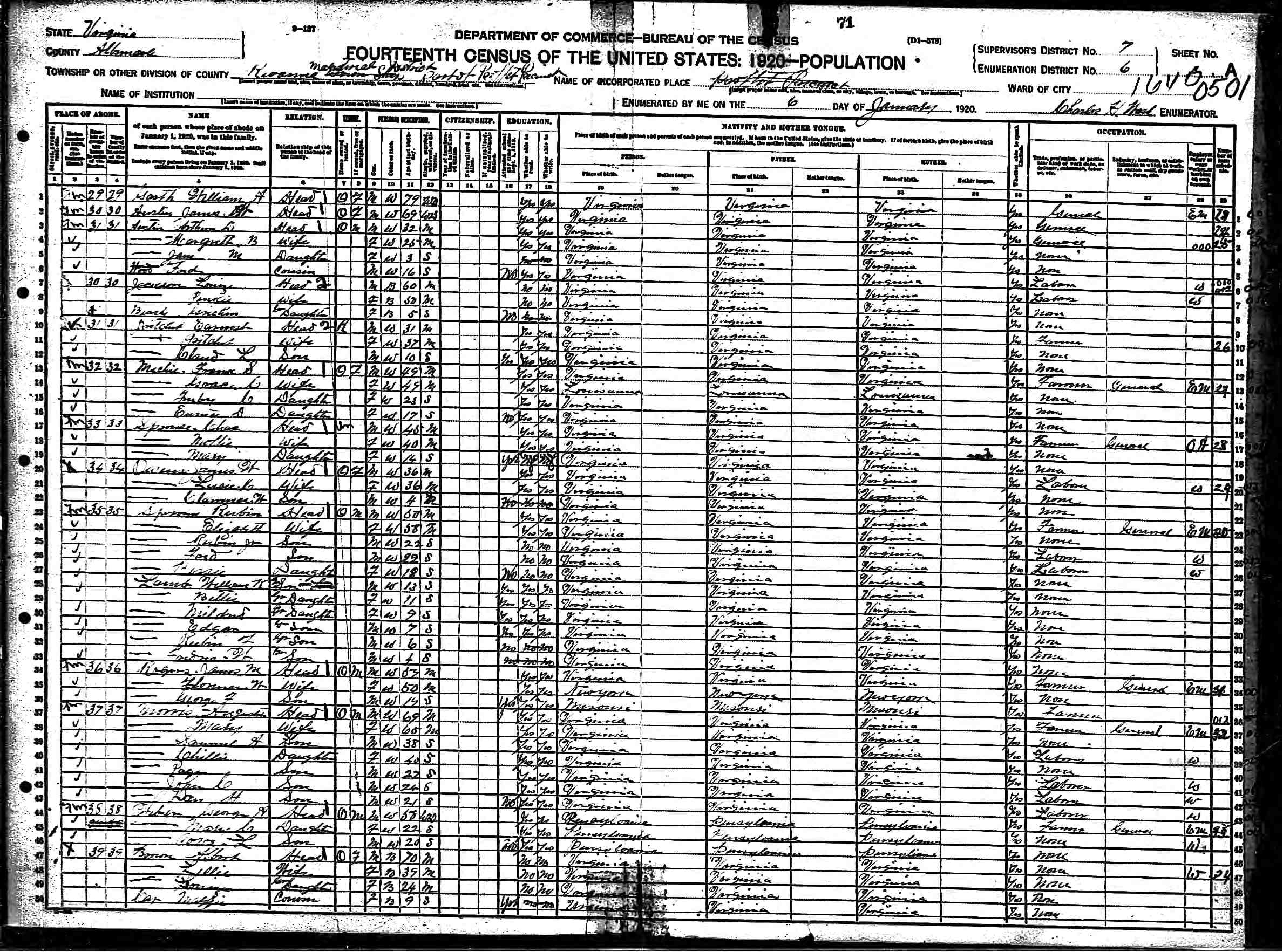 1063. 1930 Virginia Census, Lynchburg, Lynchburg, ED 20, Sht 14B, Image 28 Roll 2468, p. 14B, ED 20, Image 967.