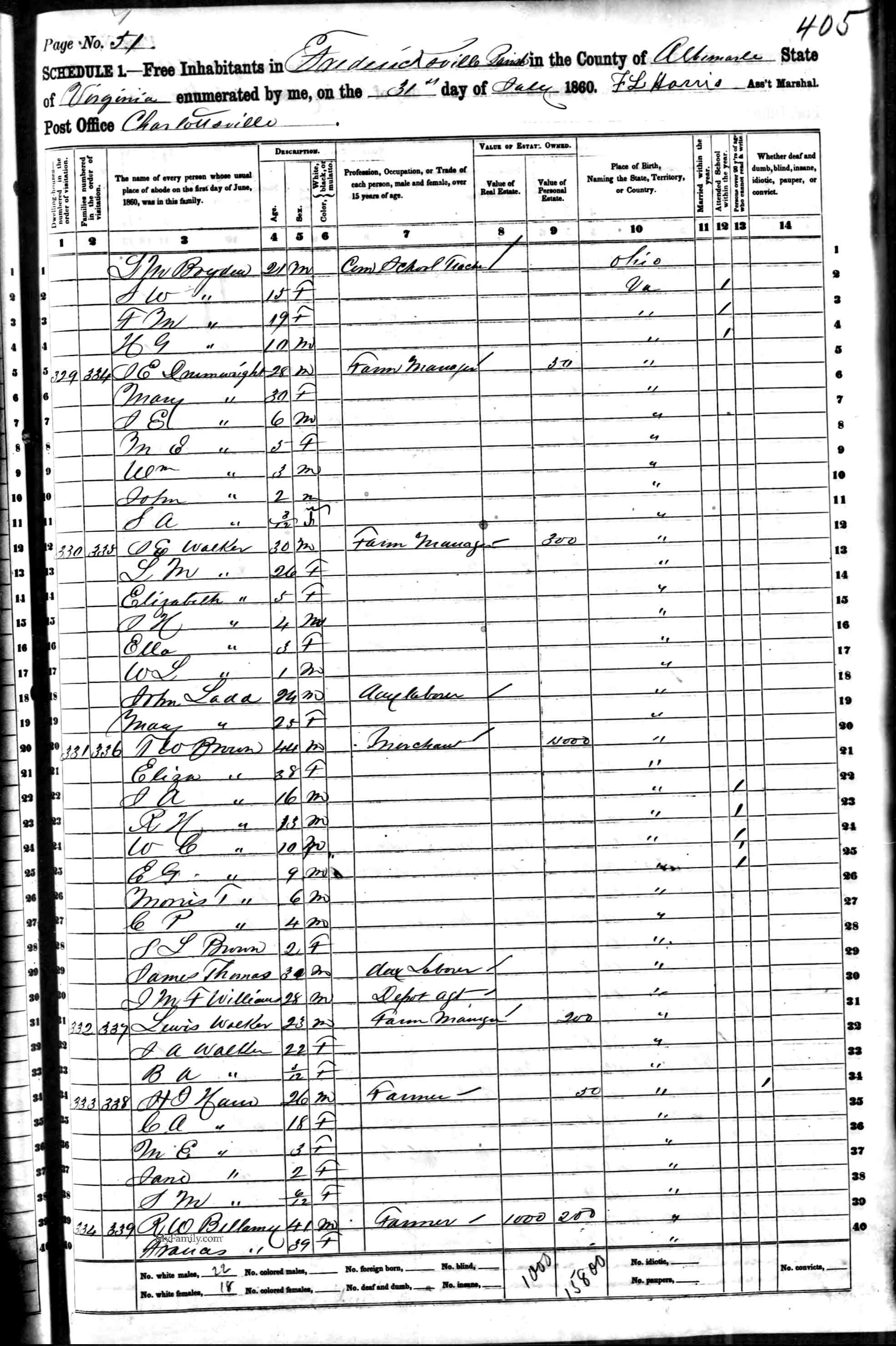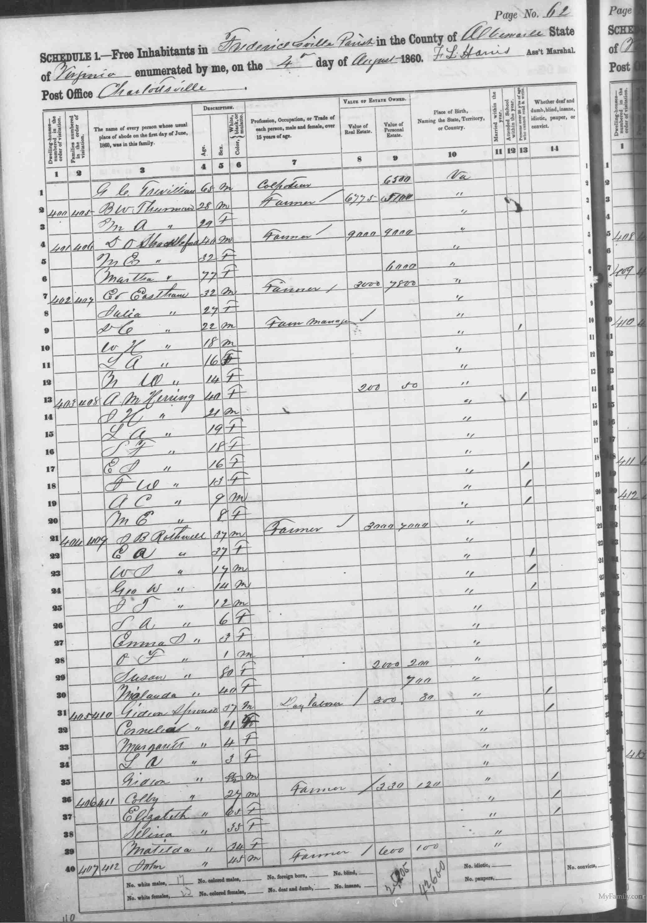 4. 1810 Virginia Census, Albemarle, St Anne's. M<10 10-16 16-26 26-45 45> F<10 10-16 16-26 26-45 >45 OTHER SLAVES