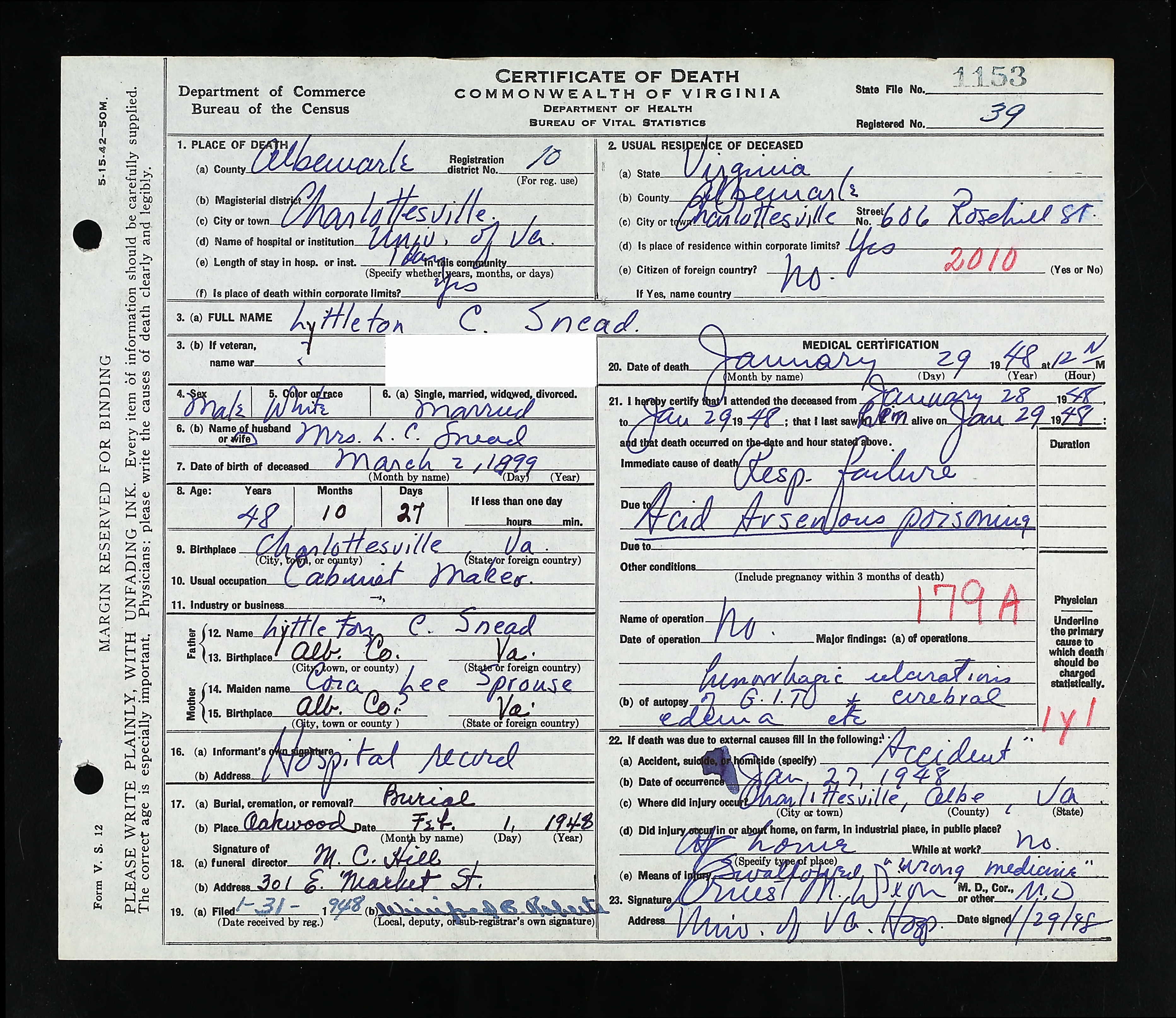 Deceased Name: Warney E. Sprouse