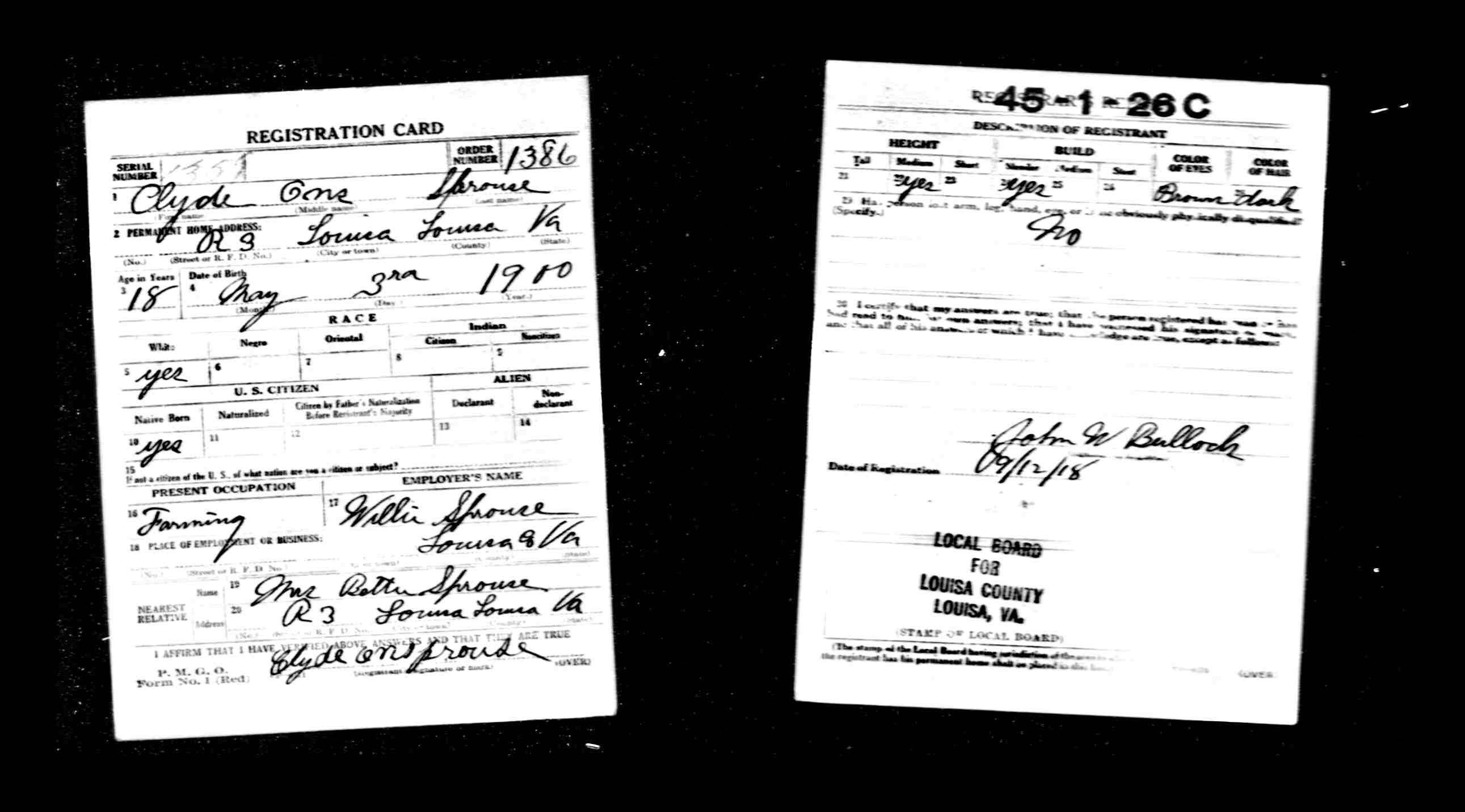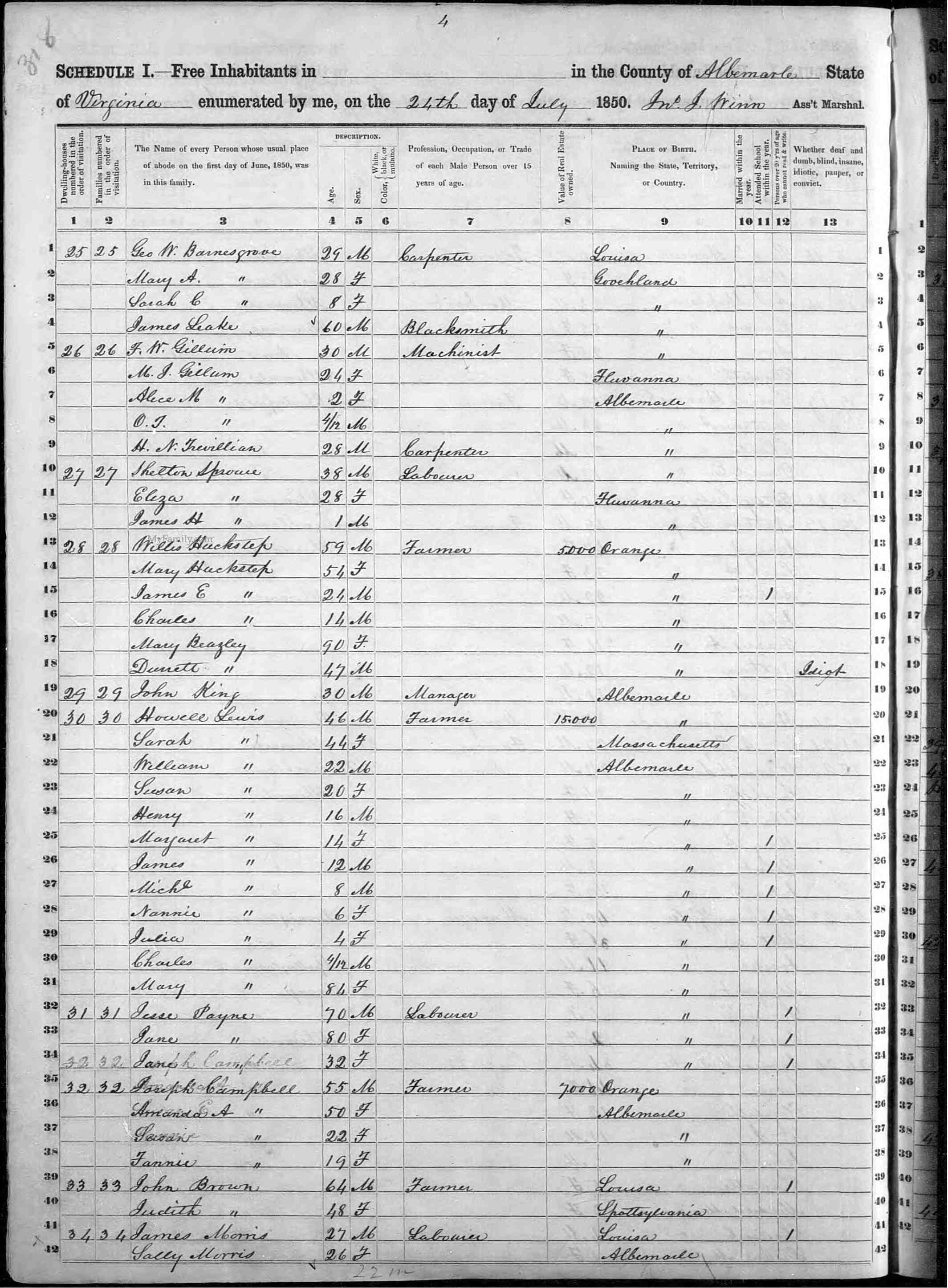 James Sprouse, age 48, trade planter, residence Louisa, born Fluvanna.