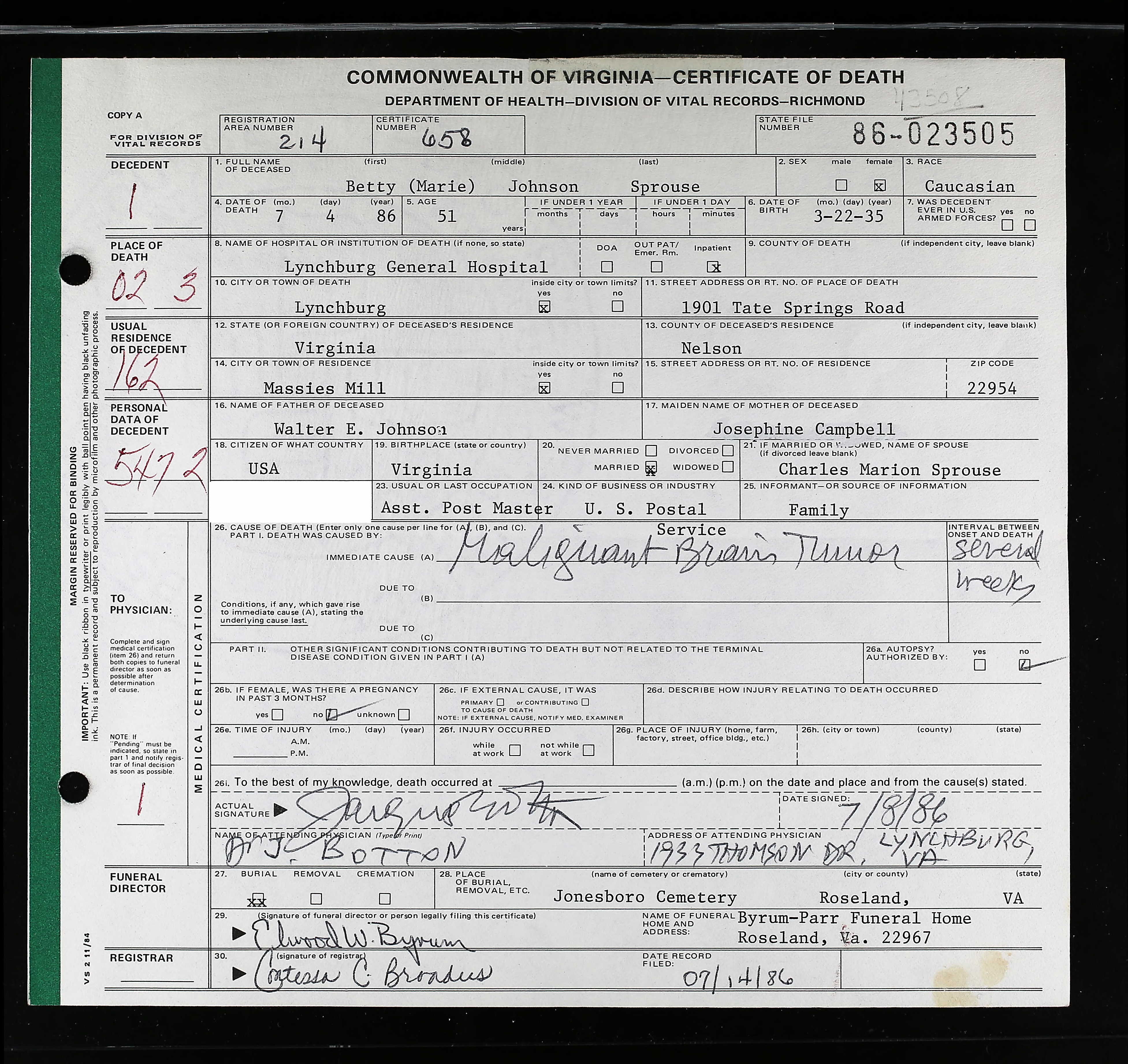 Virginia, USA Death: Oct. 6, 2007