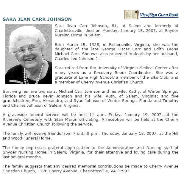1097. Obituary, The News & Advance - Lynchburg, VA Sunday, 07 Oct 2007. Birth: Sep. 7, 2007