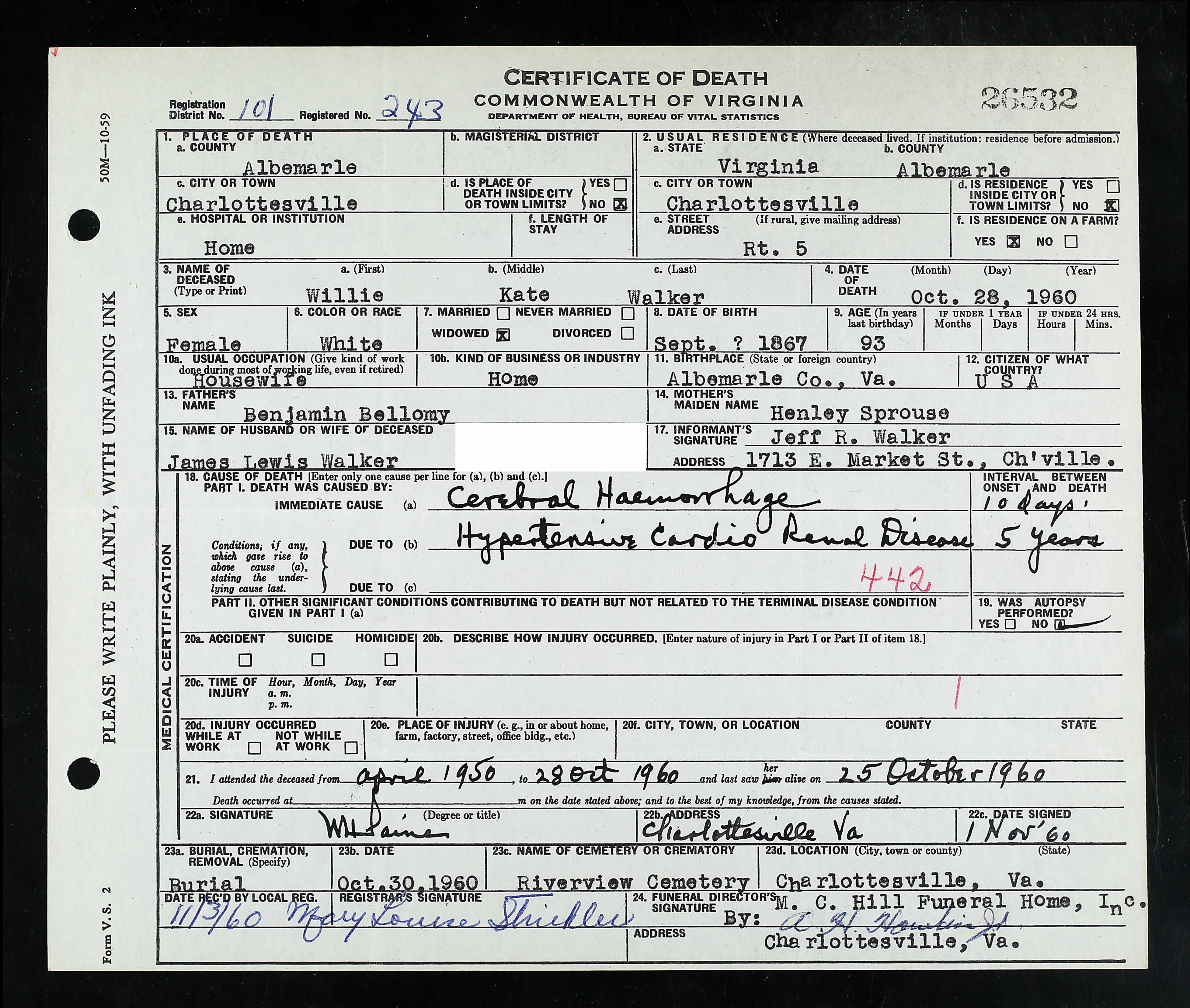 Place of Death: Louisa County.