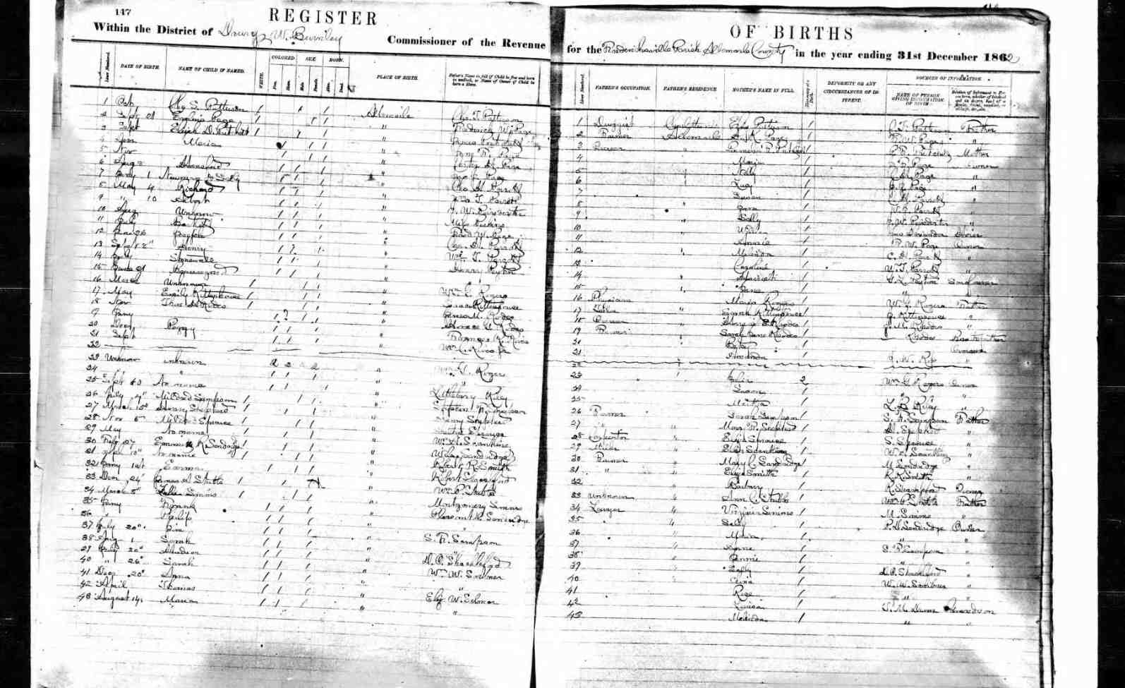 + 48 iv. E.A. Carver was born about 1859 in Albemarle County, Virginia, USA.