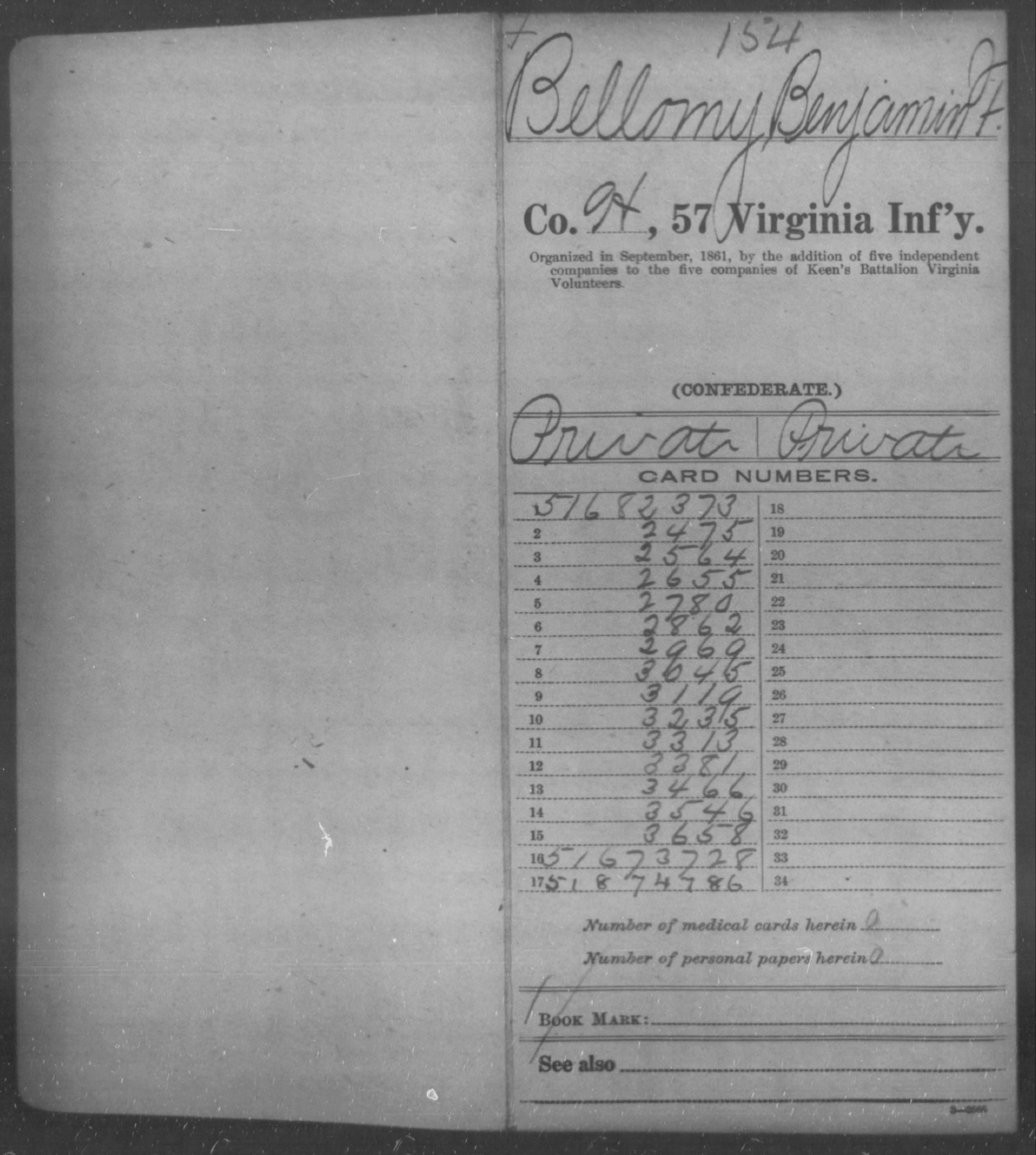 7. Military Service: enlisted Company H, 57th Virginia Infantry, 15 May 1863, Albemarle County, Virginia, USA. 67