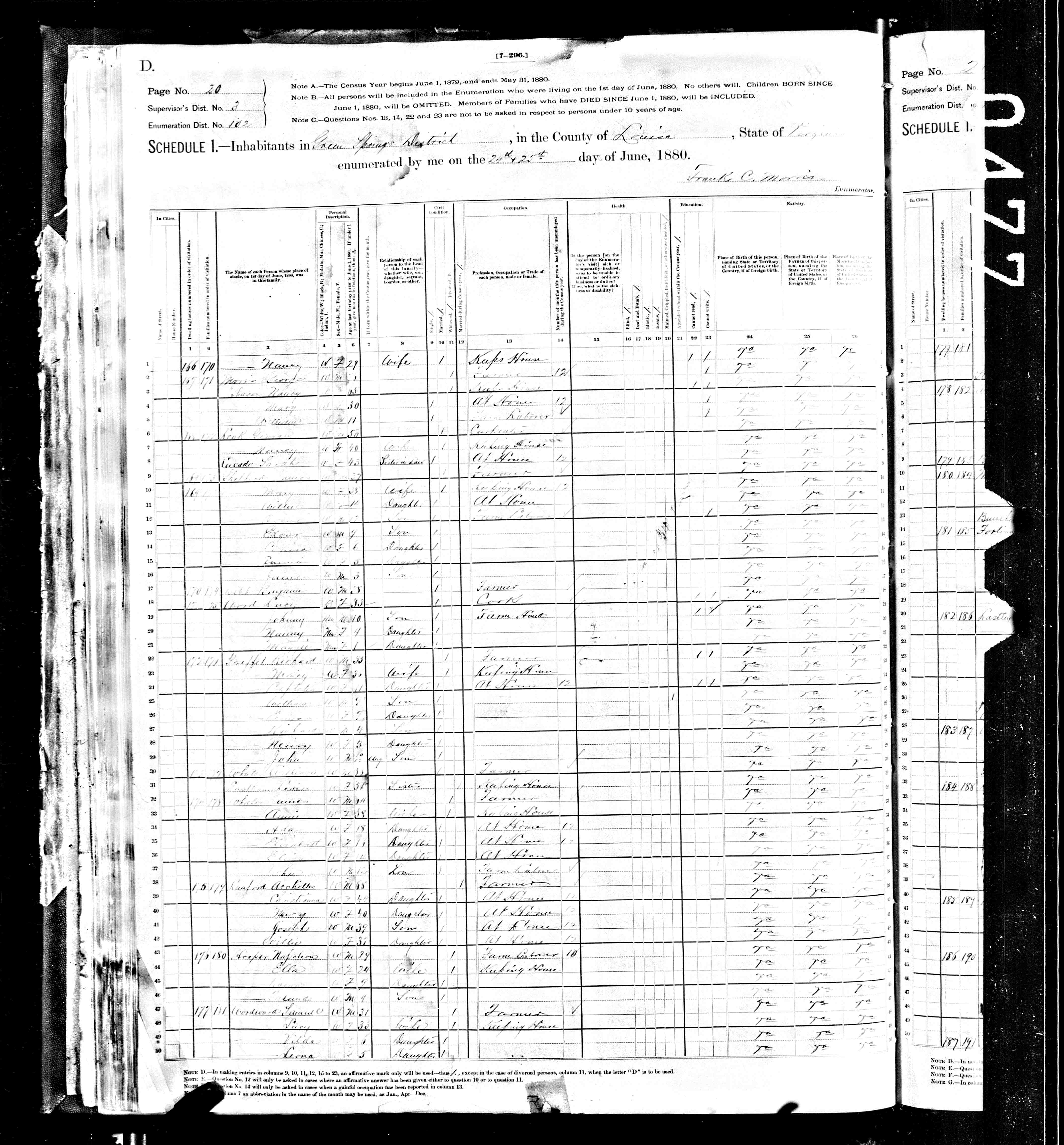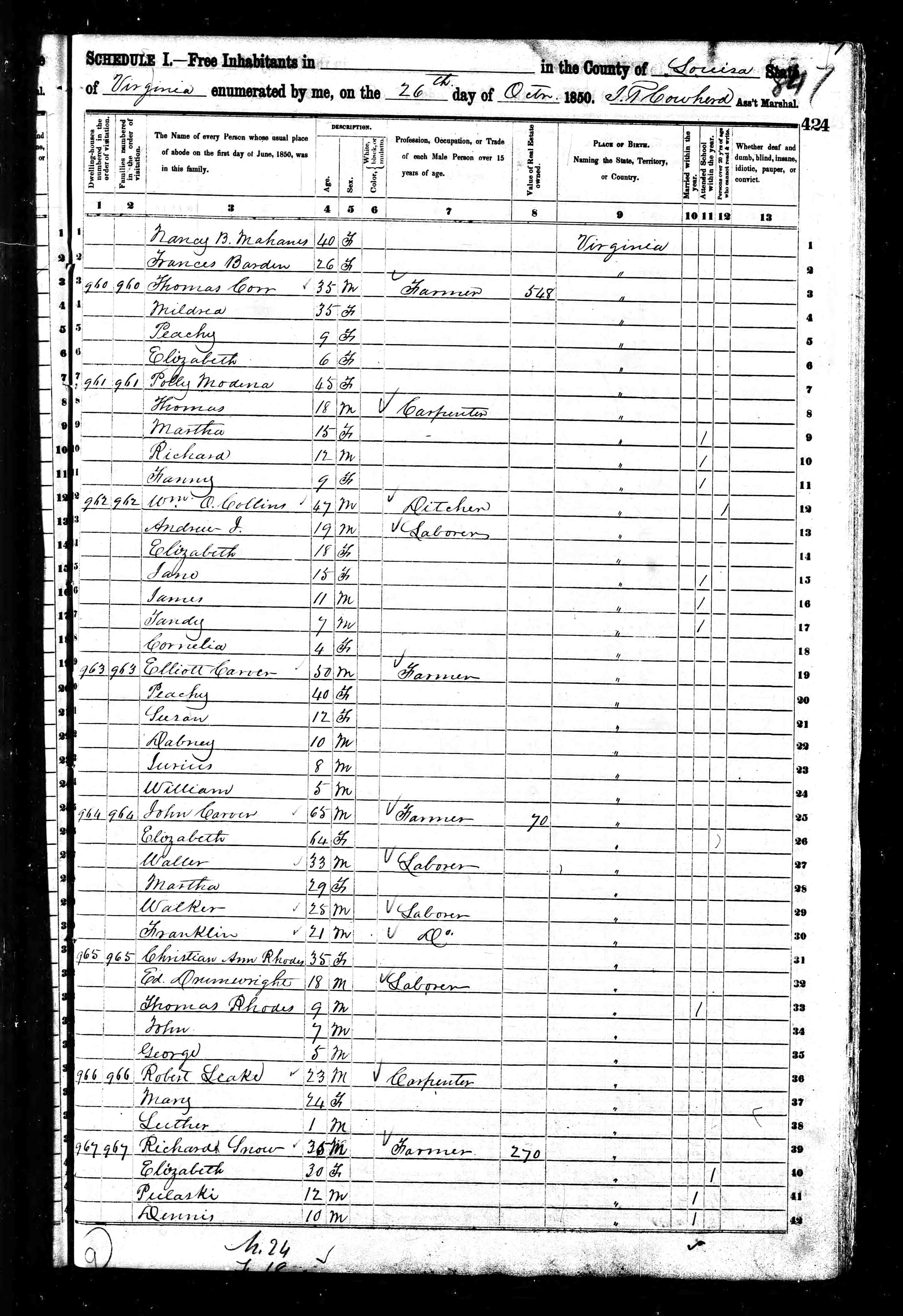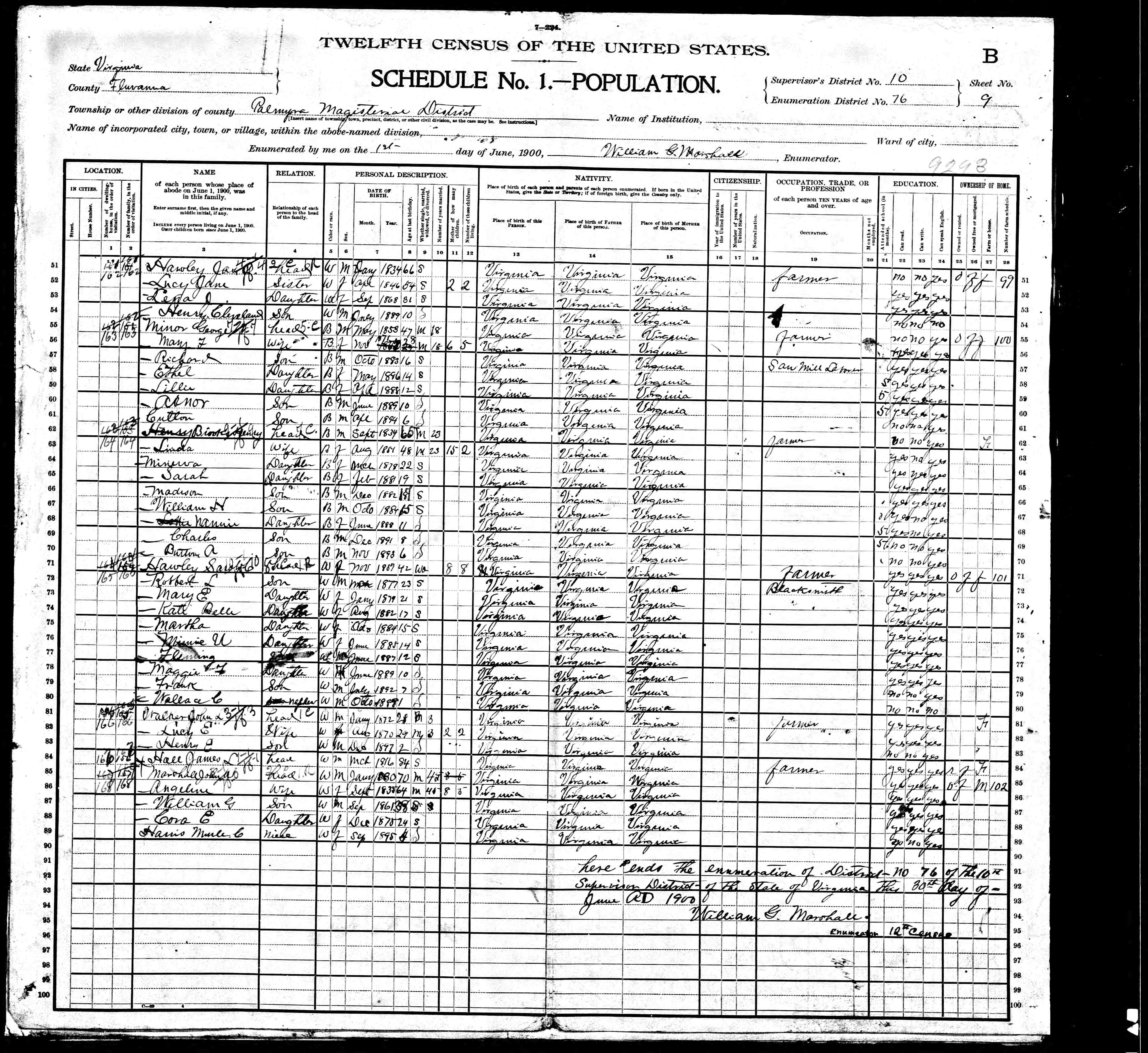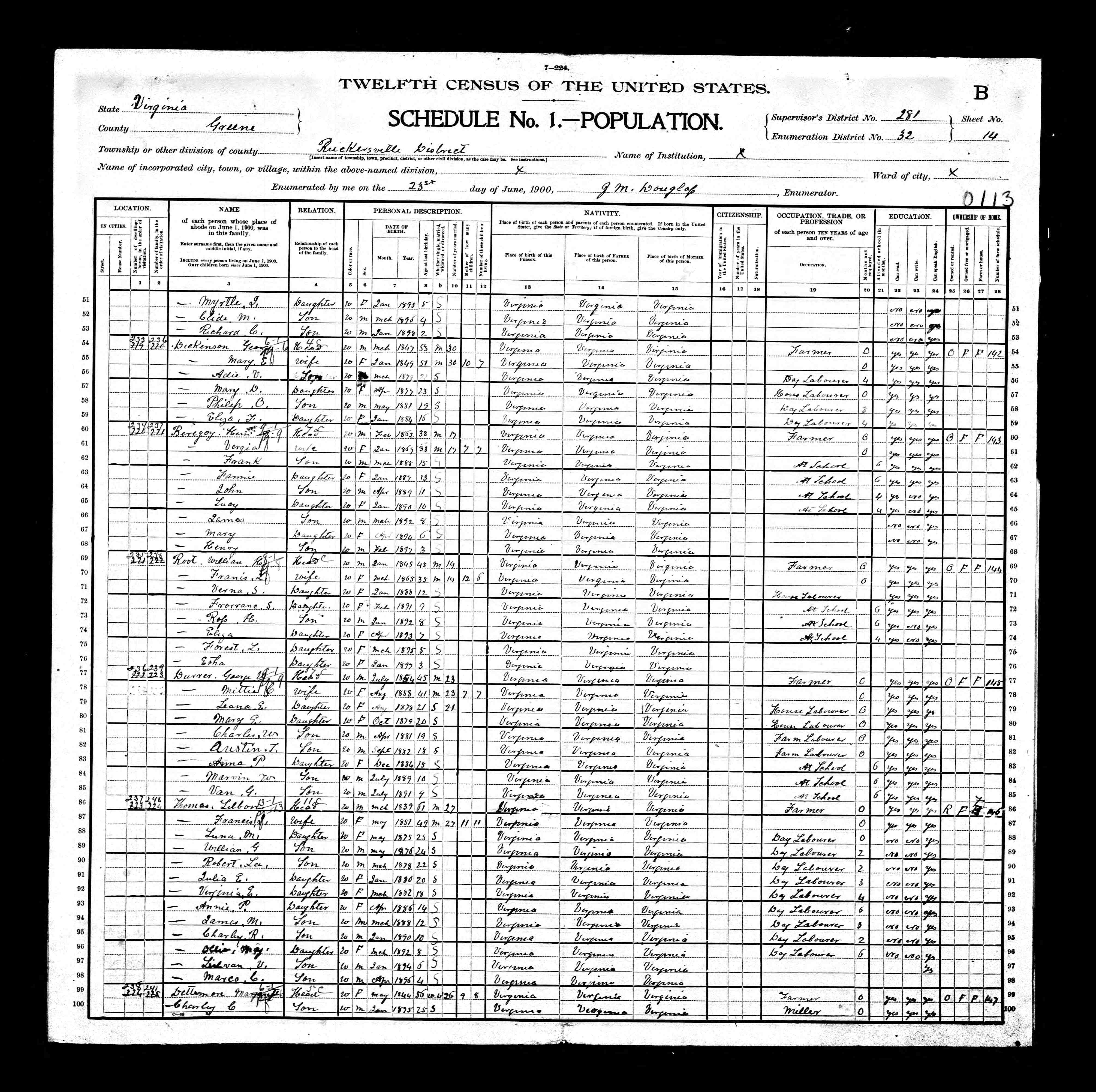 1. Census: Edward D. Carver and family, 11 Jul 1900, Scottsville, Albemarle County, Virginia, USA. 210