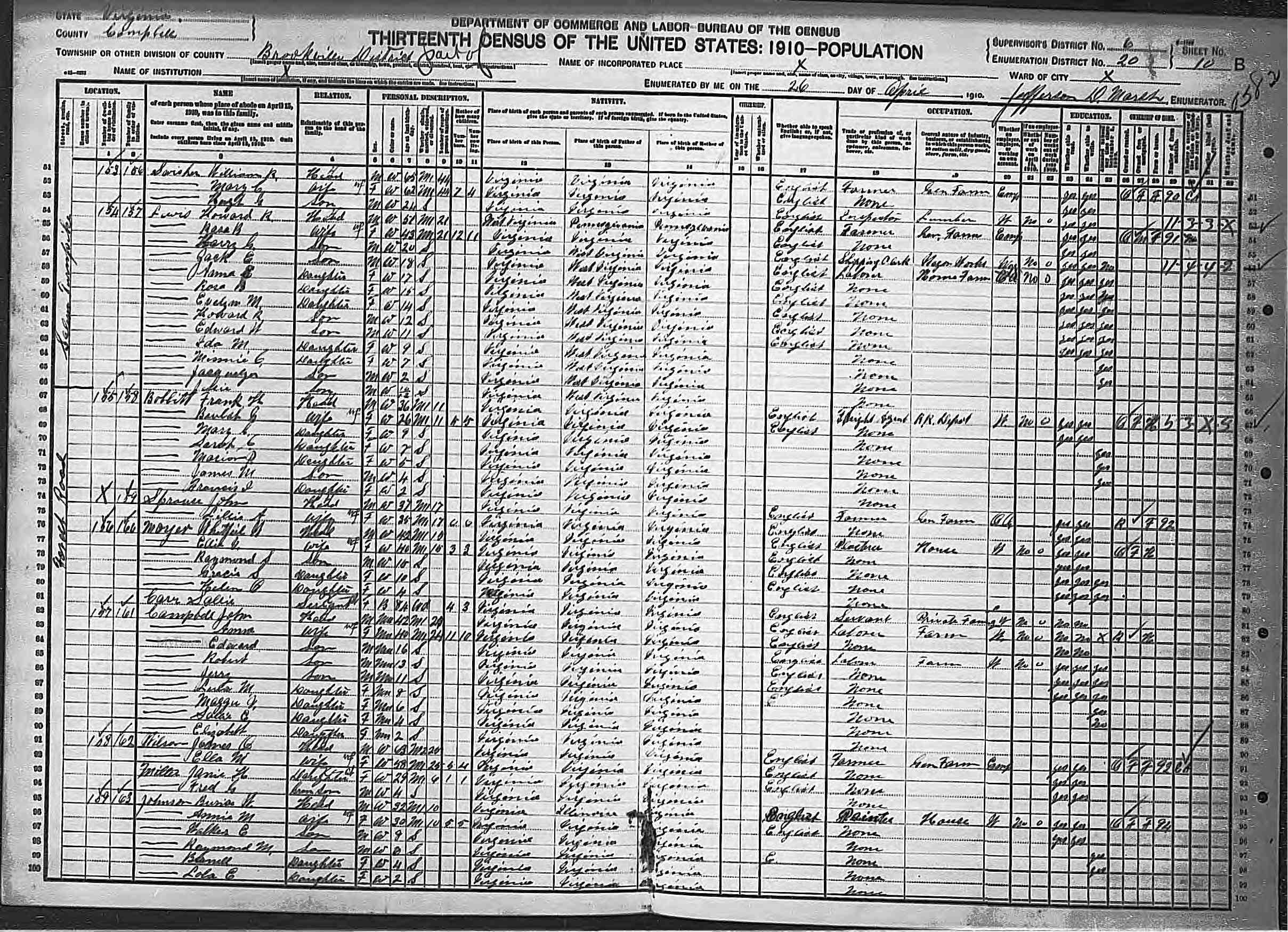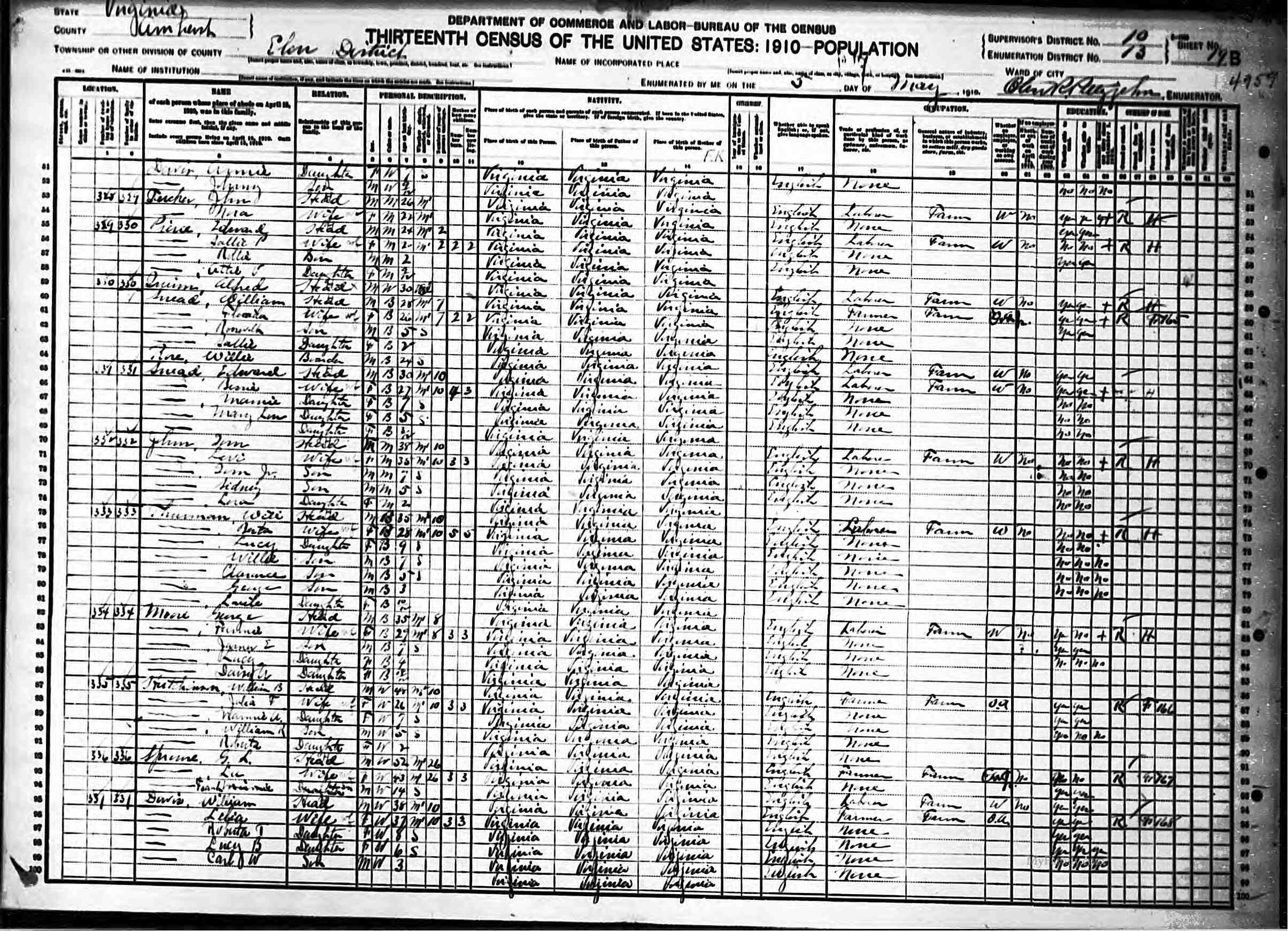 838. 1910 Virginia Census, Bedford, Forest ED 7, Sht 23B.