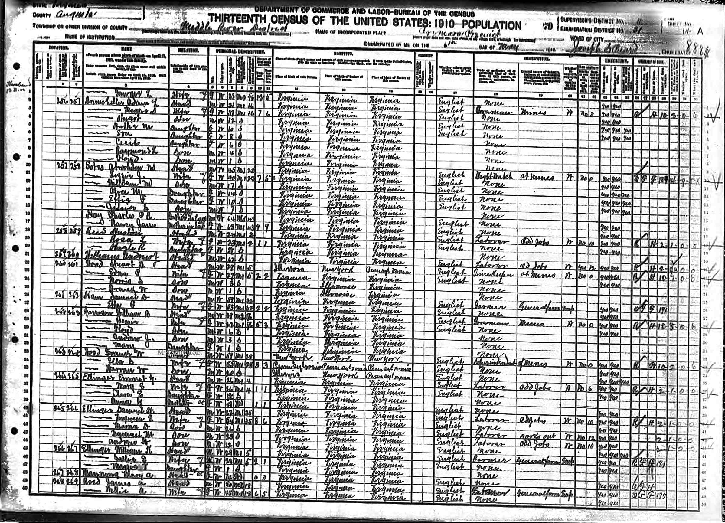 1. Occupation: Farm Laborer, 21 Jun 1900, South River, Augusta County, Virginia, USA.