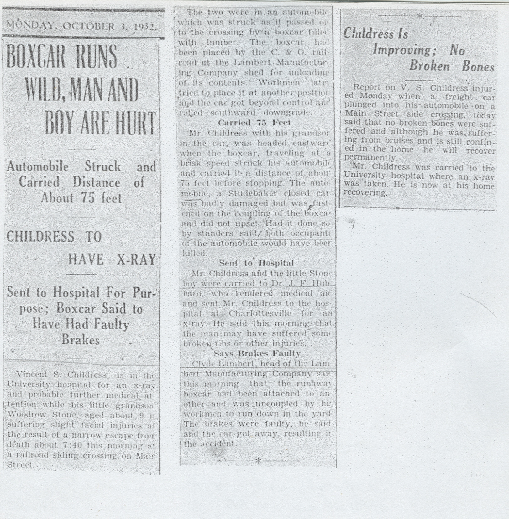 296. Waynesboro News Virginian, Waynesboro, VA, Father & Son Killed By Train.