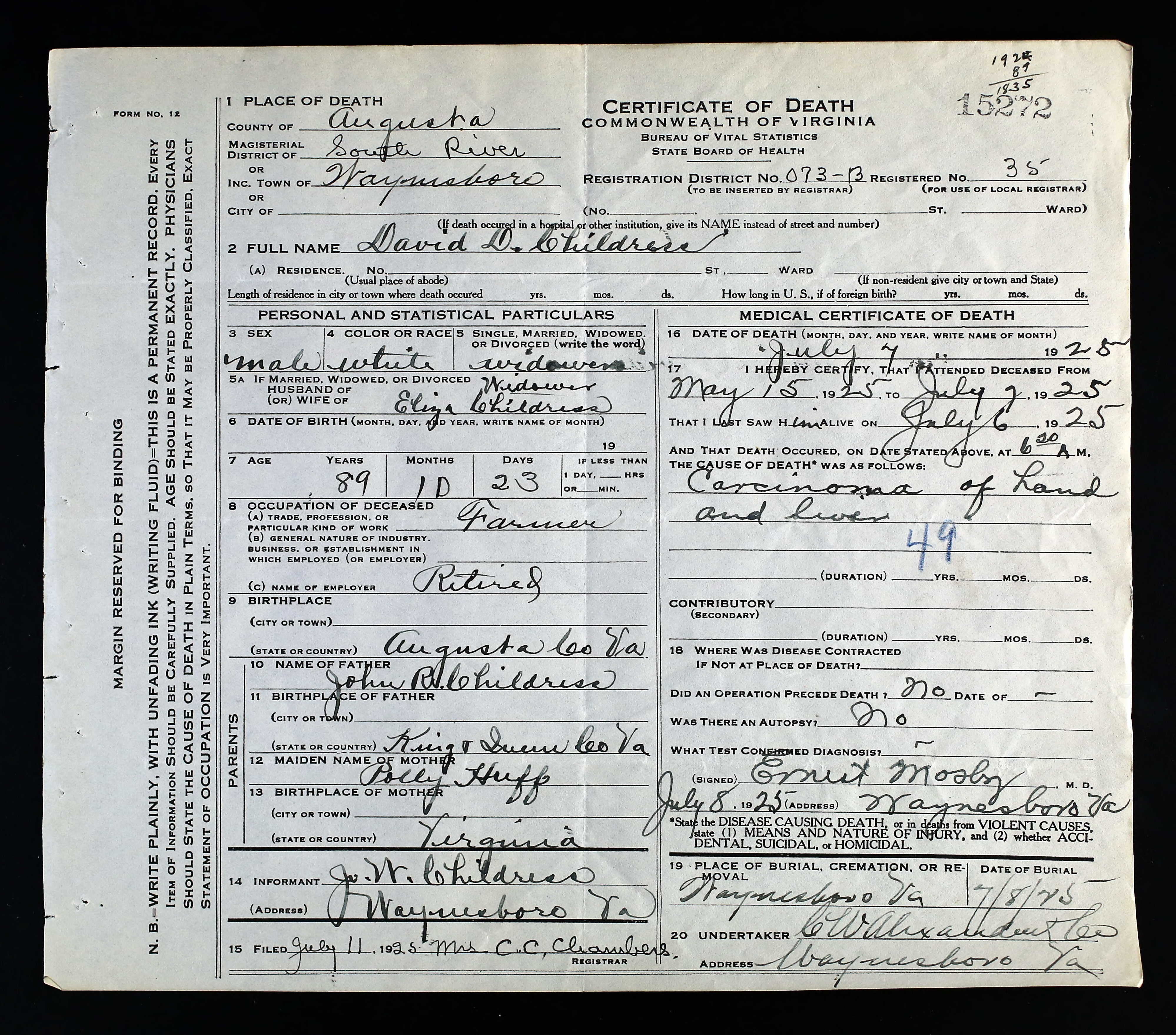 1. Alt. Birth: birth, 7 Jul 1881, Augusta County, Virginia, USA.