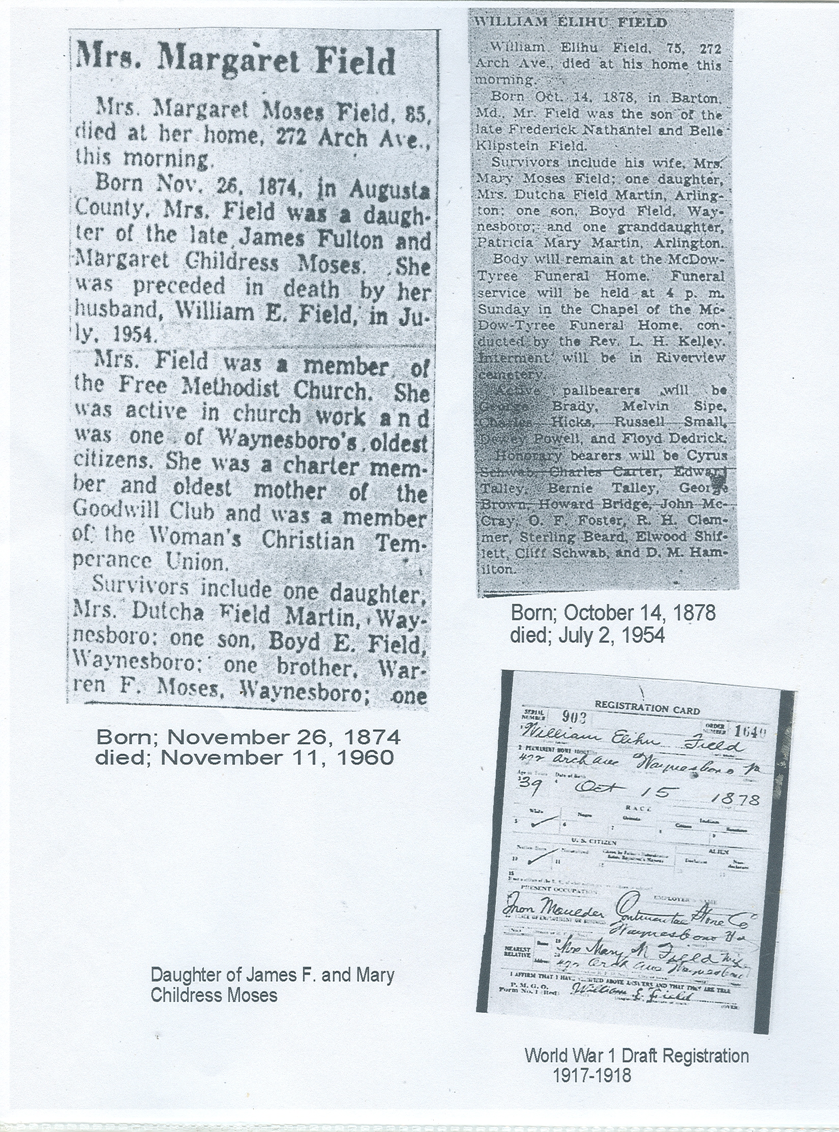 282. Obituary from Waynesboro, VA Newspaper, William Elihu Fields.