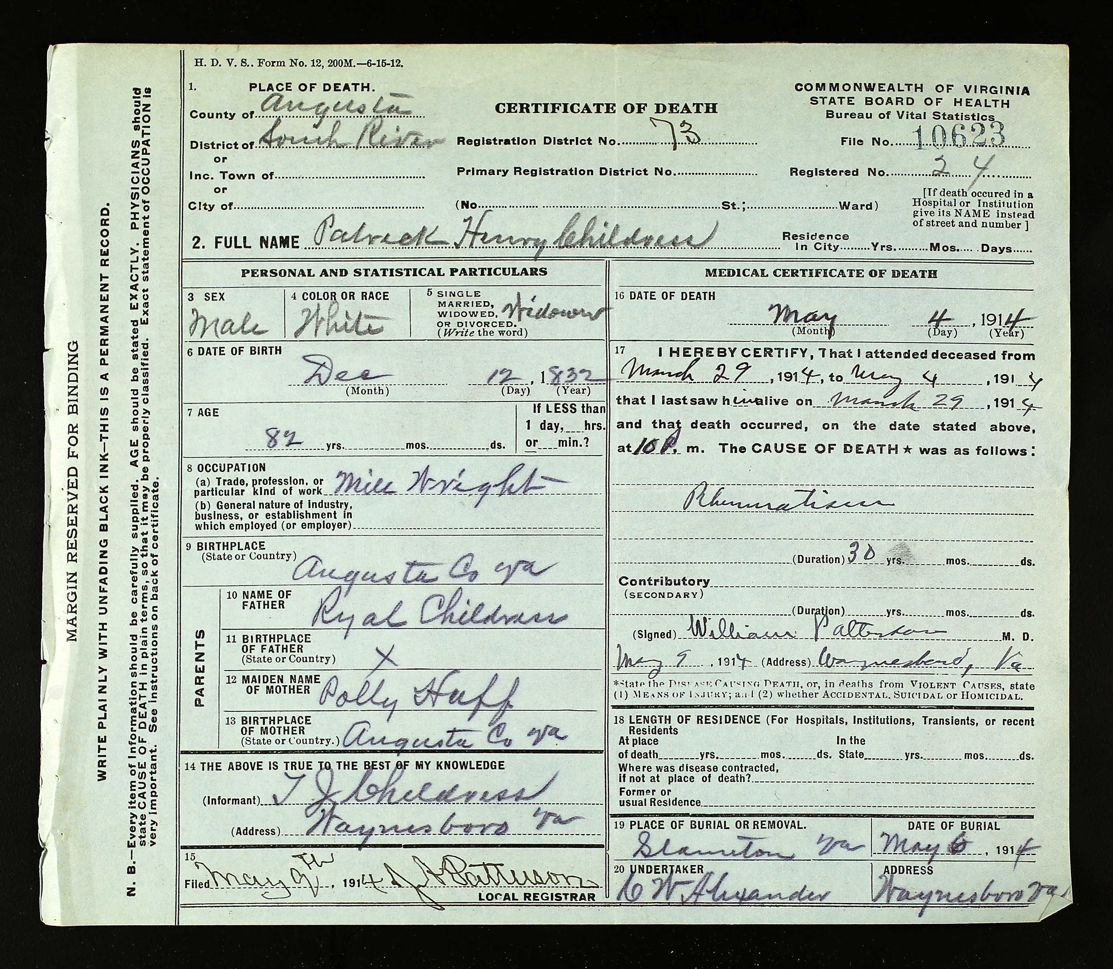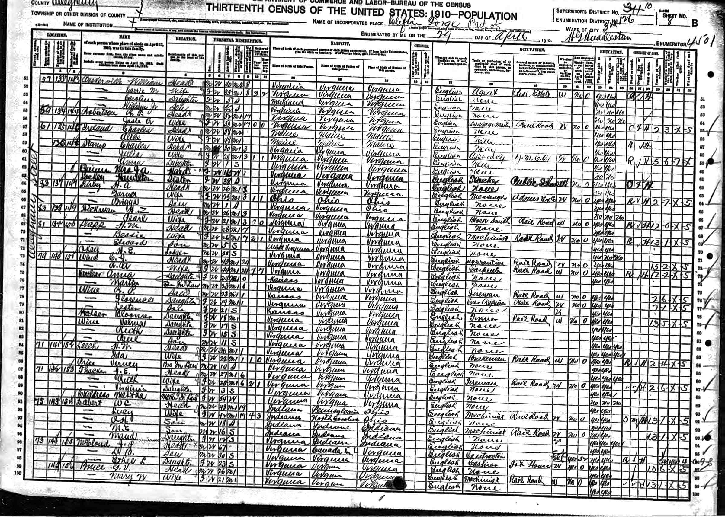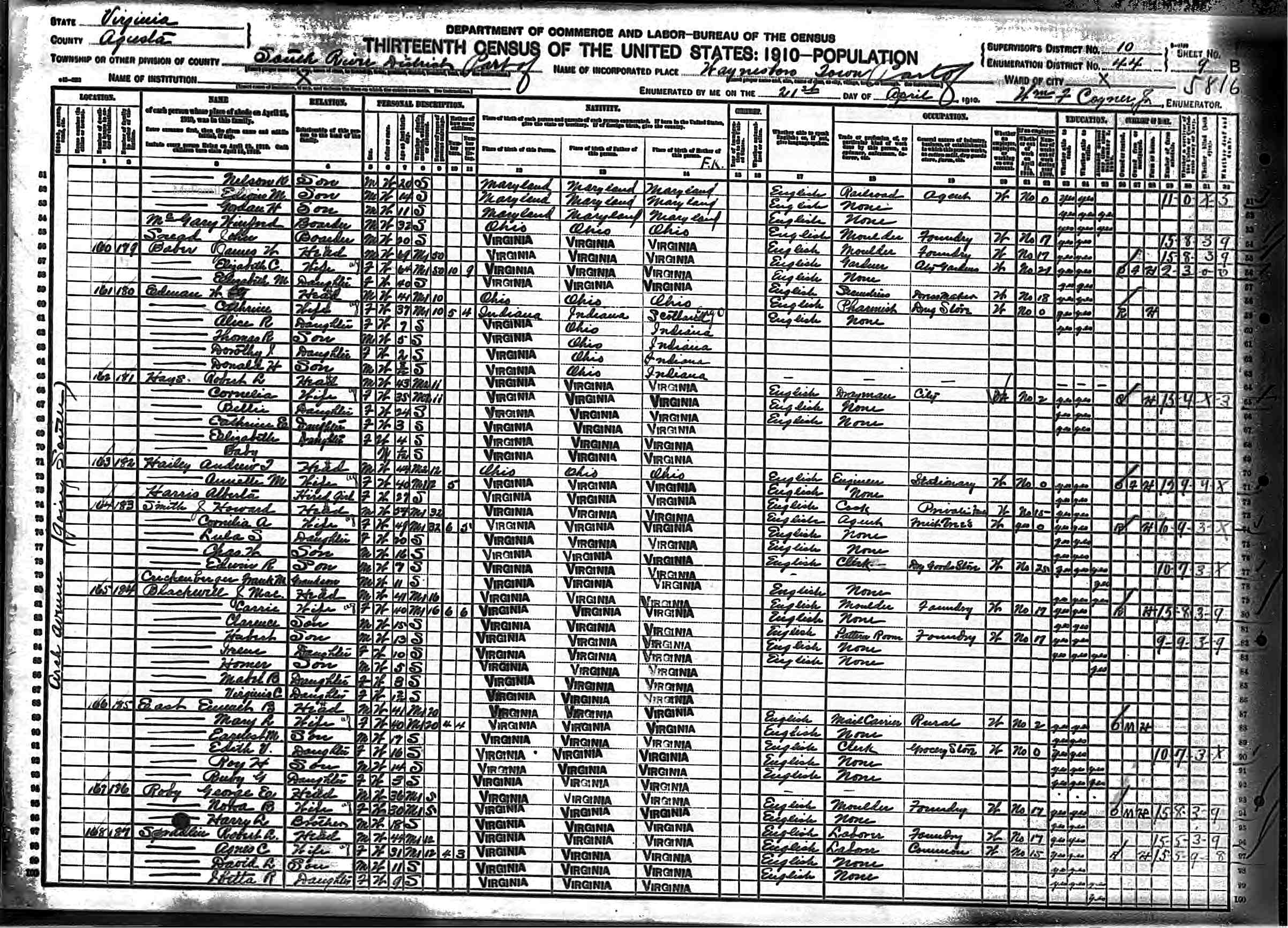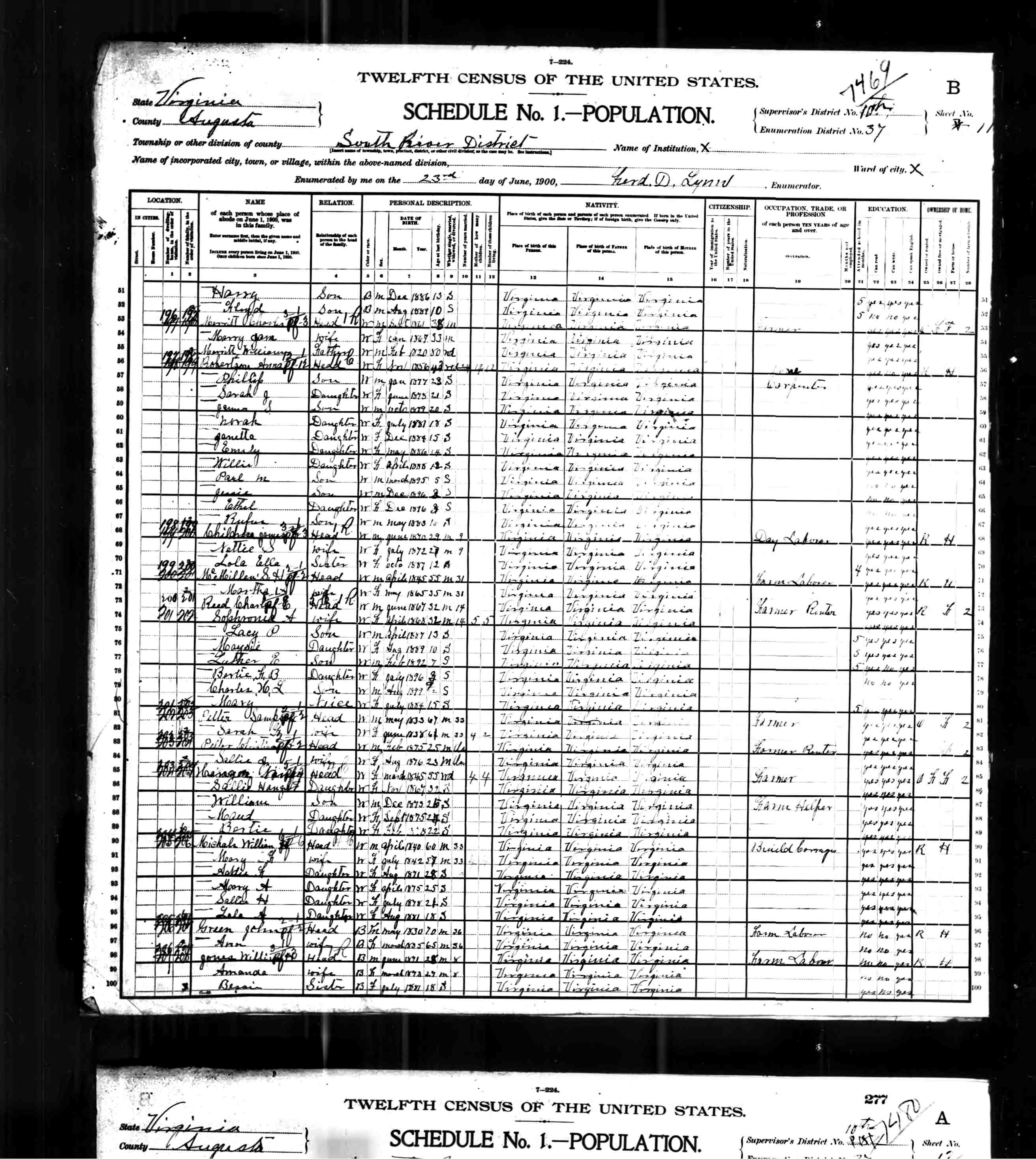 1. Census: Homer Marion Childress and family, 21 Apr 1910, South River, Augusta County, Virginia, USA. 78