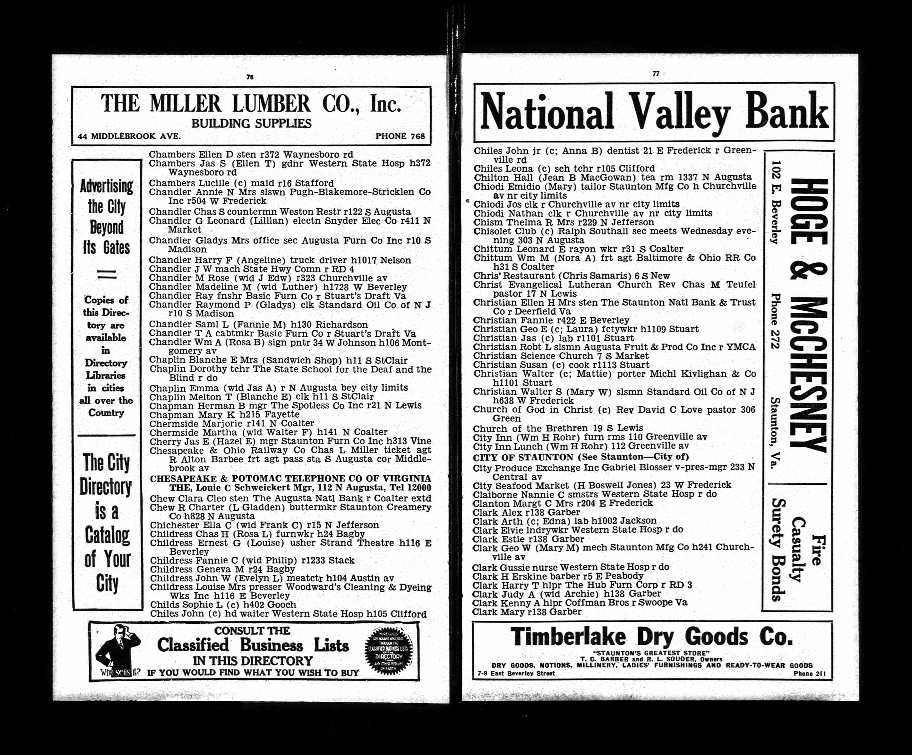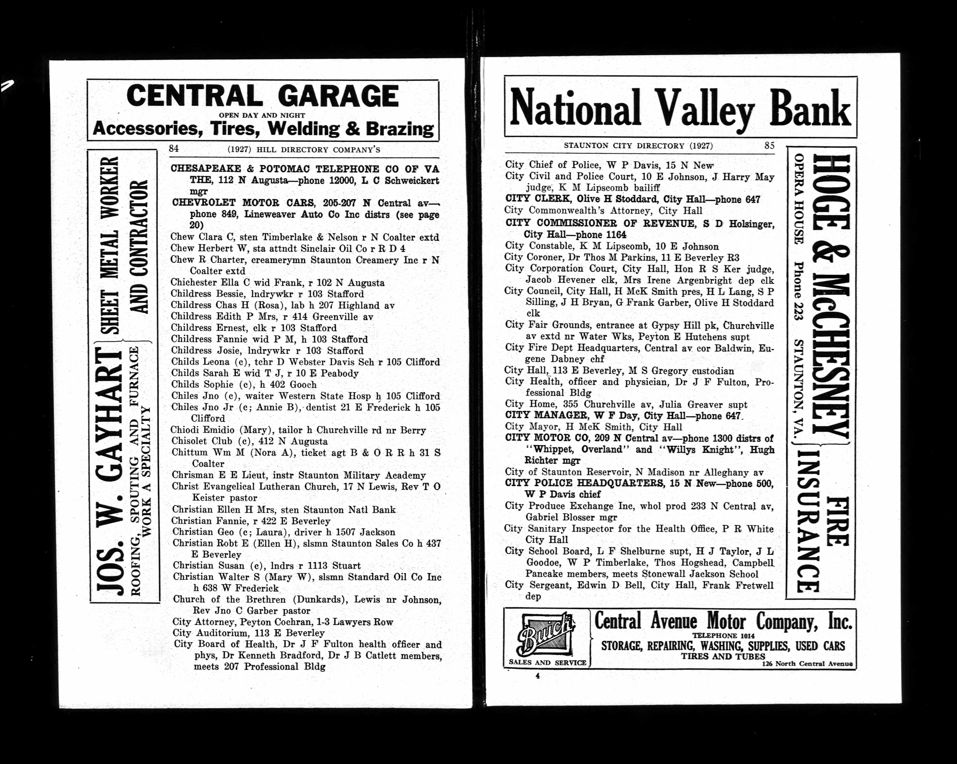 1. Residence: Ernest G. Childress and Louise, usher Standard Theatre, 116 E. Beverly, 1934, Staunton, Staunton City, Virginia, USA. 151