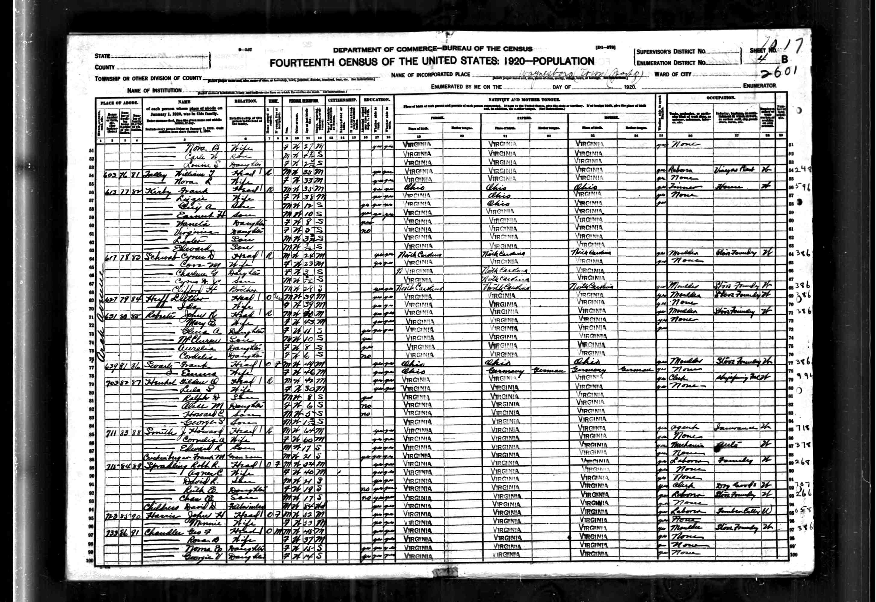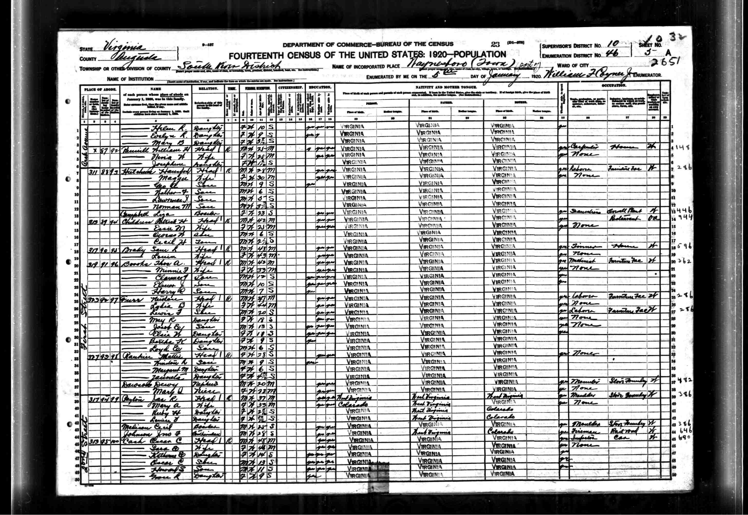 1. Census: Homer Marion Childress and family, 9 Jan 1920, Richmond, Richmond (city), Virginia, USA. 313