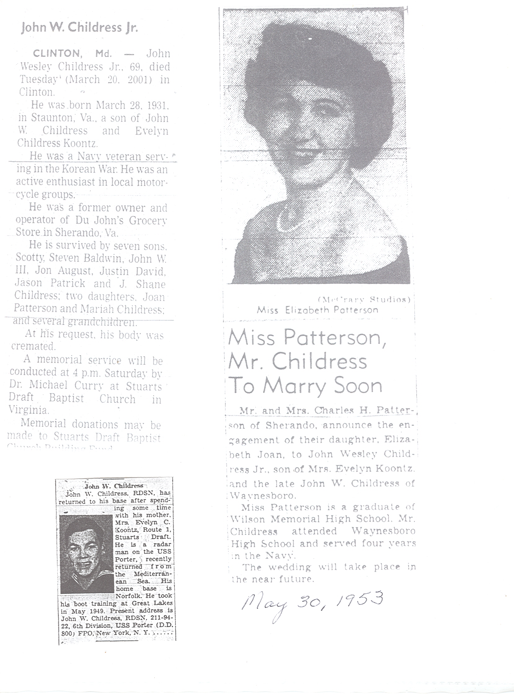 443. Obituary from Waynesboro, VA Newspaper, Harold "Buddy" Childress.