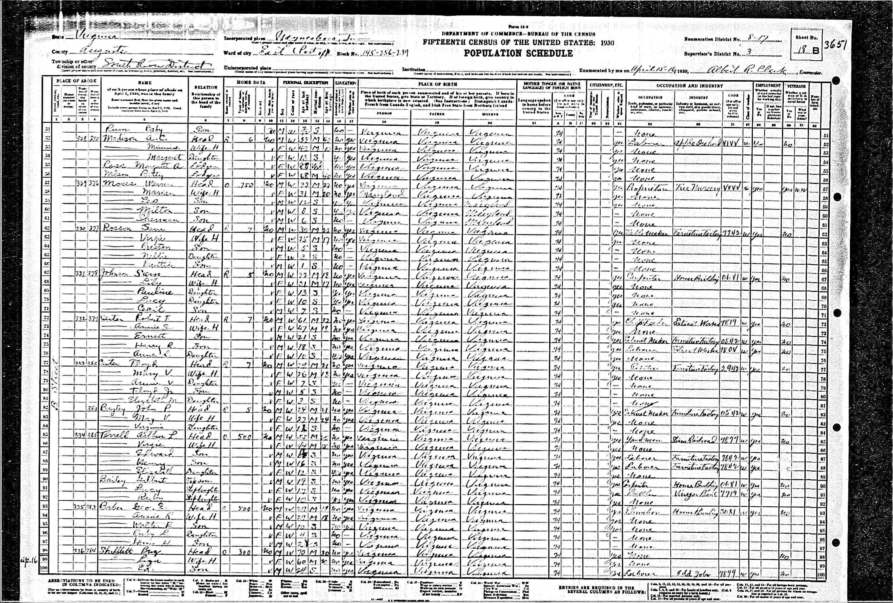 1. Census: John R. Byrd and family, 7 May 1940, Charlottesville, Charlottesville (city), Virginia, USA. 330