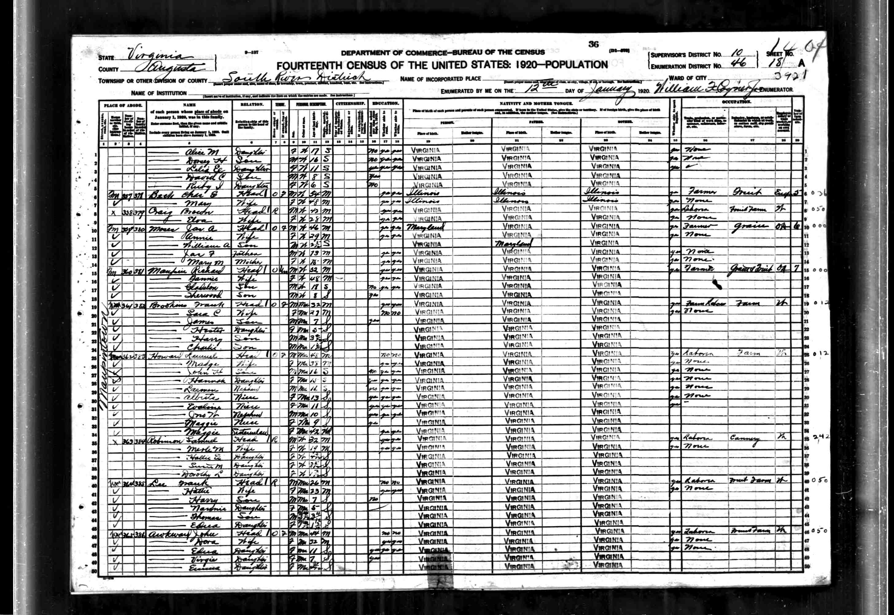 433. 1920 Virginia Census, Augusta, South River, ED 46, Sht 18A.