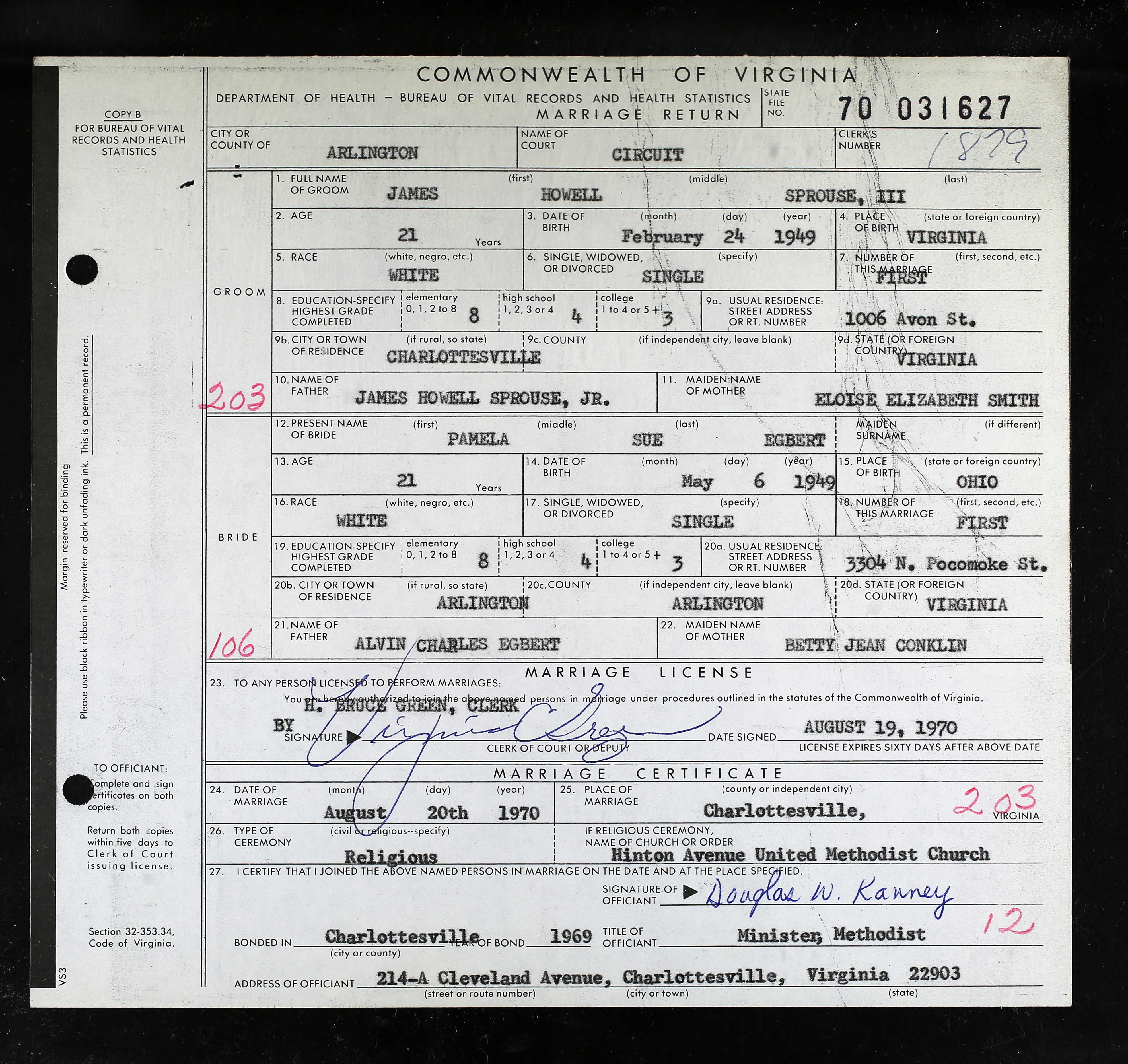 471. Charlottesville, VA Marriage Records, Marriage Certificate.