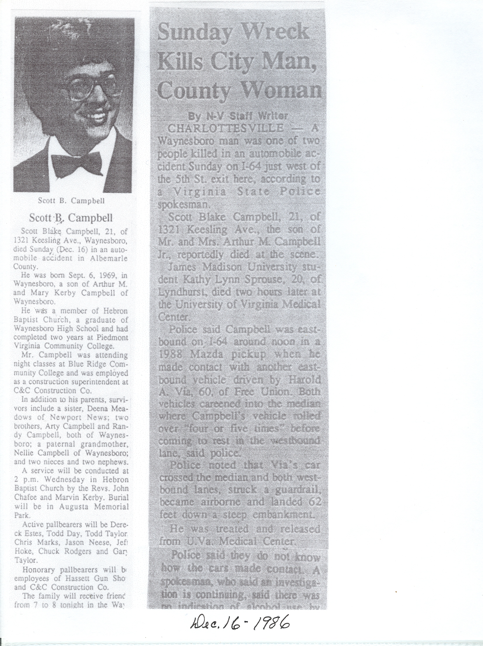 483. Obituary from Waynesboro, VA Newspaper, Scott Blake Campbell.