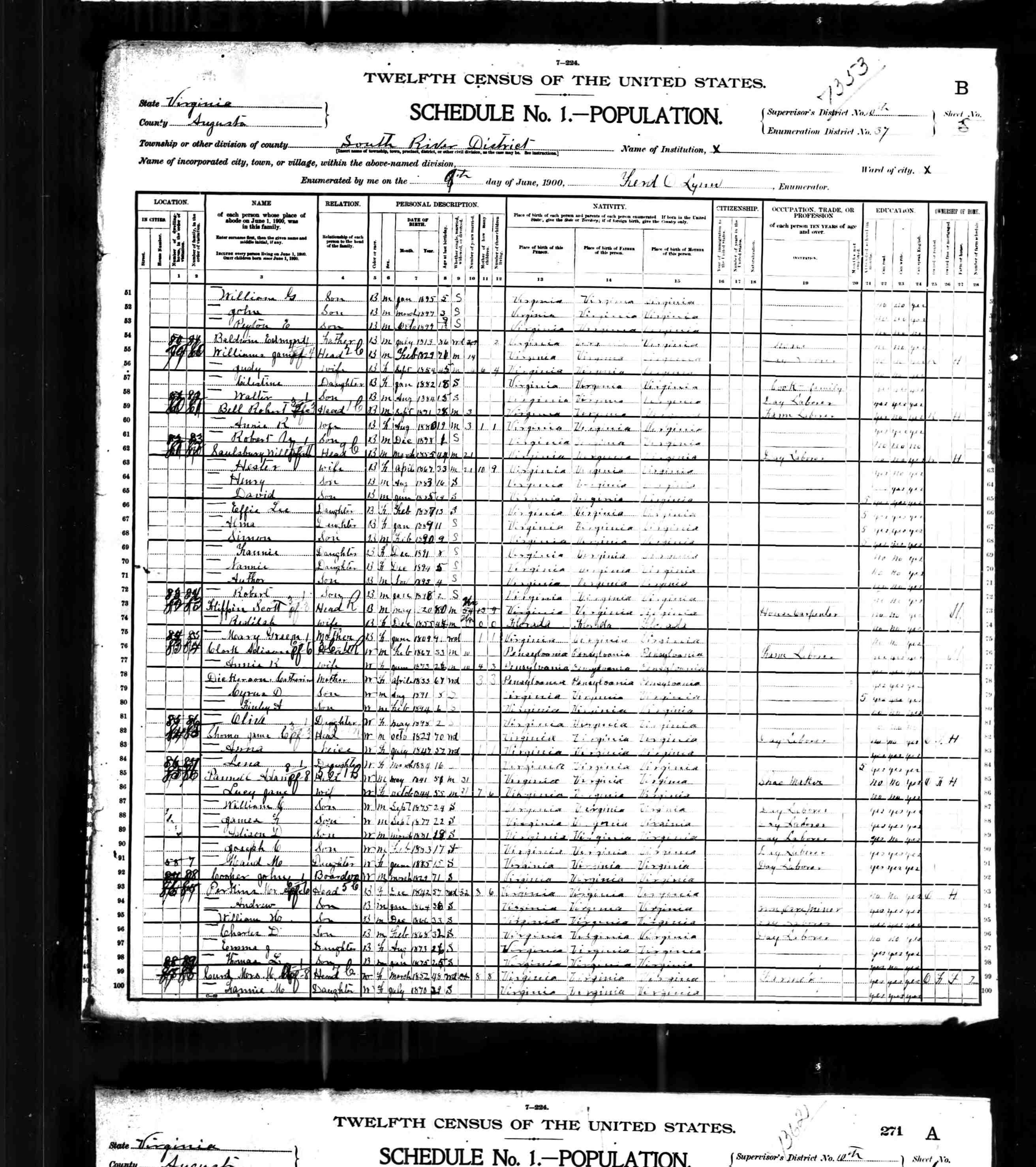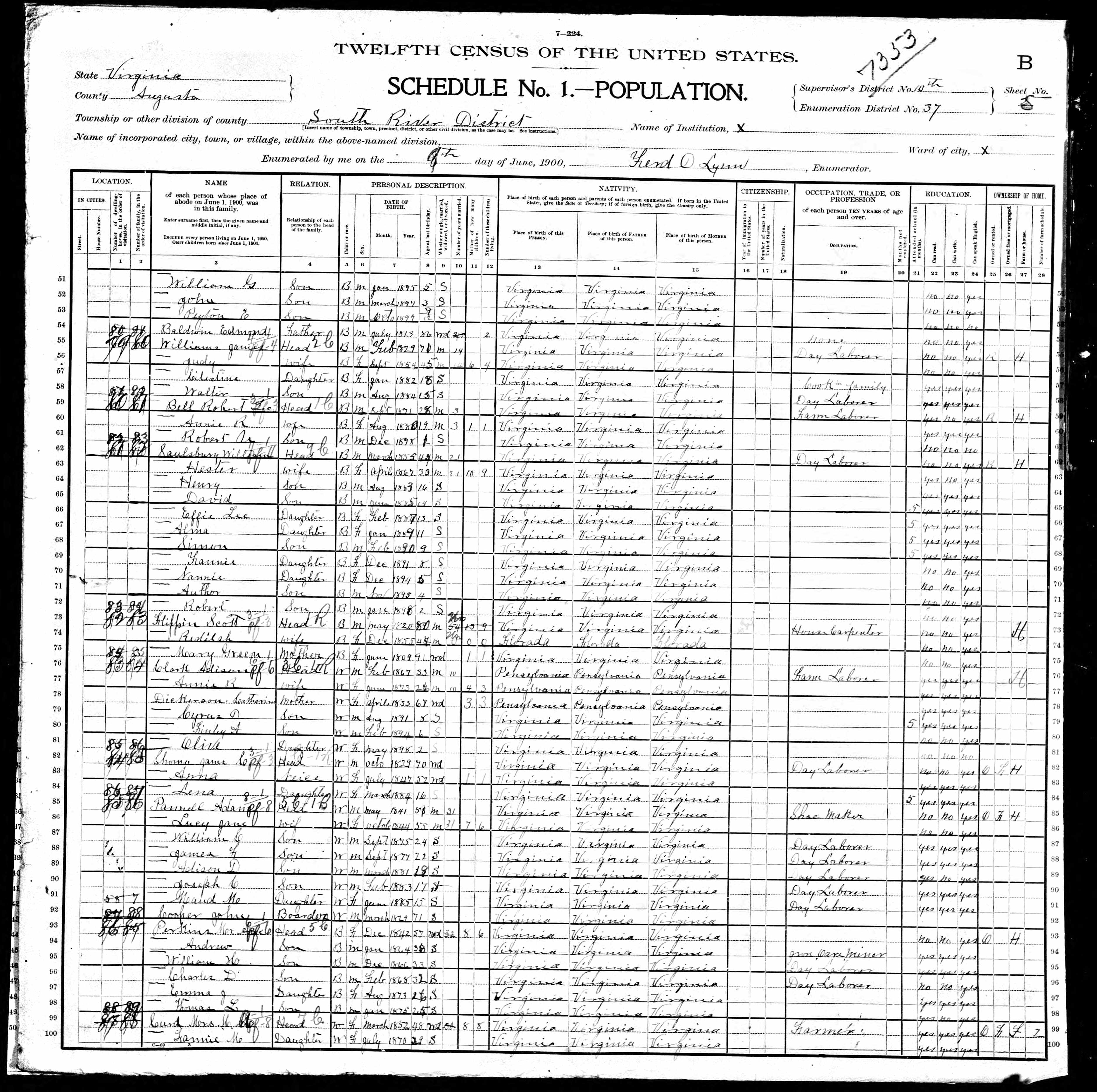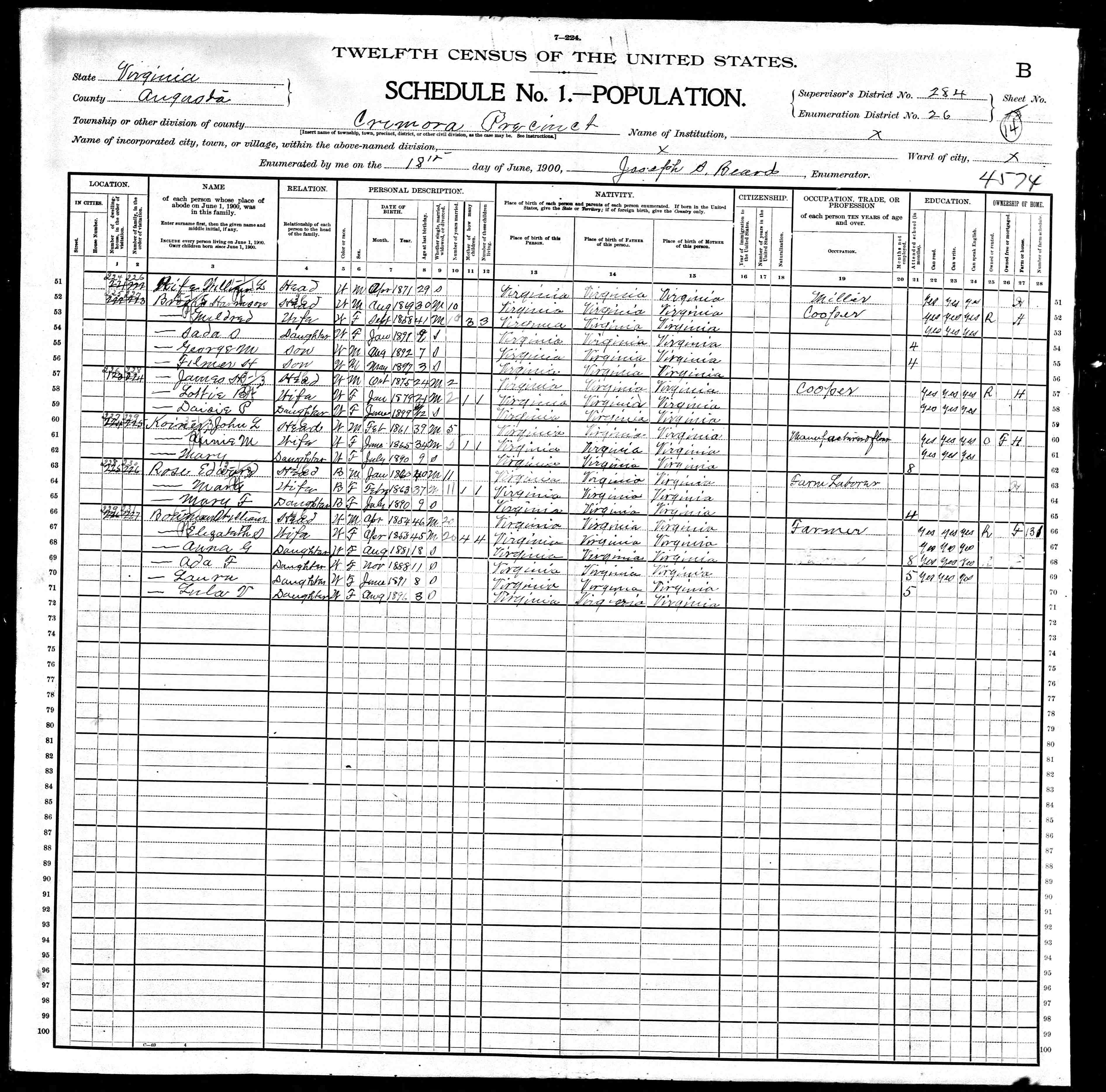 431. 1900 Virginia Census, Augusta, Crimora, ED 26, Sht 14B.