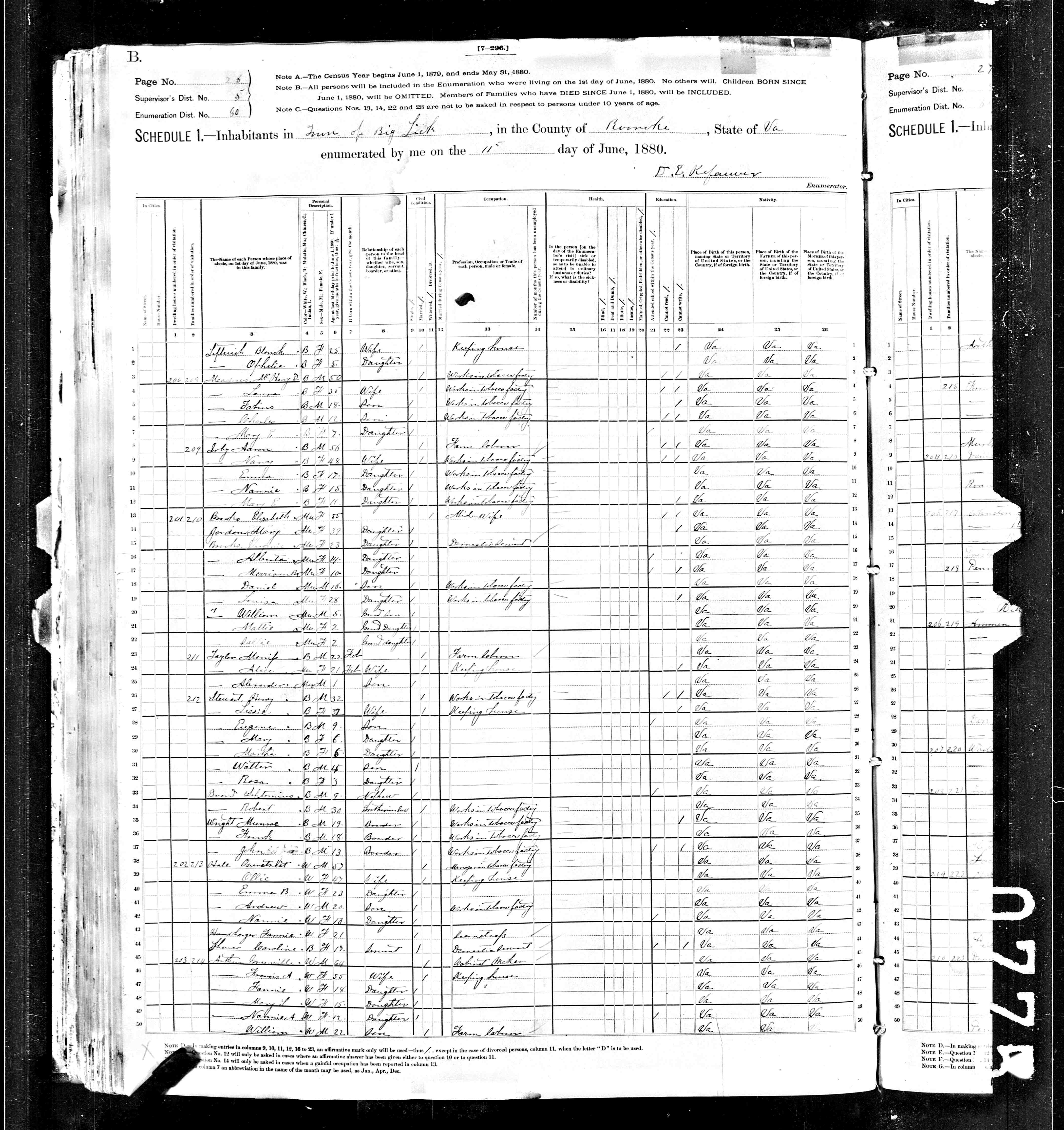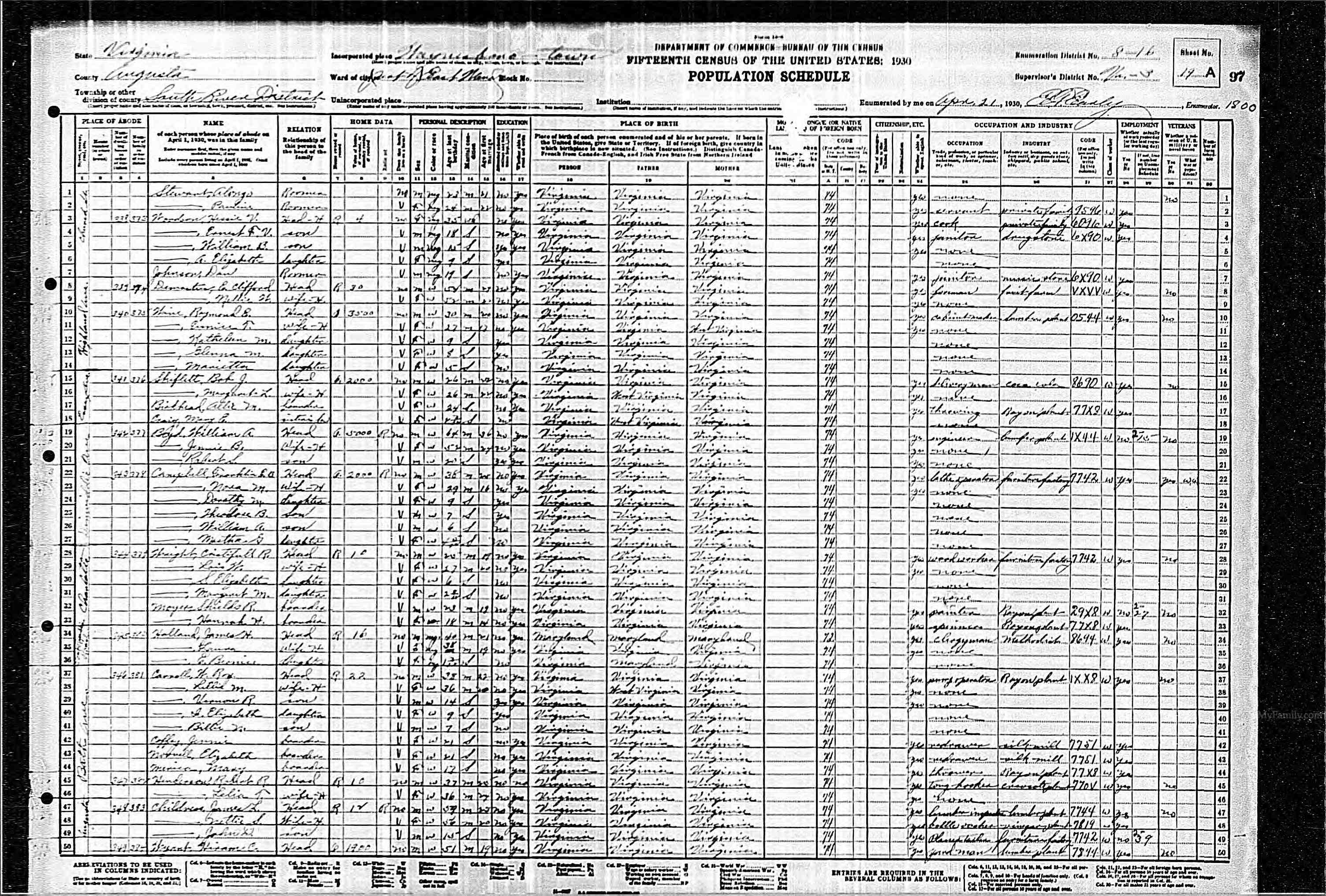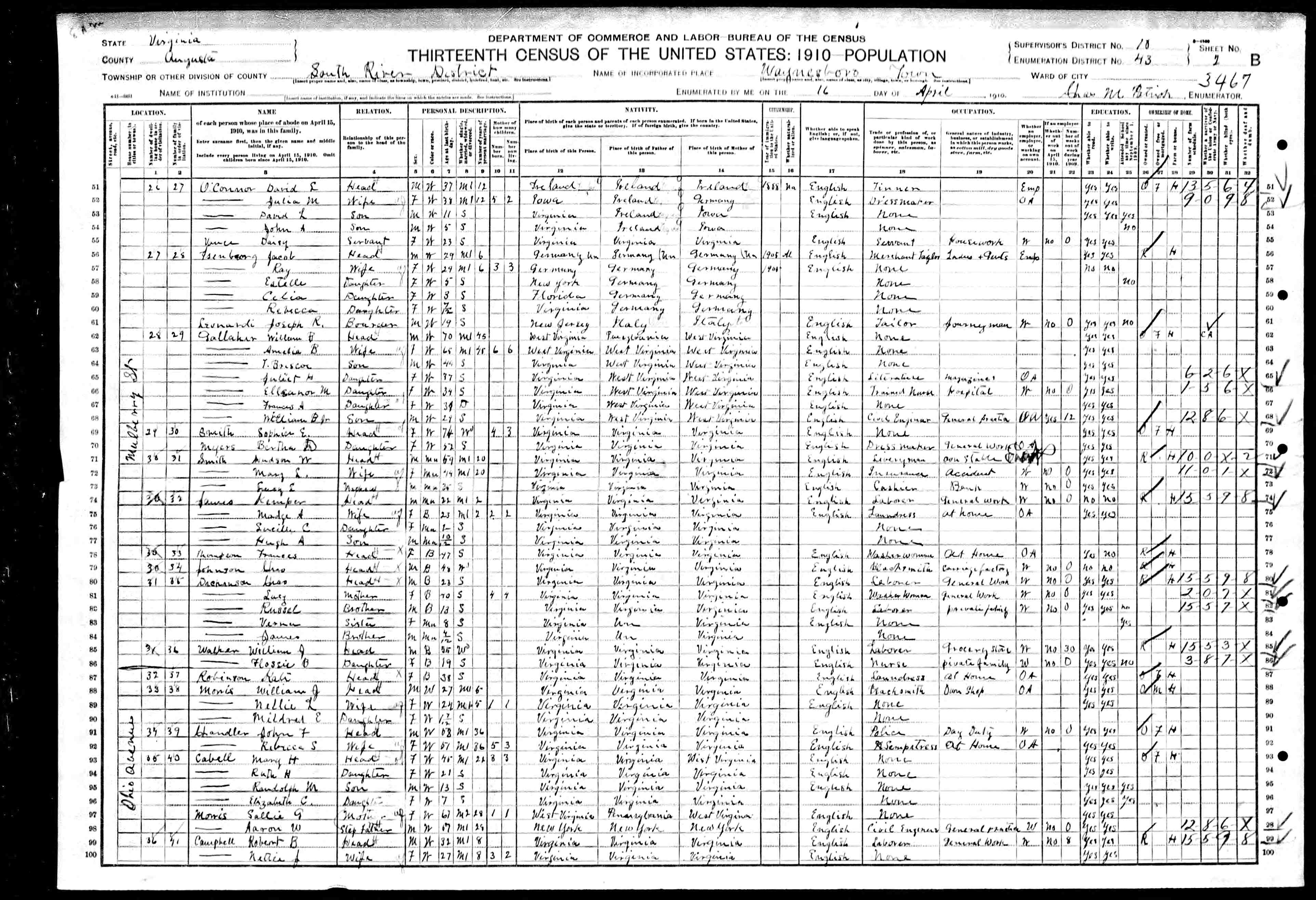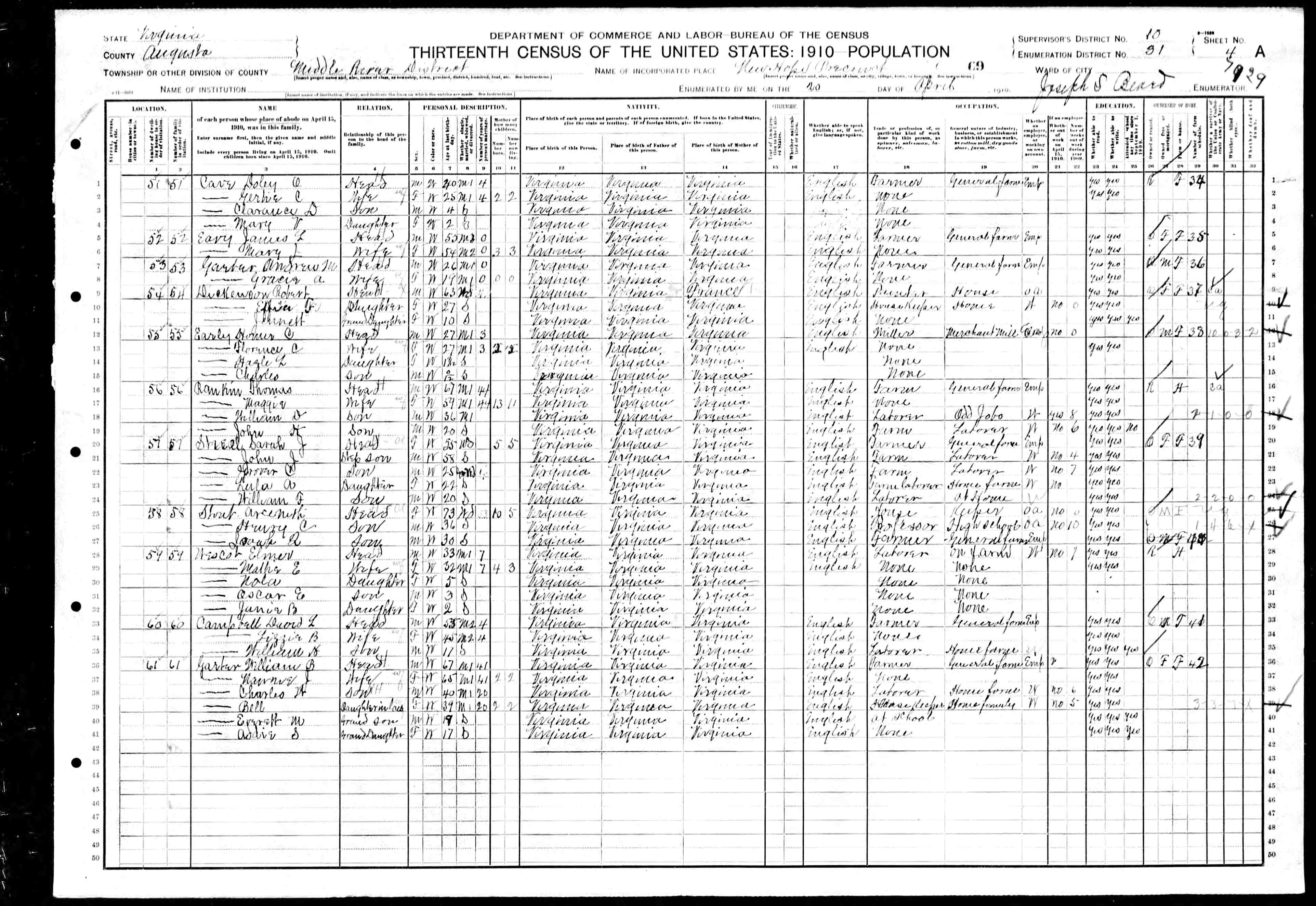 431. 1900 Virginia Census, Augusta, Crimora, ED 26, Sht 14B.