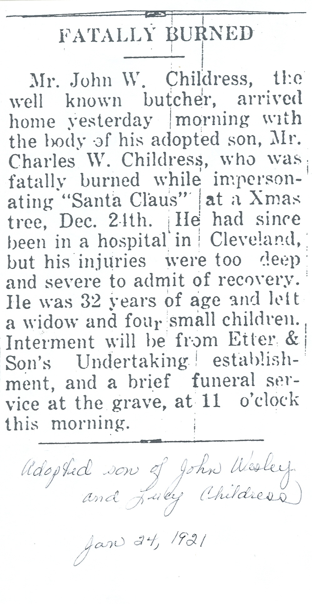 great grandfather Charles died his obituary read that he died at Childress Chapel, His home was one block