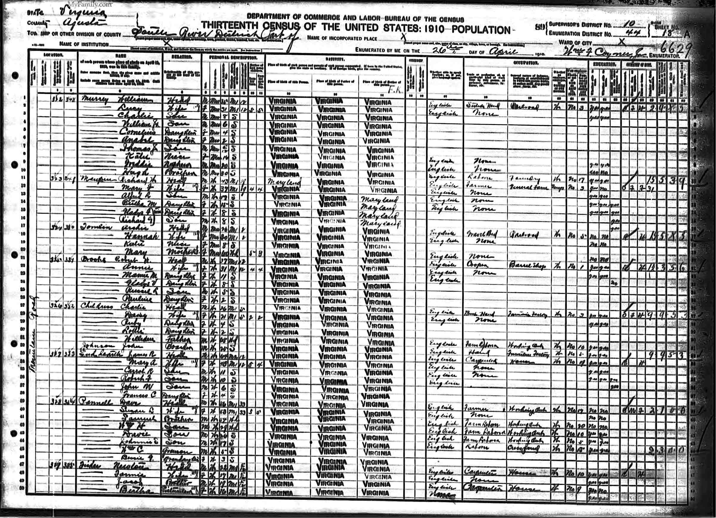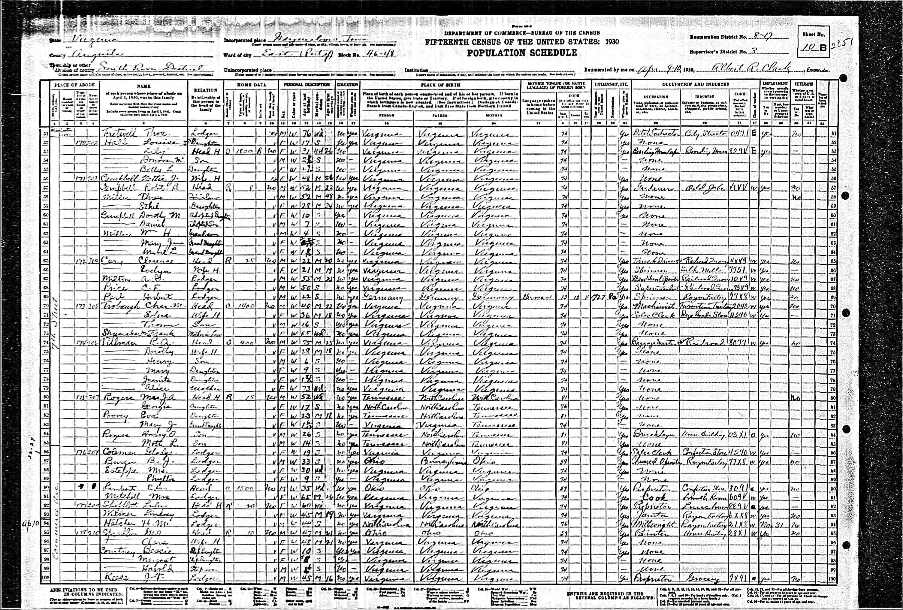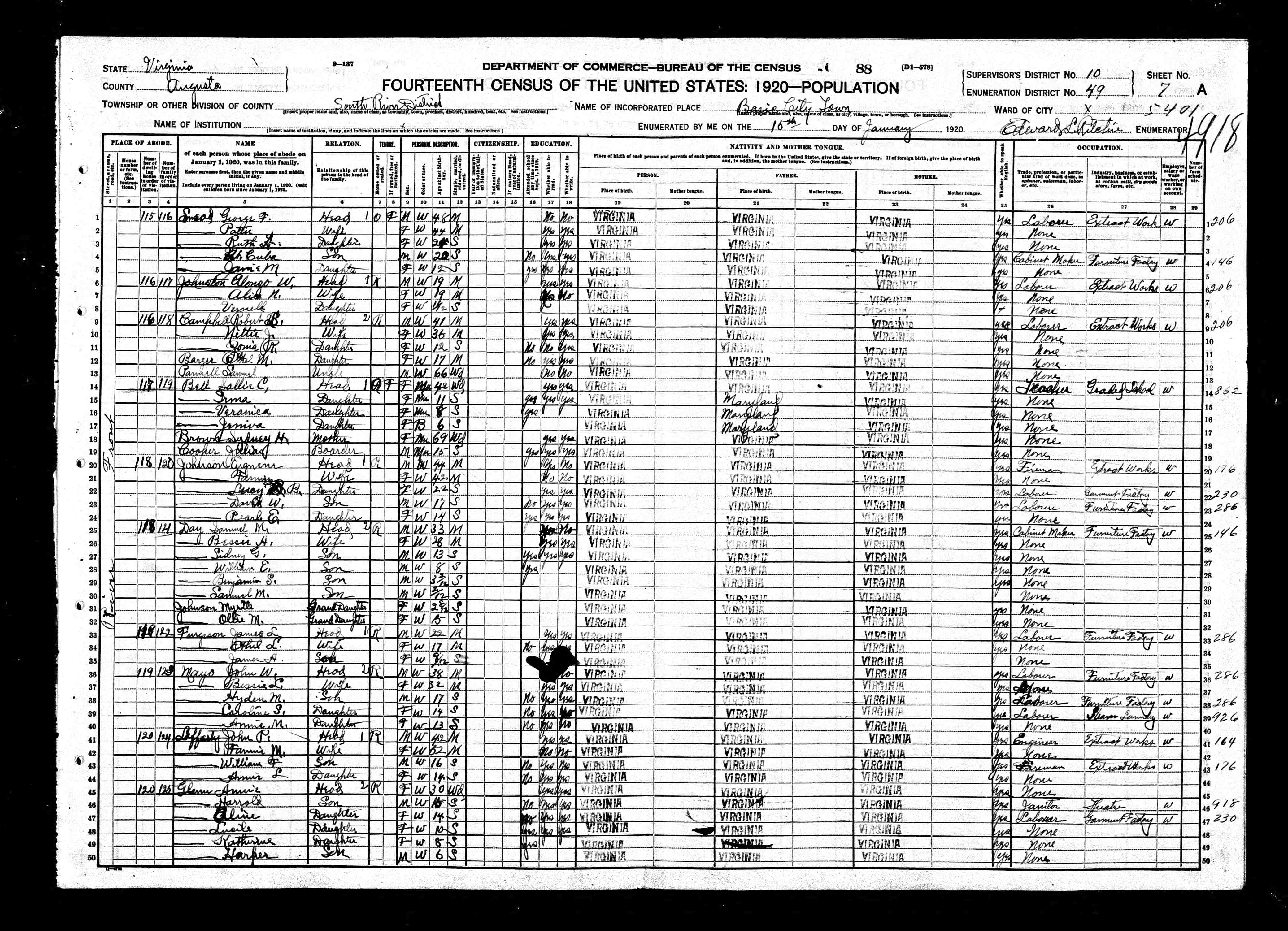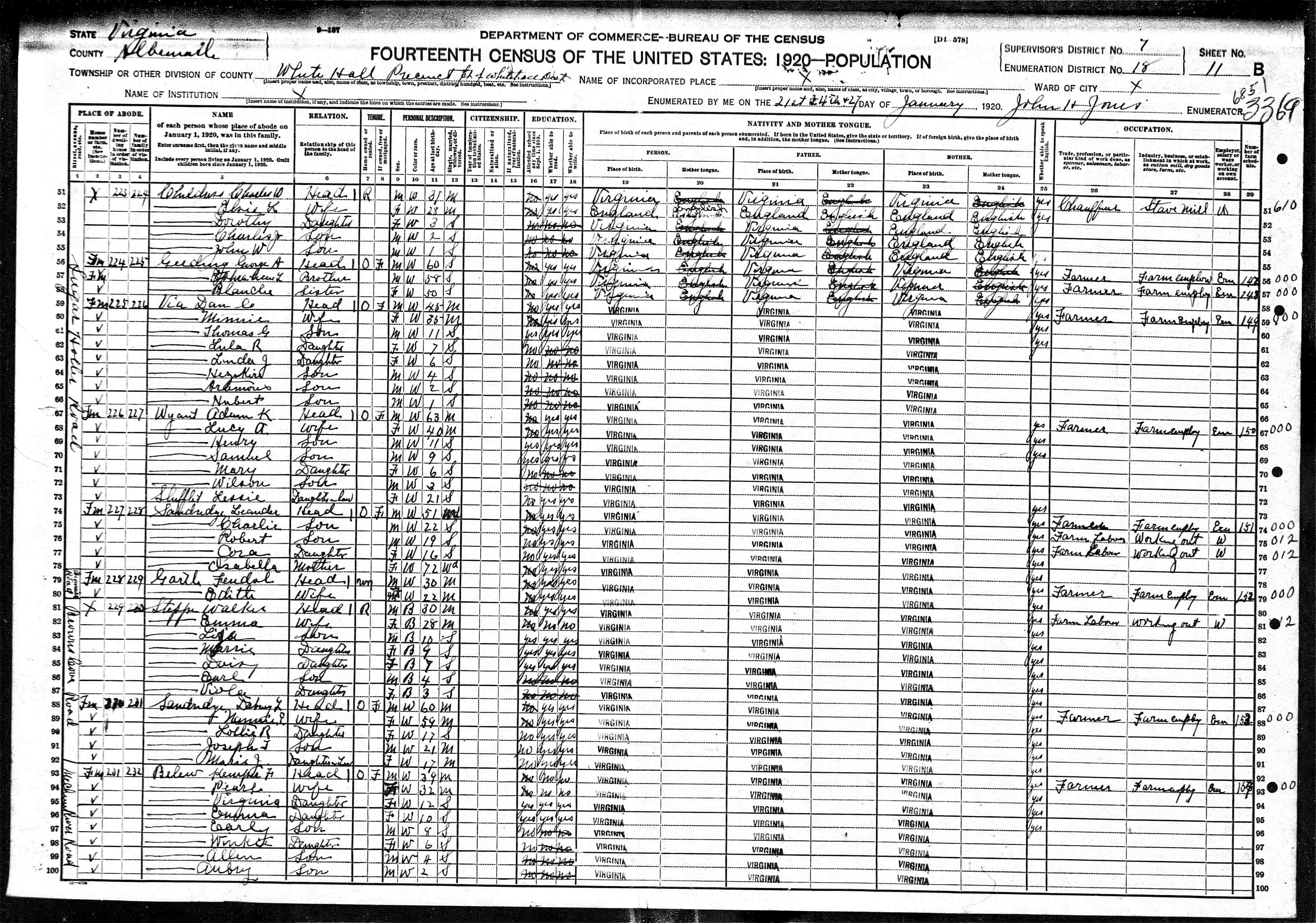 433. 1920 Virginia Census, Augusta, South River, ED 46, Sht 18A.