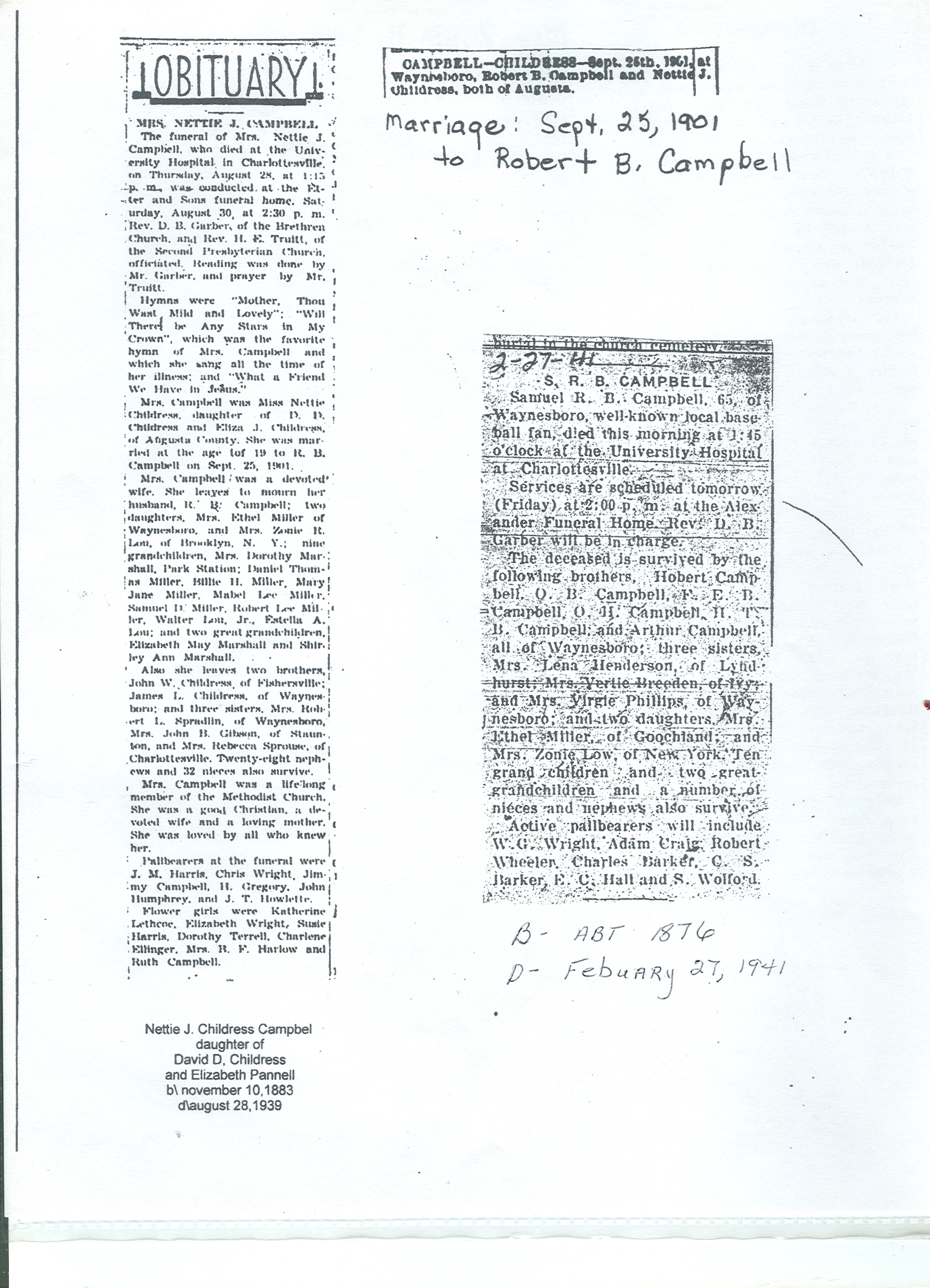 451. Obituary from Waynesboro, VA Newspaper, Arthur Melender Campbell.