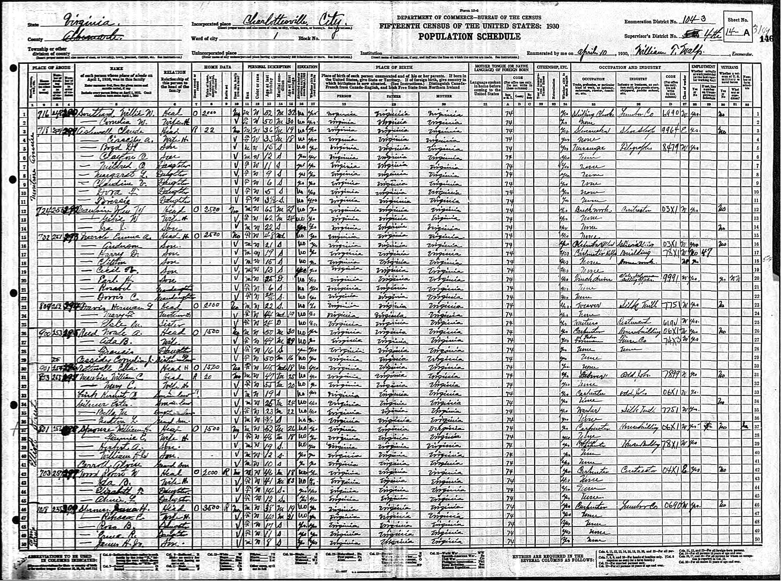 458. 1940 Virginia Census, Albemarle, Rivanna, ED 2-6, Sht 11B, Image 22 Roll T627.