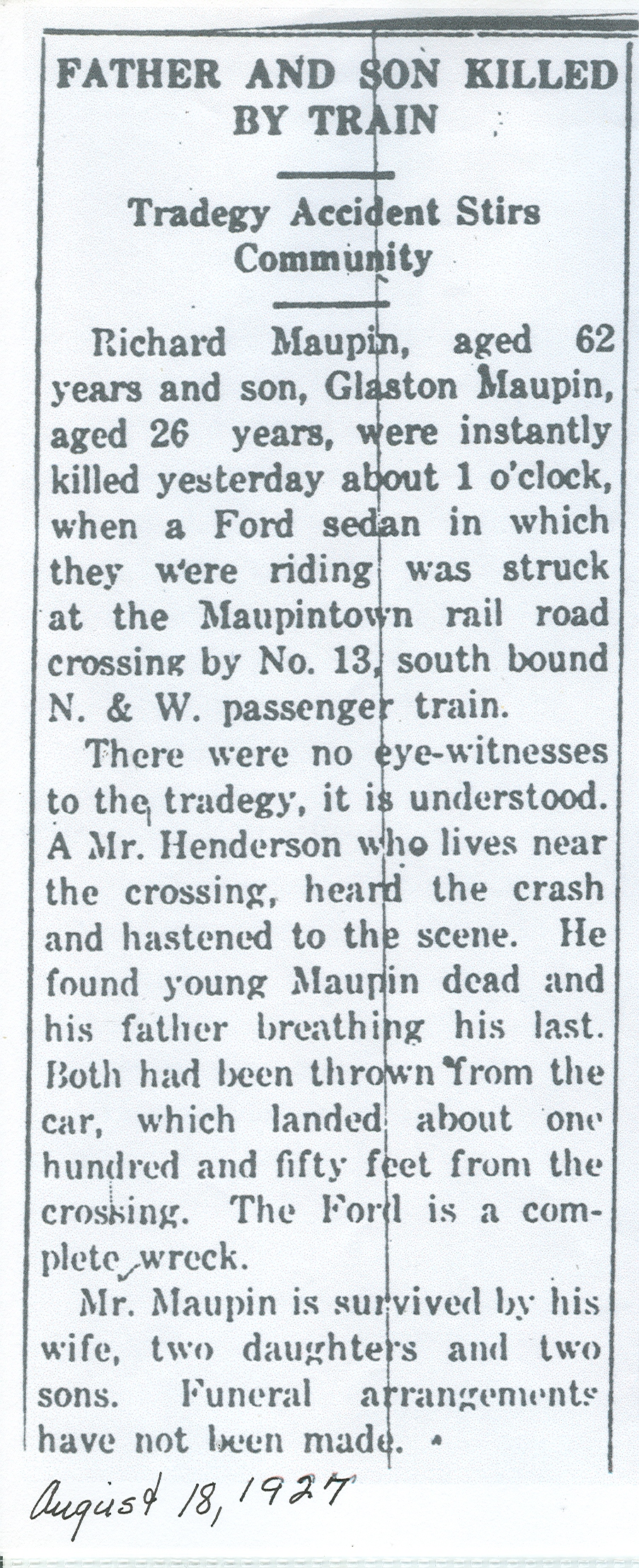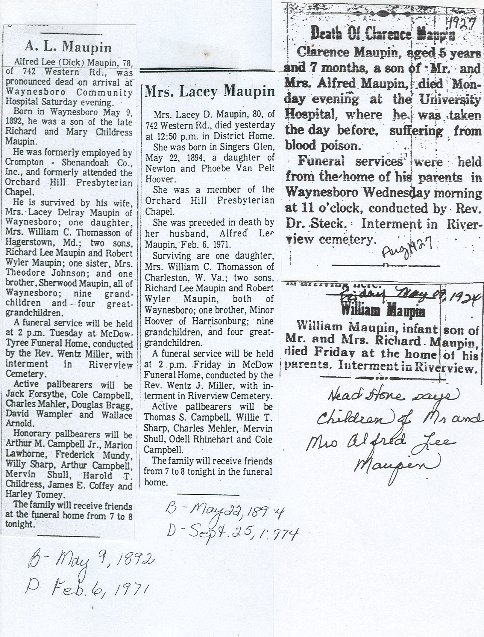 436. Obituary from Waynesboro, VA Newspaper, Lelia Thornton Maupin.
