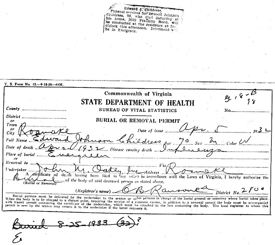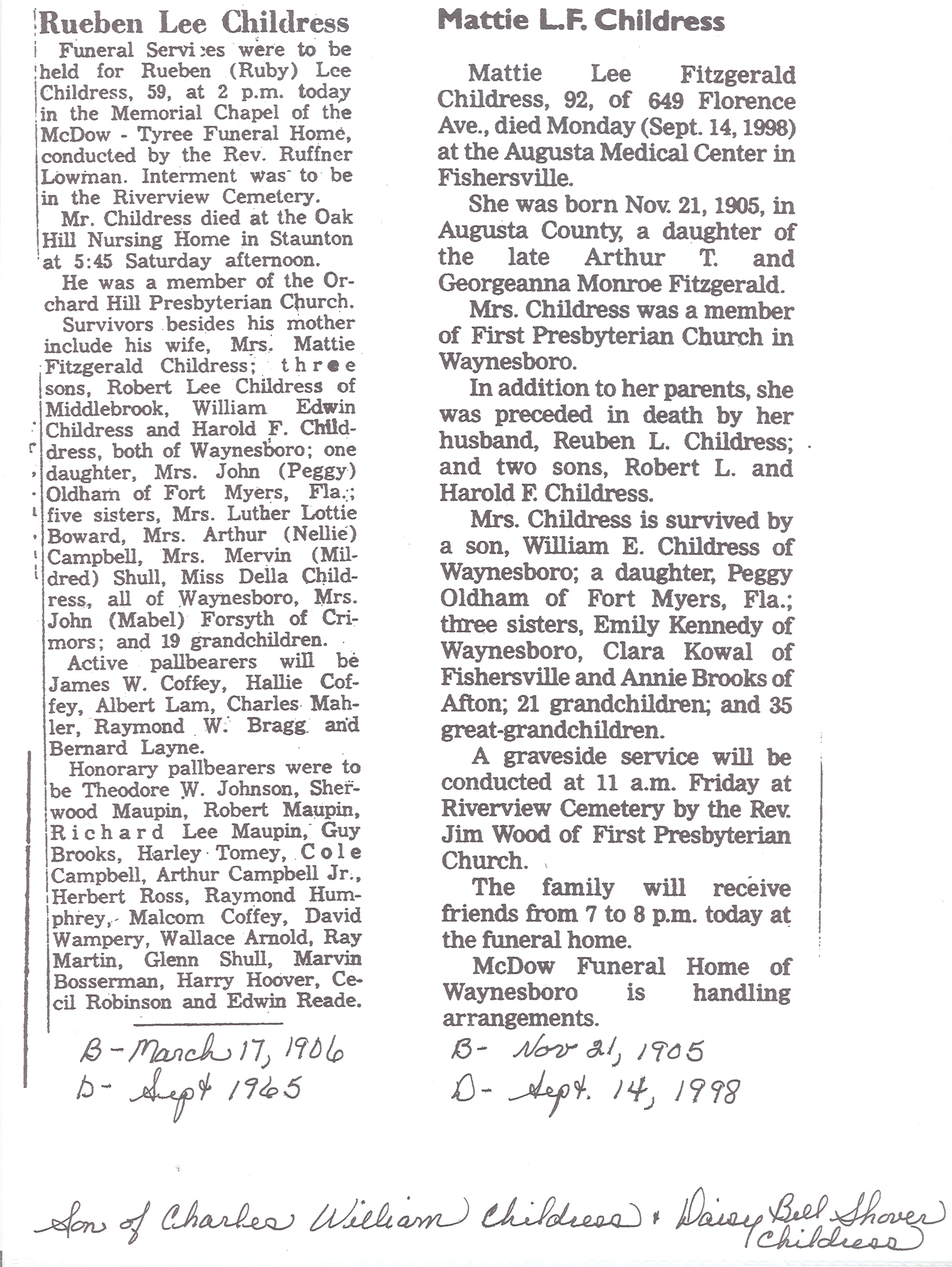 442. Obituary from Waynesboro, VA Newspaper, William Edwin "Bill" Childress.
