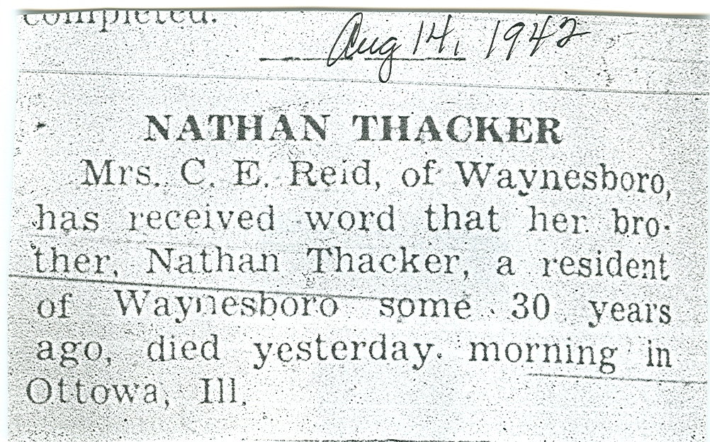 452. Obituary from Waynesboro, VA Newspaper, Thomas Jackson Forsyth.