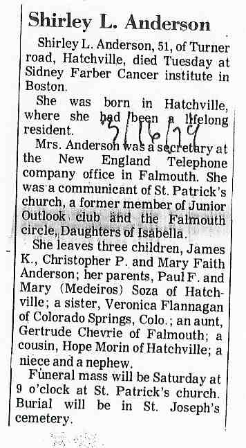 199. Obituary, Mary M. Medeiros Soza.
